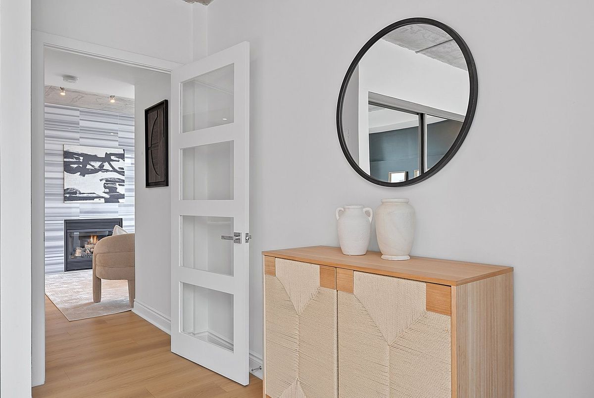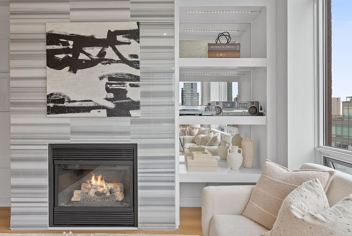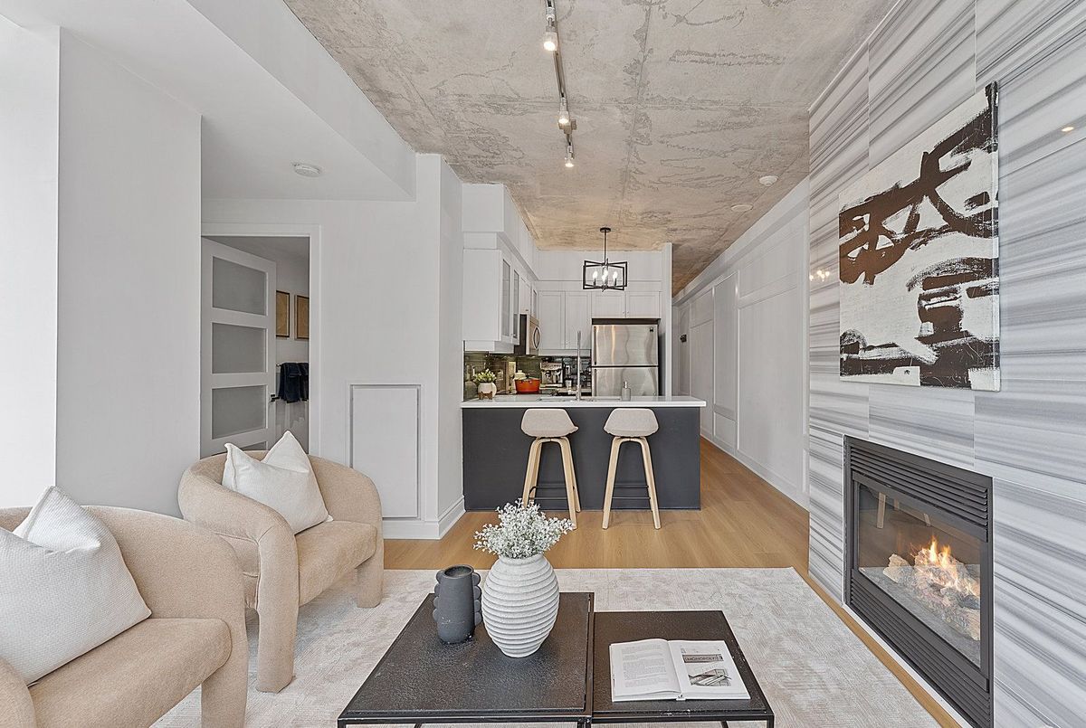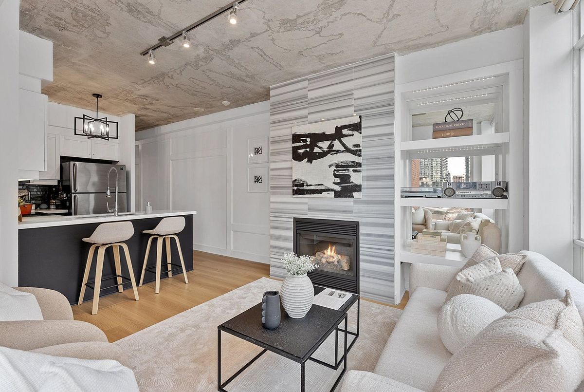 It's the best of all high-end urban lifestyles, with this stylish 1+1 corner suite at the shore of Lake Ontario, yet still in the heart of the thriving city. Enjoy the dazzling vibrancy of Toronto's skyline to the north, the twinkling and constant river-like flow of the Gardiner to the west, and the pull of the sparkling lake to the south. Just imagine the sunsets. This 745 sq ft suite combines modern loft-like glam with exposed concrete ceilings, while surrounding you with custom wall treatments and an exquisite floor-to-ceiling gas fireplace that's wrapped in elegant, polished stone, and boasts a built-in bookcase and rough-in for mounted TV. A large separate den gives you many options: from a home office to a formal dining room, or maybe your ideal TV room, or perhaps even an easy-to-create 2nd bedroom. This special home comes with a storage locker and a preferred parking spot with sought-after buffer zone on one side. Your own EV Charger is also fully hooked-up and ready-to-go for the next owner. 500 Queens Quay West is an exclusive and secure luxury boutique building, in a prime Harbourfront spot, mere moments away from the busy and bustling downtown core. Residents of this mostly owner-occupied building enjoy a wonderful outdoor BBQ and dining area, gym, party room, meeting room, sauna, and top-of-the-line management and concierge staff. Plus there's underground visitor parking for your guests. Endless options for entertainment, dining and nightlife await. Health and nature lovers will love the Martin Goodman Trail, Toronto Music Garden and water taxis right outside the front doors. Multiple dog parks are just a short stroll away. Super convenient access to the expressway, Toronto Islands, Island Airport, TTC and exciting spots like Rogers Centre, Scotiabank Arena and the CN Tower.