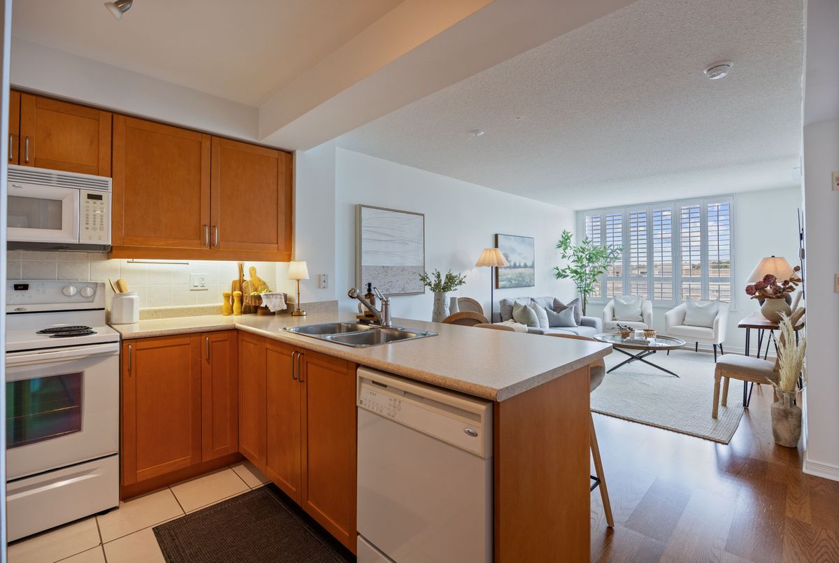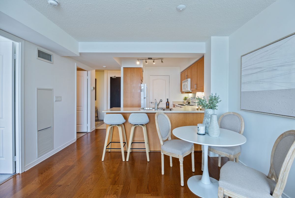 Discover sophisticated living at The Hemingway, a charming low-rise condominium in a vibrant neighborhood. Indulge in luxurious amenities like an indoor pool, hot tub, sauna, exercise room, party room, and rooftop garden, all enhanced by 24-hour concierge service. Enjoy unparalleled convenience with a 24-hour Shoppers Drug Mart, Metro grocery store, TTC access, library, schools, and easy highway access just steps away. This spacious southeast-facing one-bedroom plus den unit features a private balcony and a versatile layout perfect for work-from-home arrangements. Experience the epitome of urban ease and refined comfort at The Hemingway.