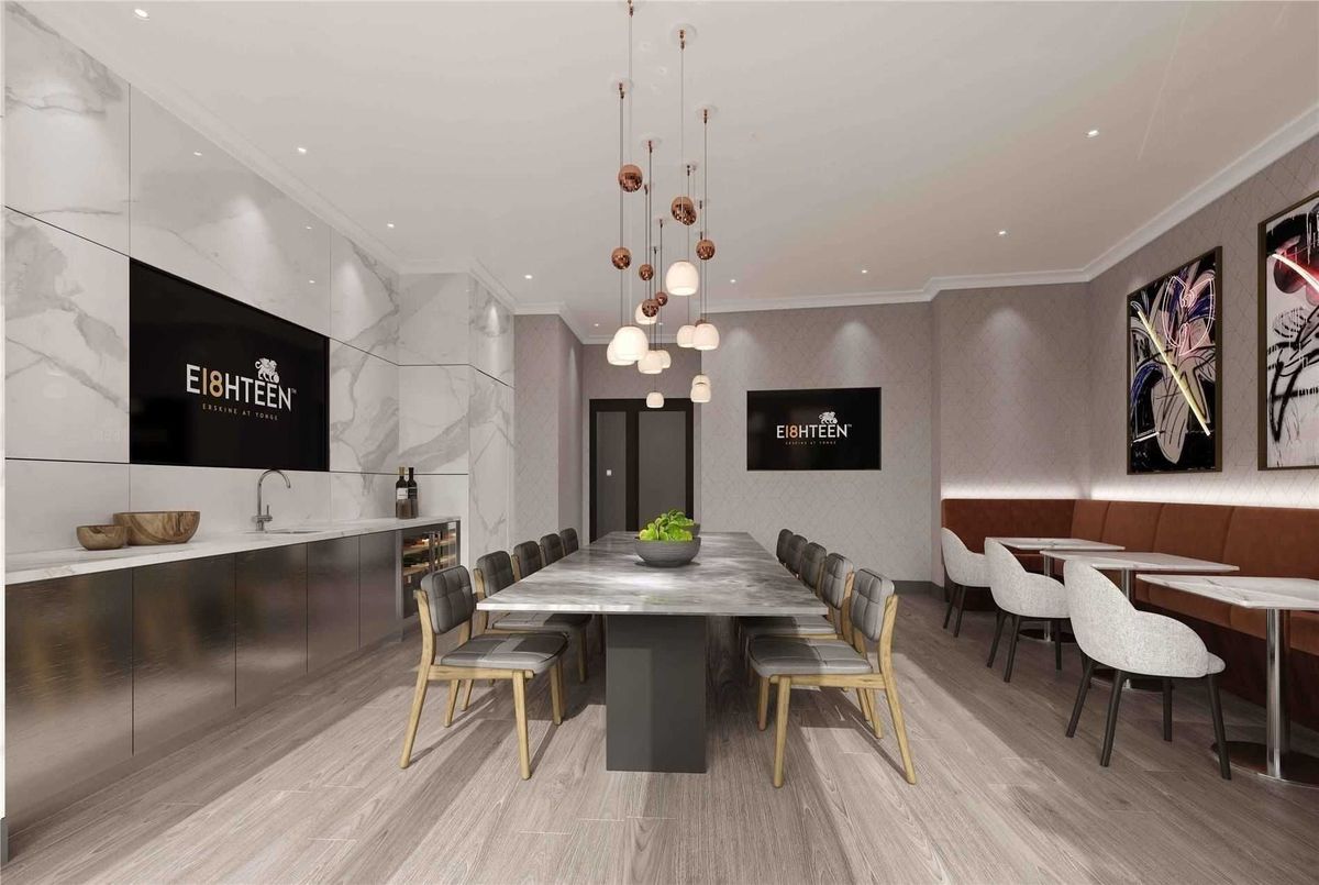 ***ONE MONTH RENT FREE & $1500 Move In Bonus on 18 Month Lease Term!***Your Search is Over! Experience luxury living at 18 Erskine with this coveted Bennington Suite (804 sq ft)! Stunning west-facing 2 bedroom, 2bathroom suite features floor to ceiling windows, premium plank laminate flooring, designer built-in blinds and an extra long balcony with spectacular west views. The modern kitchen showcases a Caesar stone quartz waterfall countertop with undermount rectangular sink, quartz backsplash, stainless steel and ENERGY Star appliances. The primary bedroom includes a walk-in closet, a spa-inspired 3pc ensuite with a chrome rain showerhead, designer vanity and porcelain floor tiles. Enjoy top-tier amenities including a fitness center /yoga/TRX, FREE fitness and VR classes! Indoor pool with steam rooms, co-work studio with FREE WIFI & Netflix. Zen garden, Kids Zone, chef's kitchen with dining lounge and bar with BBQ terrace - Fabulous for entertaining! This building is PET Friendly and features a pet spa, pet wash, pet treadmill, outdoor snow-free pet run! Experience condo-style luxuries with white glove service, social community events, countless amenities and VIP perks - all at no additional cost! EV Charging stations, onsite car wash, bike storage and bike wash!