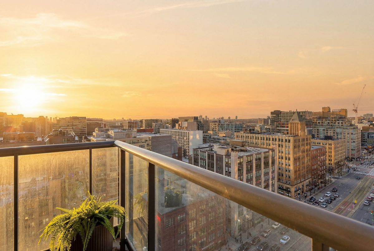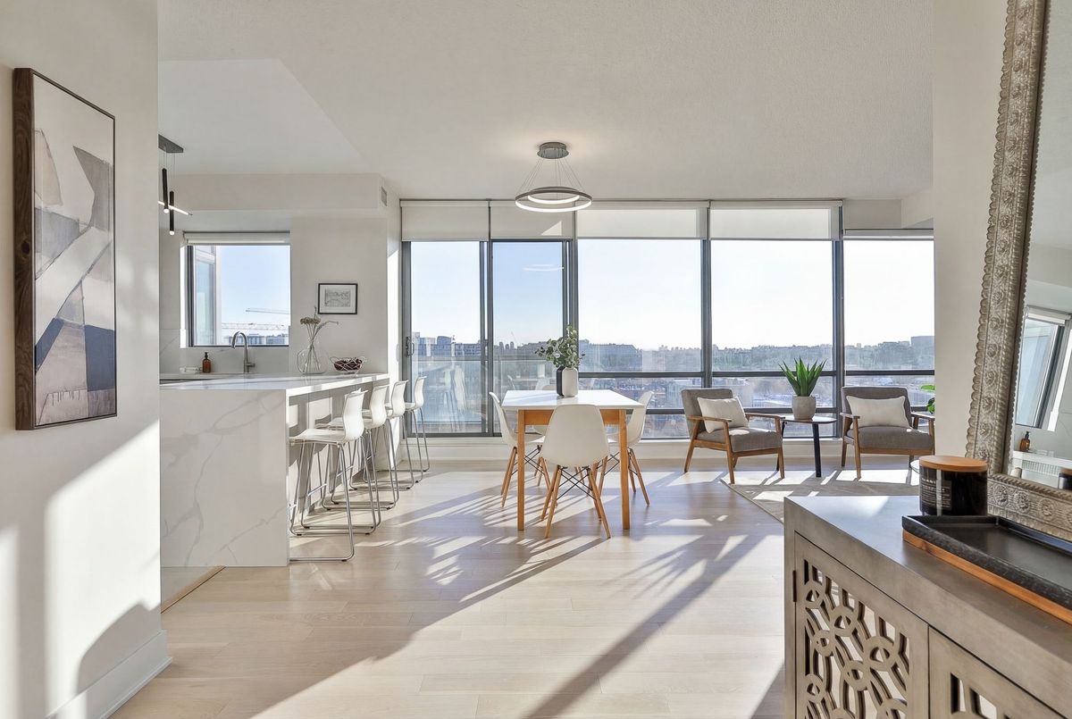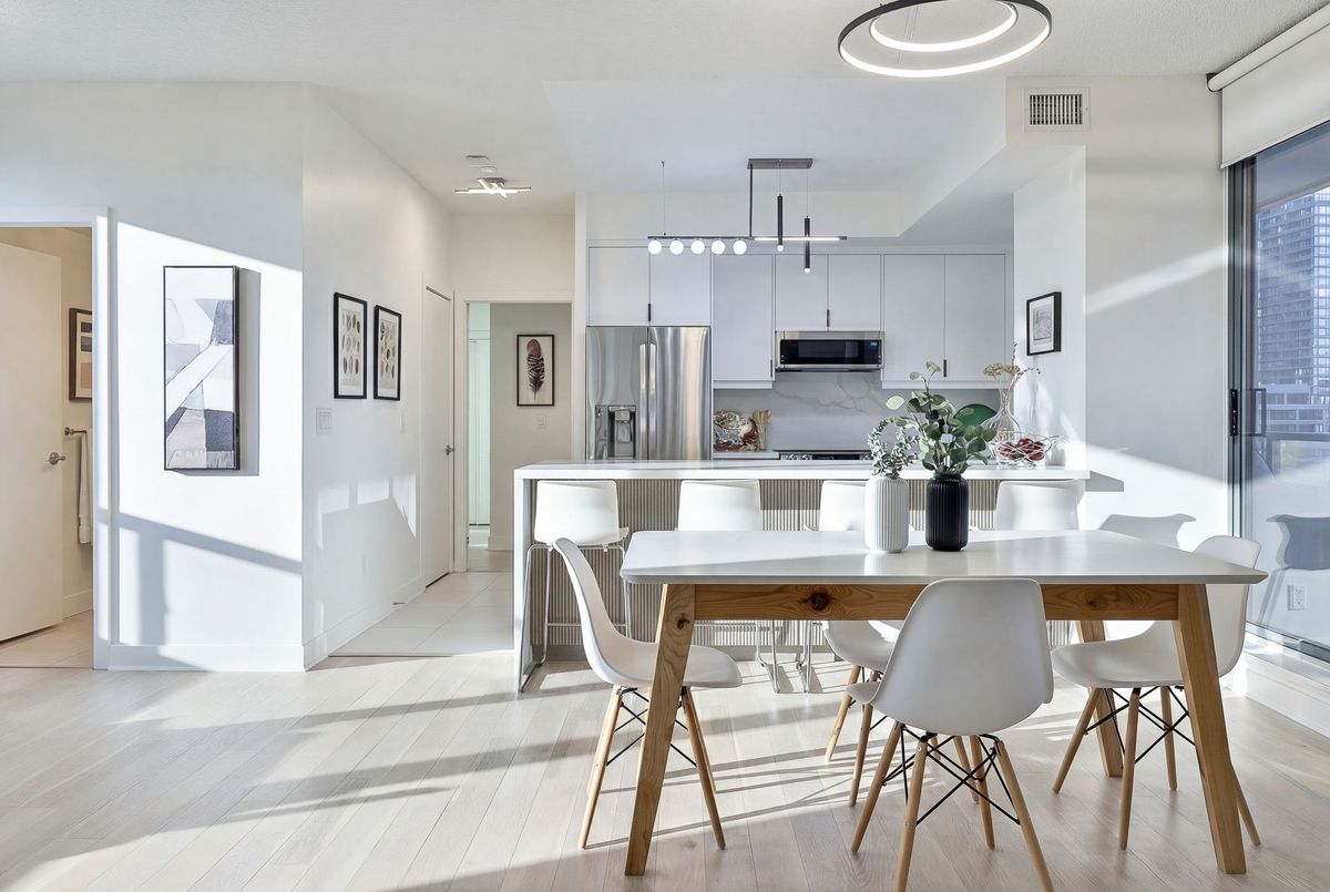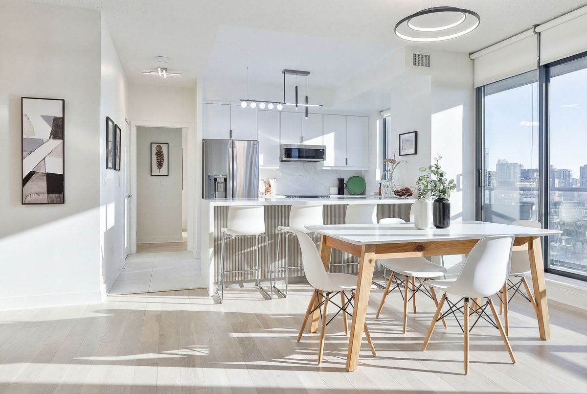 A rare opportunity to own a residence of exceptional quality and luxury in one of King West's most coveted boutique buildings. This meticulously redesigned 2-bedroom, 2-bathroom deluxe corner suite offers an unparalleled living experience with refined, modern finishes throughout. Flooded with natural light, the suite boasts two private balconies with unobstructed panoramic North West of the city and lake-creating a serene backdrop from every room. The open-concept, split-bedroom floor plan is ideal for both everyday living and sophisticated entertaining, featuring elegant flooring, remodeled kitchen, and new finishes throughout. The eat-in kitchen is beautifully appointed with top-of-the-line appliances, an oversized breakfast bar, countertops, and abundant storage-perfect for culinary enthusiasts and entertainers alike. The expansive primary bedroom retreat includes a large closet, walkout to a balcony, and a luxurious five-piece spa-inspired ensuite. The second bedroom offers impressive city views and is ideal for guests, family, or a spacious home office. Rarely does a residence of such style, scale, and sophistication become available in Toronto's vibrant Entertainment District.