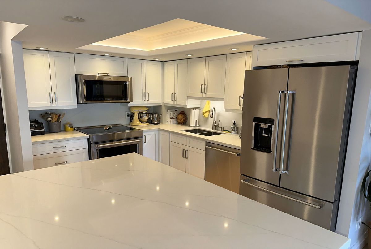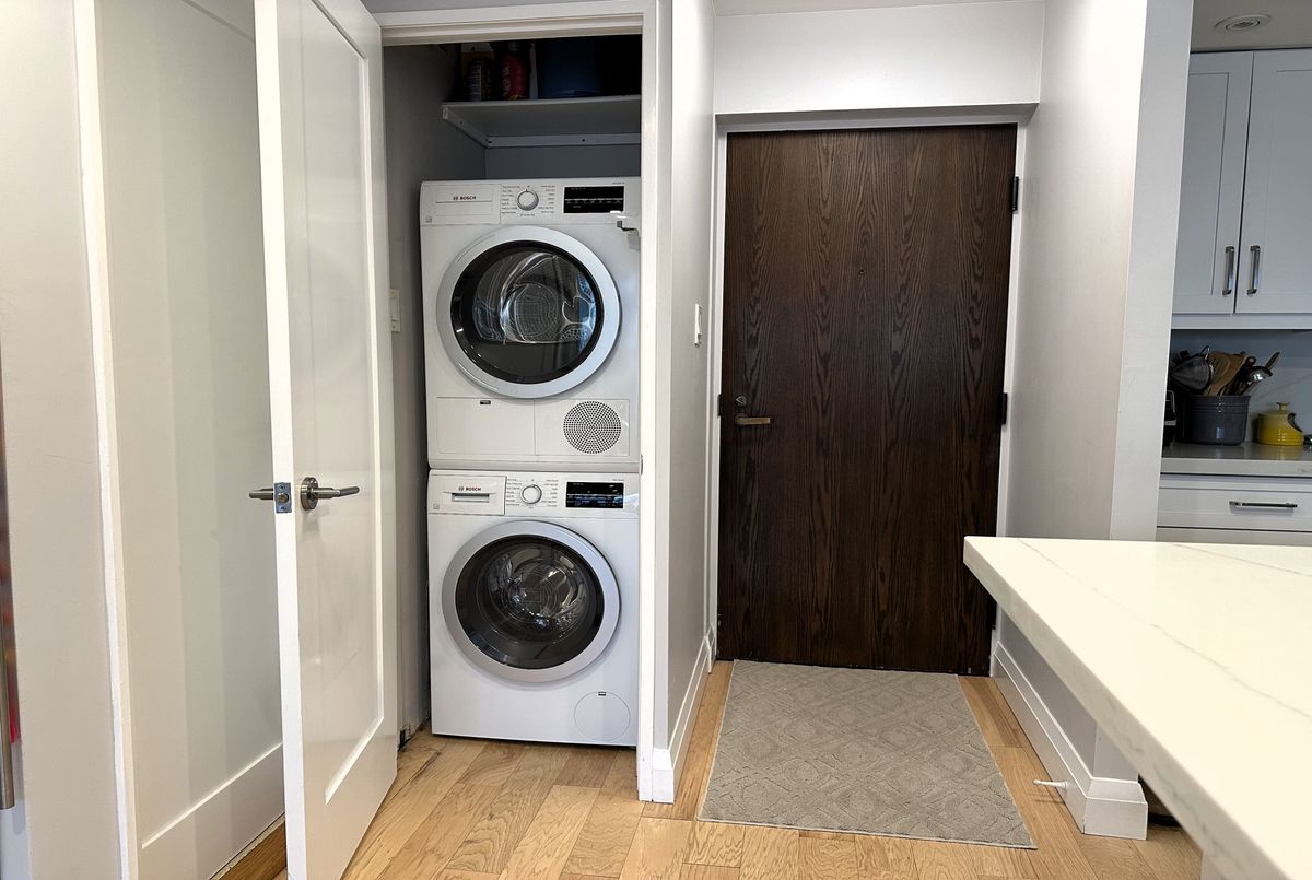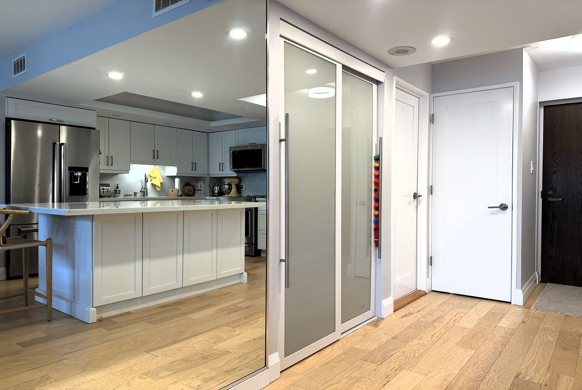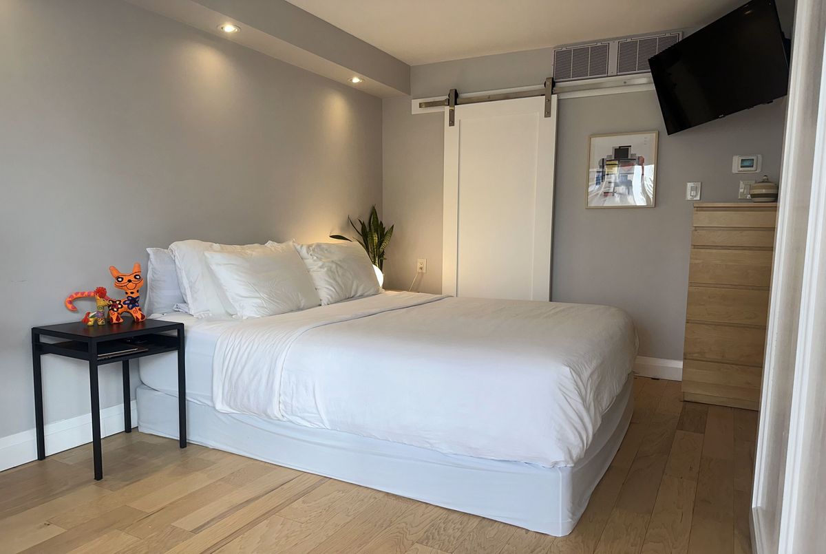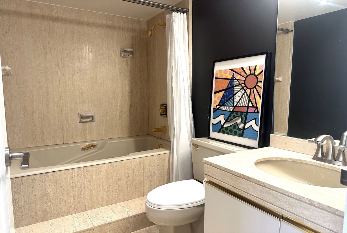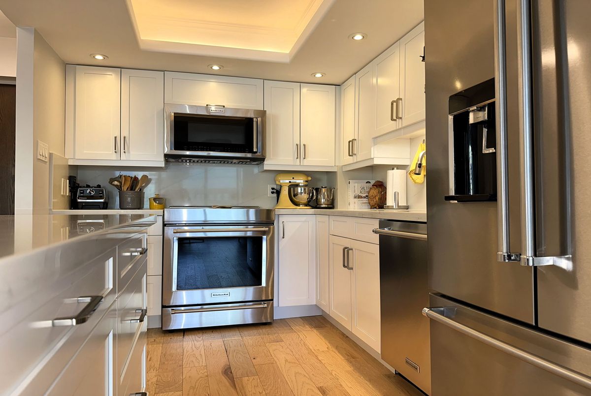 Stunning Modern Condo with Luxury Finishes and City Views. Hydro, Water, Cable, Hi-Speed Internet, Heat, Cooling, Parking are included in rent. Welcome to this exceptional, renovated 1-bedroom, 1-bathroom condo. Featuring hickory hardwood floors throughout, this home offers an open-concept living space bathed in natural light from floor-to-ceiling windows. The living room boasts floor-to-ceiling mirrors, adding an extra touch of sophistication and enhancing the spacious feel. Modern kitchen is a chef's dream, showcasing white quartz countertops, top of the line, stainless steel, KitchenAid appliances (including an induction stove, dishwasher, convection microwave, and XL French door fridge with water filtration), plus a large kitchen island with seating for up to 6. Perfect for entertaining, this kitchen offers ample storage and prep space. Relax in the oversized bedroom, complete with a generous walk-in closet for all your storage needs. The bathroom is a luxurious retreat with marble floors, walls, and countertops, featuring a step-up deep soaker tub for the ultimate in relaxation. Enjoy the added bonus of a dedicated office space with sweeping city views, ideal for working from home. Step out onto the floor-to-ceiling Juliet balcony for fresh air and scenic surroundings. Additional highlights include a premium Bosch washer and dryer and easy access to vibrant city amenities. Lakefront building offers amazing amenities such are Swimming Pool, Squash court, Gym, Sauna, Billiard room, Library, Bar, Large Roof Top deck with grass part, Shuttle Bus Service, Full time consierge service and security and more...