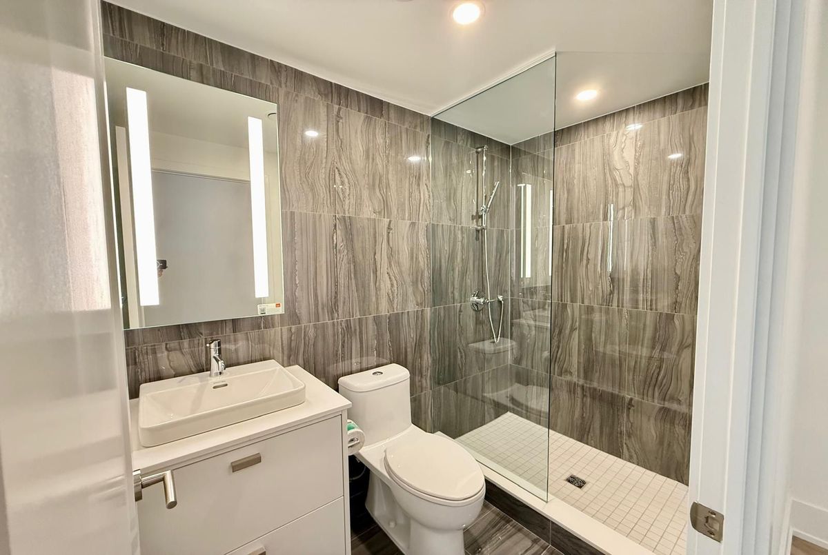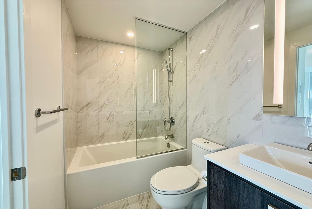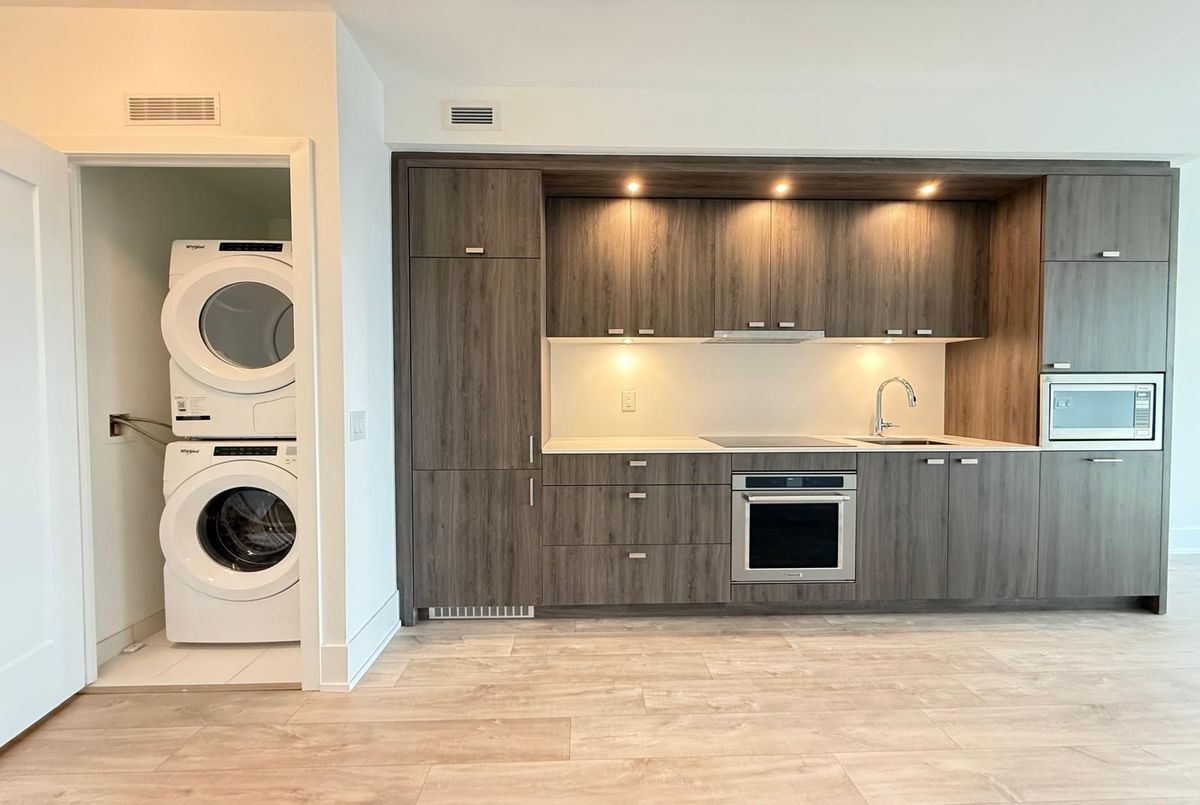 Tridel's newest community MRKT Condominiums. Experience luxury downtown living with everything Toronto has to offer right at your doorstep. This rare, wide, and spacious 1+1 bedroom with 2 bathrooms features a bright west-facing exposure and a large balcony - perfect for enjoying sunset views. The suite offers a modern kitchen with built-in appliances, stone countertops, and elegant finishes throughout. Enjoy resort-style amenities, including a multi-level gym, outdoor rooftop pool, BBQ terrace, co-working space with meeting rooms, and a kids' playroom. Located in the heart of Kensington Market, steps to U of T, Chinatown, Queen West, King West, and easy access to St. Patrick subway station and TTC streetcars. Luxury, lifestyle, and convenience all in one address.