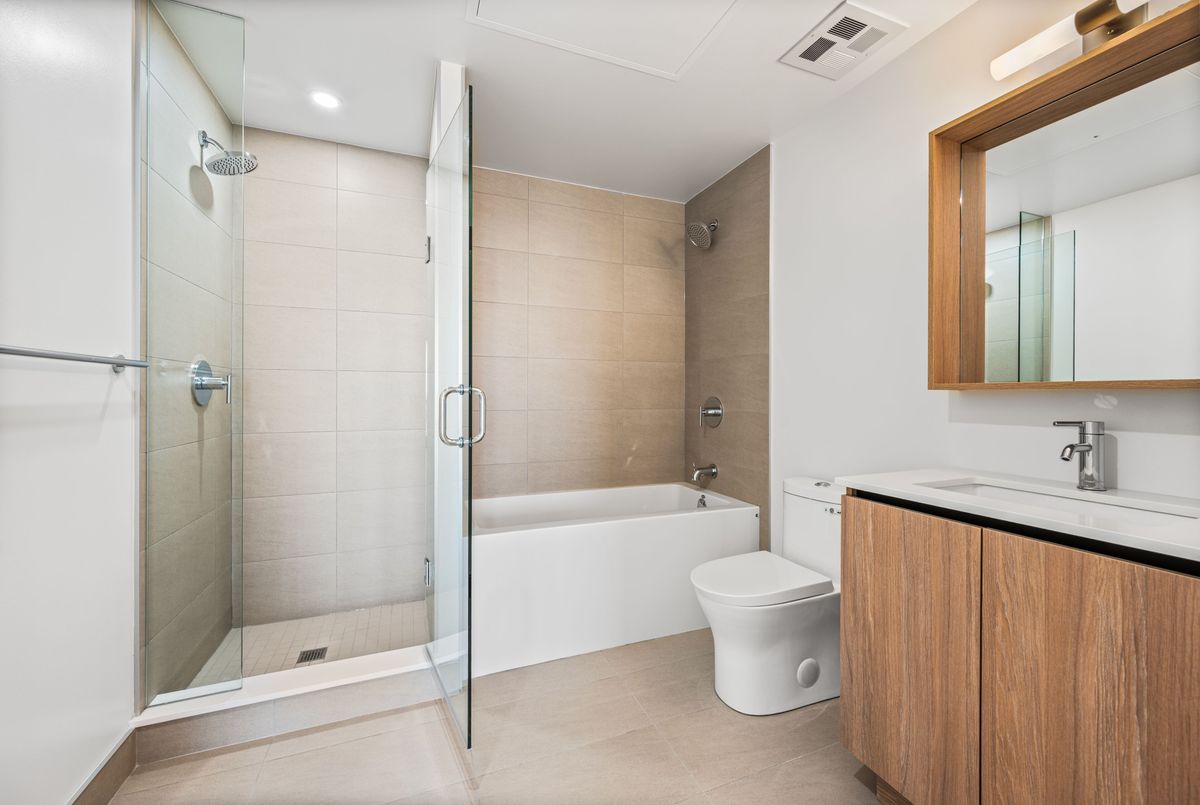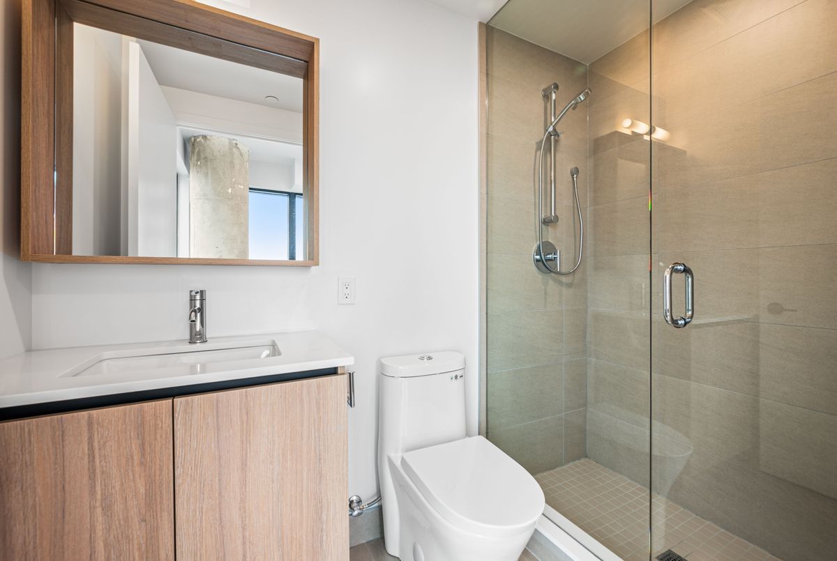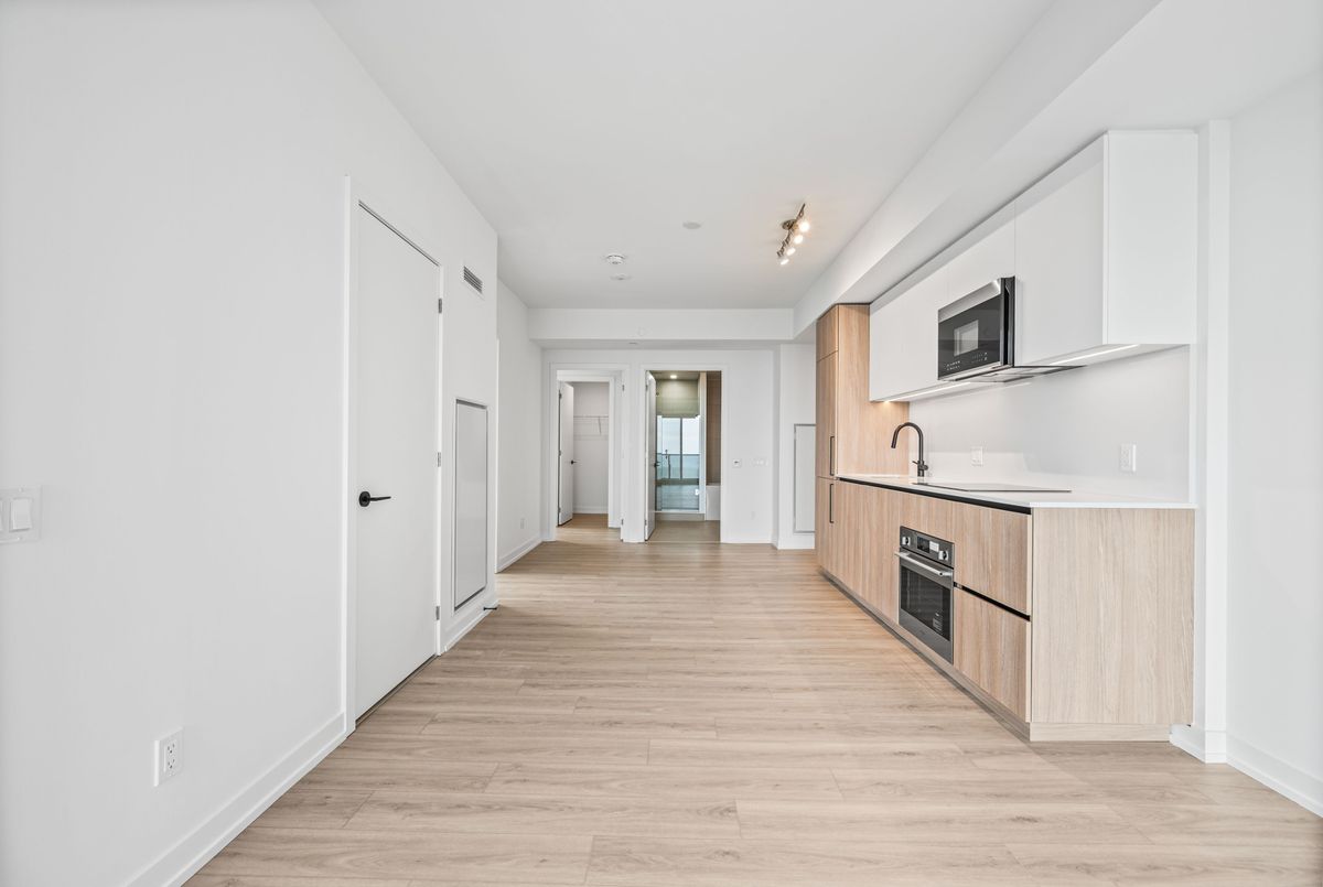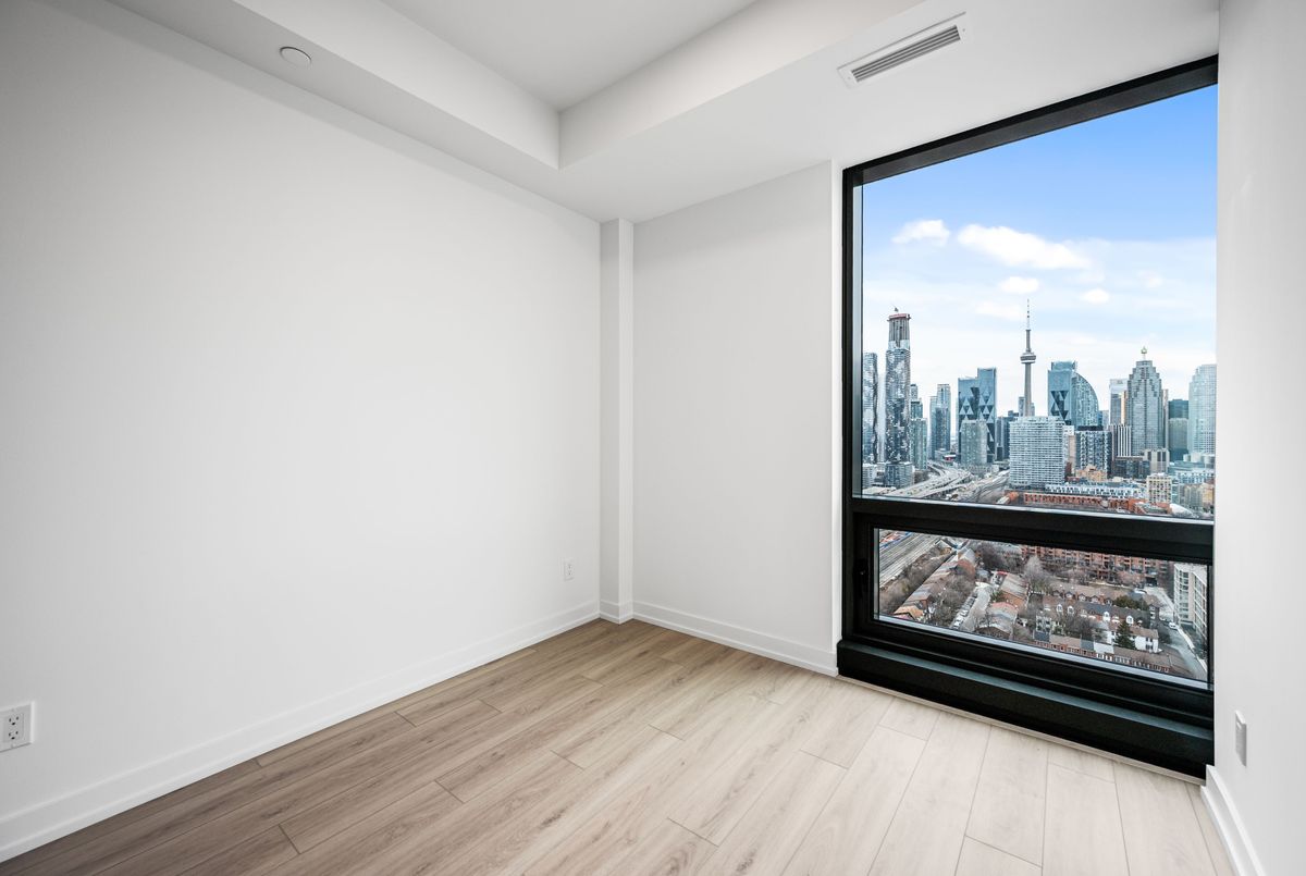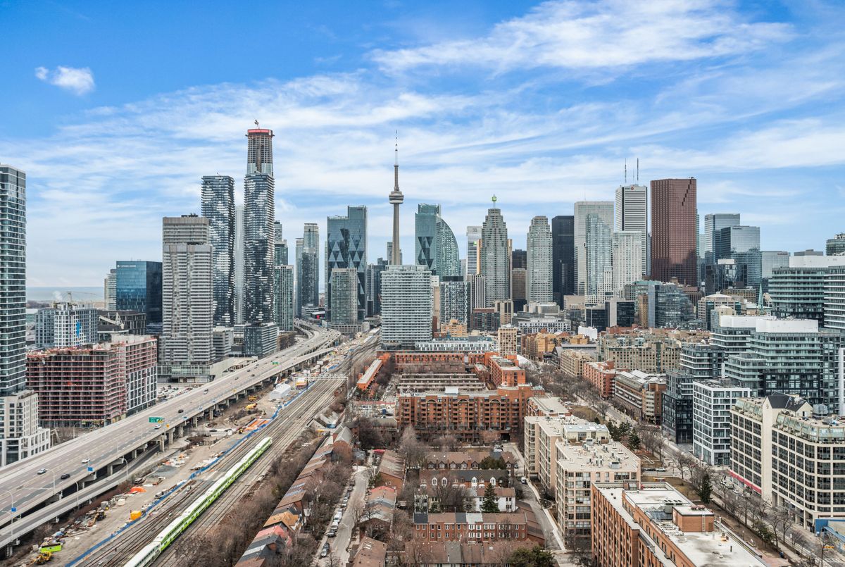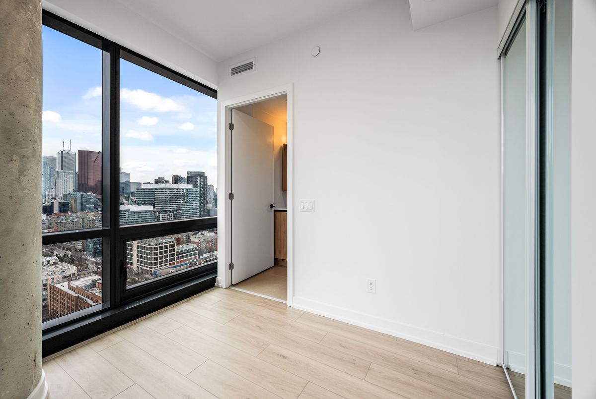 Welcome to Brand New Suite2904 at The Goode Condo. This elegant 3-bedroom, 2-bathroom South-West facing corner suite offers a rare wrap-around balcony with stunning unobstructed city skyline and lake views. Bright and spacious with a functional split-bedroom layout, floor-to-ceiling windows, and a modern open-concept design. Contemporary kitchen with integrated appliances and stone countertops. Primary bedroom features a private ensuite and generous walk-in closet space. Good for families need home office space. Located in the heart of the Distillery District, steps to transit, boutique shops, top restaurants, waterfront trails, and St. Lawrence Market. Premium amenities are open to use: include 24-hour concierge, outdoor pool, fitness centre, yoga studio, co-working lounge, pet wash, and visitor parking.