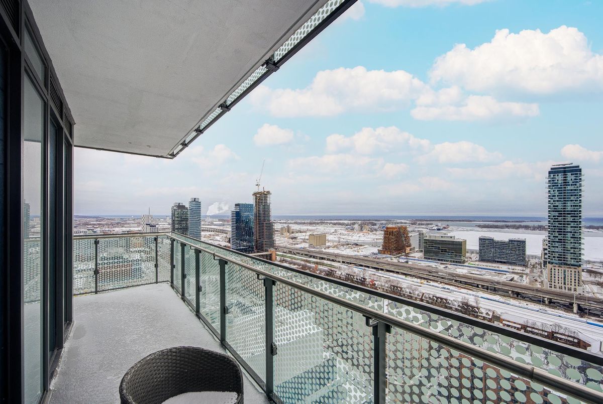Welcome To Time & Space Condos By Pemberton - A Rare Lower Penthouse Residence Offering One Of The Best Layouts And Exposures In The Building. Stunning South-East Corner With Clear Views Of Lake Ontario And The City Skyline, Flooded With Natural Light Through Floor-To-Ceiling Windows. Exceptional 3 Bedroom, 2 Bath Design With Separate Living And Dining Rooms - A True Rarity In Today's Condo Market. Premium Features Include 9-Ft Ceilings, 7.5" Wide-Plank Laminate Flooring, Full-Sized 27" Stacked Washer & Dryer, And Multiple Walk-Outs To A Massive Wrap-Around Balcony (Approx. 300 Sq.Ft.) Perfect For Entertaining And Everyday Enjoyment. Includes 1 Underground Parking And 1 Locker. Unbeatable Downtown Location Steps To St. Lawrence Market, Distillery District, TTC/Subway, Financial District, George Brown College, And The Waterfront, With Quick Access To DVP & QEW. Resort-Style Amenities Include Infinity-Edge Pool, Rooftop Cabanas, Outdoor BBQ Area, Gym, Yoga Studio, Games Room, Party Room, And More. A True Gem - Must See!
