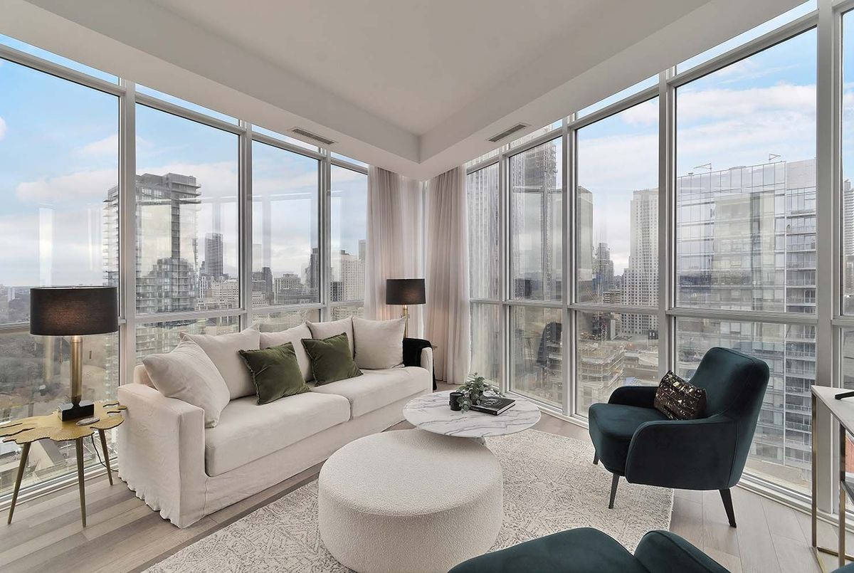 Welcome to "The Yorkville" condos, where luxury living meets one of Toronto's most vibrant and sought-after neighbourhoods. Surrounded by world-class dining, upscale shopping, renowned museums, and endless entertainment, this location truly offers the best of city living. This stunning suite features breathtaking panoramic views with 10-foot floor-to-ceiling windows, allowing you to enjoy both sunrise mornings with your coffee and spectacular sunset evenings. The sleek, modern kitchen is designed for both style and function, complete with full-sized appliances, a generous quartz centre island, and a separate dining area-perfect for entertaining. The primary bedroom offers a five-piece ensuite and walk-in closet. A well-appointed second bedroom and an additional three-piece bath provide comfort and convenience for family or guests. The bright, east-facing den is generously sized-ideal as a home office, additional living space, or easily converted into a third bedroom. Residents enjoy access to premium amenities, including a rooftop terrace, party room, fully equipped fitness centre, steam room, plunge pool, wine tasting room, visitor parking, and 24-hour concierge service. This unit also includes two prime side-by-side parking spaces located right by the elevator lobby, along with an extra-high garage entrance that accommodates even the largest SUVs or trucks. With an exceptional walkability score, you're just a short stroll to Yorkville, Summerhill, and the Annex, and only minutes from Yonge & Bloor subway stations, providing seamless access to both Line 1 and Line 2.Impeccably maintained and showing beautifully, this home offers stunning views and true pride of ownership.