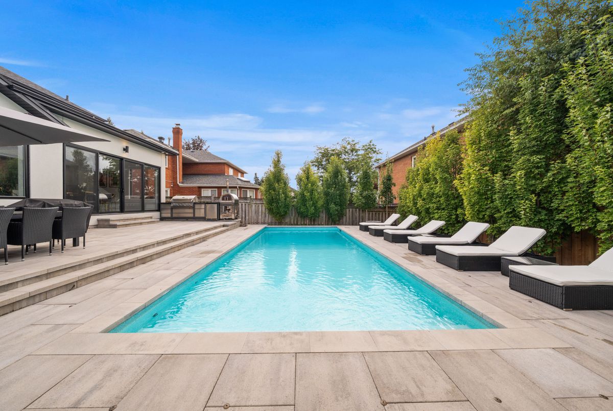 This Custom Build Weston Downs Residence Embodies Modern Luxury And Thoughtful Design. Offering 4+1 Bedrooms And 5 Bathrooms, The Home Features Hardwood Flooring Throughout Three Levels, New Electrical Systems, HVAC System, Plumbing And Water Filter System. Over 150 LED Potlights And A State-Of-The-Art Control 4 Home Automation System For Seamless Comfort And Convenience. The Main Floor Balances Entertaining And Everyday Living. A Formal Dining Room With Servery And Walk-In Pantry Complements The Chef's Kitchen With A Striking Centre Island, German Quartz Counters And Backsplash And Premium Appliances. The Sun-Filled Breakfast Area Opens To The Pool, While The Family Room Impresses With A Vaulted Ceiling And A 74" Dimplex Linear Electric Fireplace. Upstairs, The Primary Suite Provides A Private Retreat With Custom Built-Ins And A Spa-Inspired Ensuite With Oversized Walk-In Shower And Free-Standing Soaker Tub. Three Additional Bedrooms Are Generously Sized, Including One With An Ensuite And Custom Cabinetry.The Lower Level Is Ideal For Entertainment, Featuring A Bedroom, Recreation Room, Wet Bar And Custom Home Theatre With A 120" Motorized Screen And Klipsch Surround Sound. Superior Soundproofing Enhances The Basement And All Bathrooms Throughout The House For Privacy And Comfort. Outside, Professionally Landscaped Grounds Include A 16' X 34' Heated Saltwater Pool With Stone Surround, Built-In Kitchen With Granite Counters, Fridge And Napoleon Gas BBQ, Plus A Cabana Anchored By A Barbara Jean Linear Gas Fireplace With Granite Surround. Additional Highlights Include A New Driveway, Garage Doors, Epoxy Garage Floor And Hunter Irrigation System. This Weston Downs Residence Blends Timeless Sophistication With Modern Amenities, Offering An Unparalleled Lifestyle For Discerning Buyers.