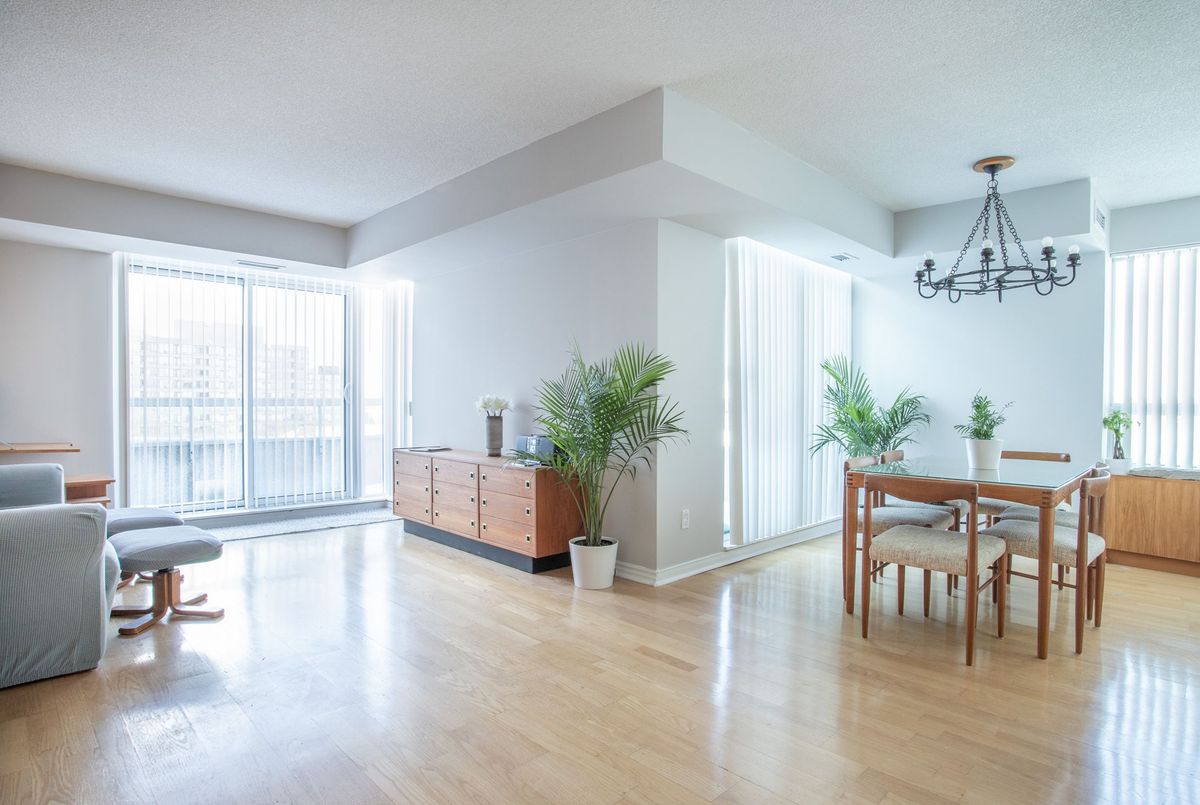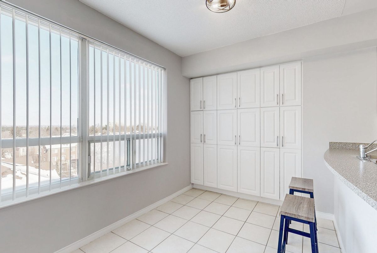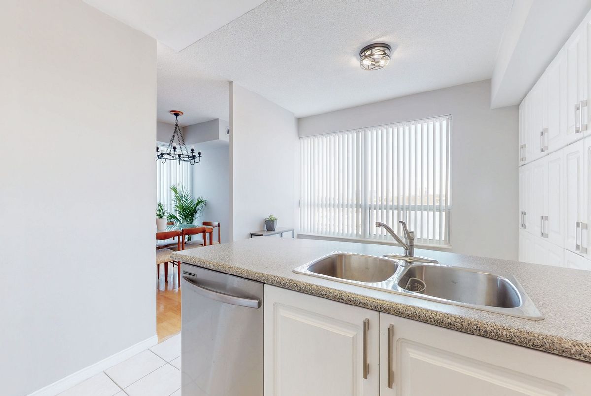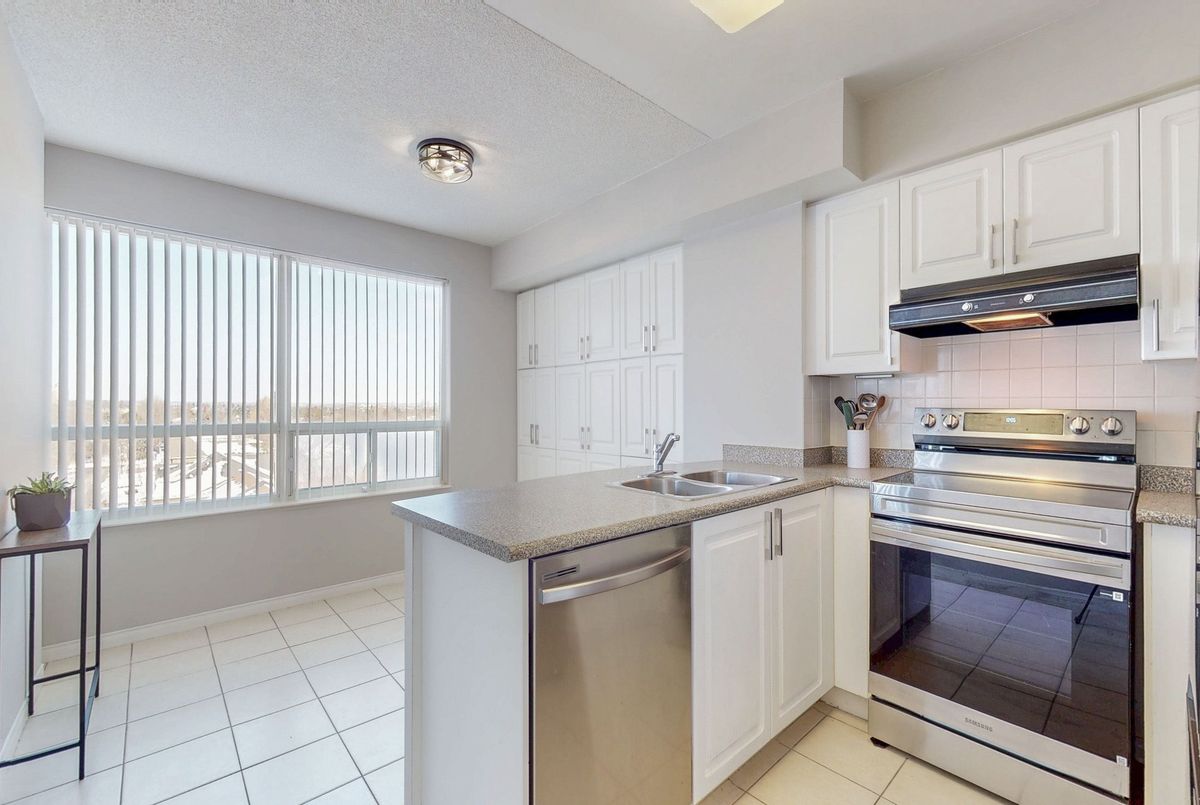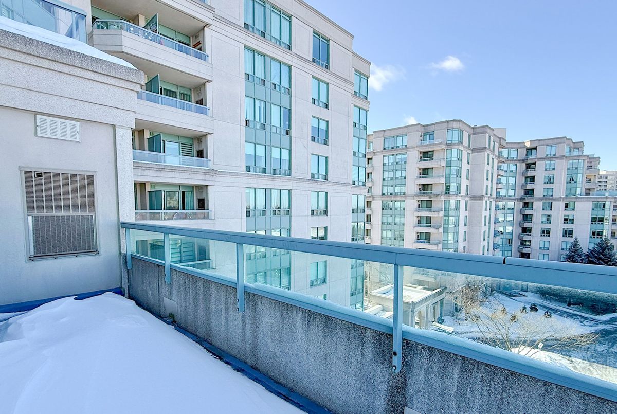 Welcome To Eiffel Towers By Menkes! Rarely Offered Corner Suite Featuring An Expansive Wrap-Around Terrace And Exceptional Privacy. One Of The Largest 2-Bedroom Layouts In The Complex With Functional Design: 1225 Sqft Interior + 224 Sqft Terrace (No Overhang Above) = 1449 Sqft. Bright, Spacious Living & Dining Areas With Custom Built-Ins For Added Storage And Floor-To-Ceiling Windows That Flood The Unit With Natural Light. Freshly Updated Kitchen With Modern Finishes & Brand New Stainless Steel Appliances (Dec 2025), Breakfast Area And Extra Pantry Cabinetry. Oversized Primary Bedroom With WIC & Spa-Like Ensuite With Soaker Tub & Separate Shower. Tandem Parking For 2 Cars + Oversized 2nd-Floor Locker. Quiet, Private Setting Away From Steeles & Bathurst. Gated Community With Resort-Style Amenities & 24-Hr Security. Easy Access To Hwys 401/404/407. A Rare Opportunity To Own A Truly Spacious And Private Condominium In A Highly Sought-After Complex.