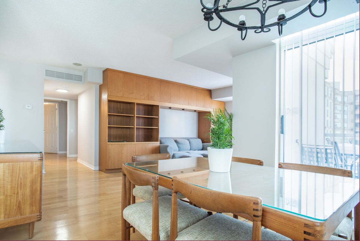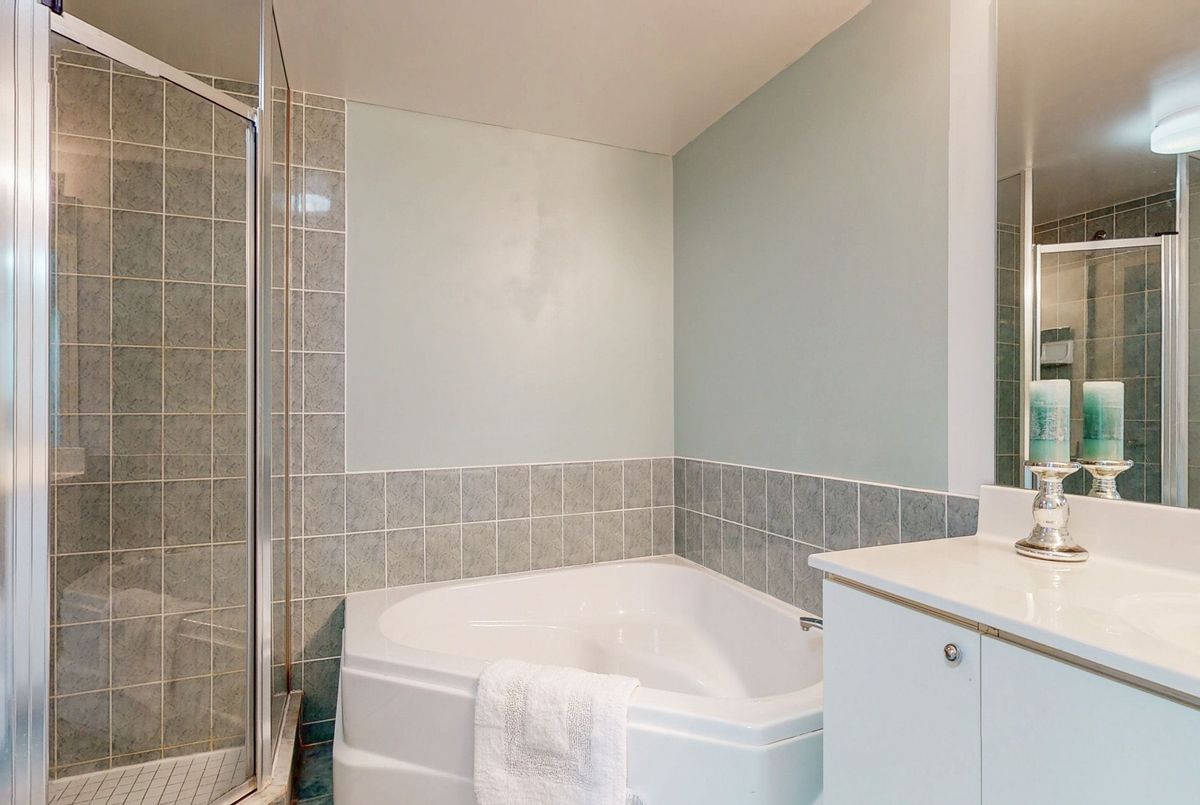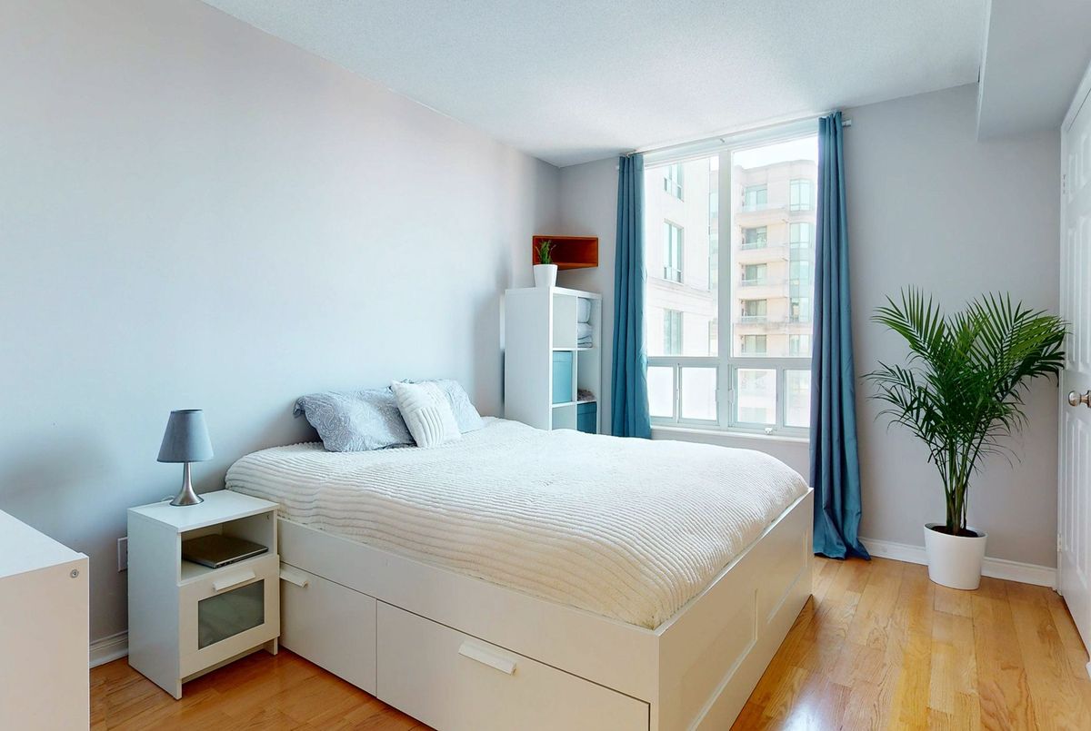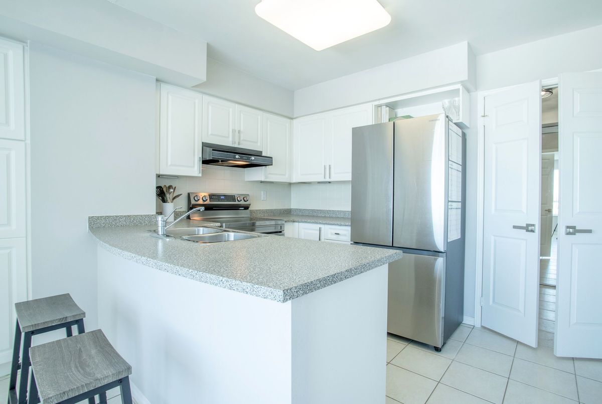 Welcome To Eiffel Towers By Menkes! Rarely Offered Corner Suite Featuring An Expansive Wrap-Around Terrace And Exceptional Privacy. One Of The Largest 2-Bedroom Layouts In The Complex With Functional Design: 1225 Sqft Interior + 224 Sqft Terrace (No Overhang Above) = 1449 Sqft. Bright, Spacious Living & Dining Areas With Custom Built-Ins For Added Storage And Floor-To-Ceiling Windows That Flood The Unit With Natural Light. Freshly Updated Kitchen With Modern Finishes & Brand New Stainless Steel Appliances (Dec 2025), Breakfast Area And Extra Pantry Cabinetry. Oversized Primary Bedroom With WIC & Spa-Like Ensuite With Soaker Tub & Separate Shower. Tandem Parking For 2 Cars + Oversized 2nd-Floor Locker. Quiet, Private Setting Away From Steeles & Bathurst. Gated Community With Resort-Style Amenities & 24-Hr Security. Easy Access To Hwys 401/404/407. A Rare Opportunity To Own A Truly Spacious And Private Condominium In A Highly Sought-After Complex.