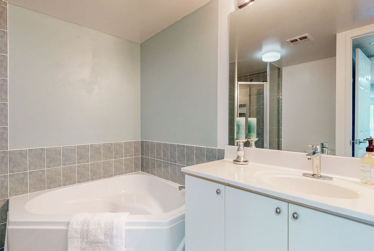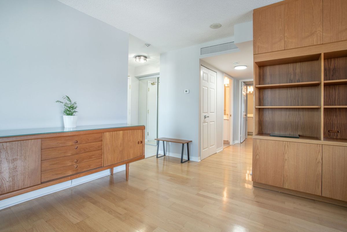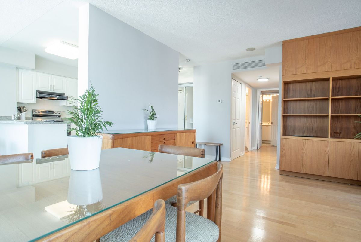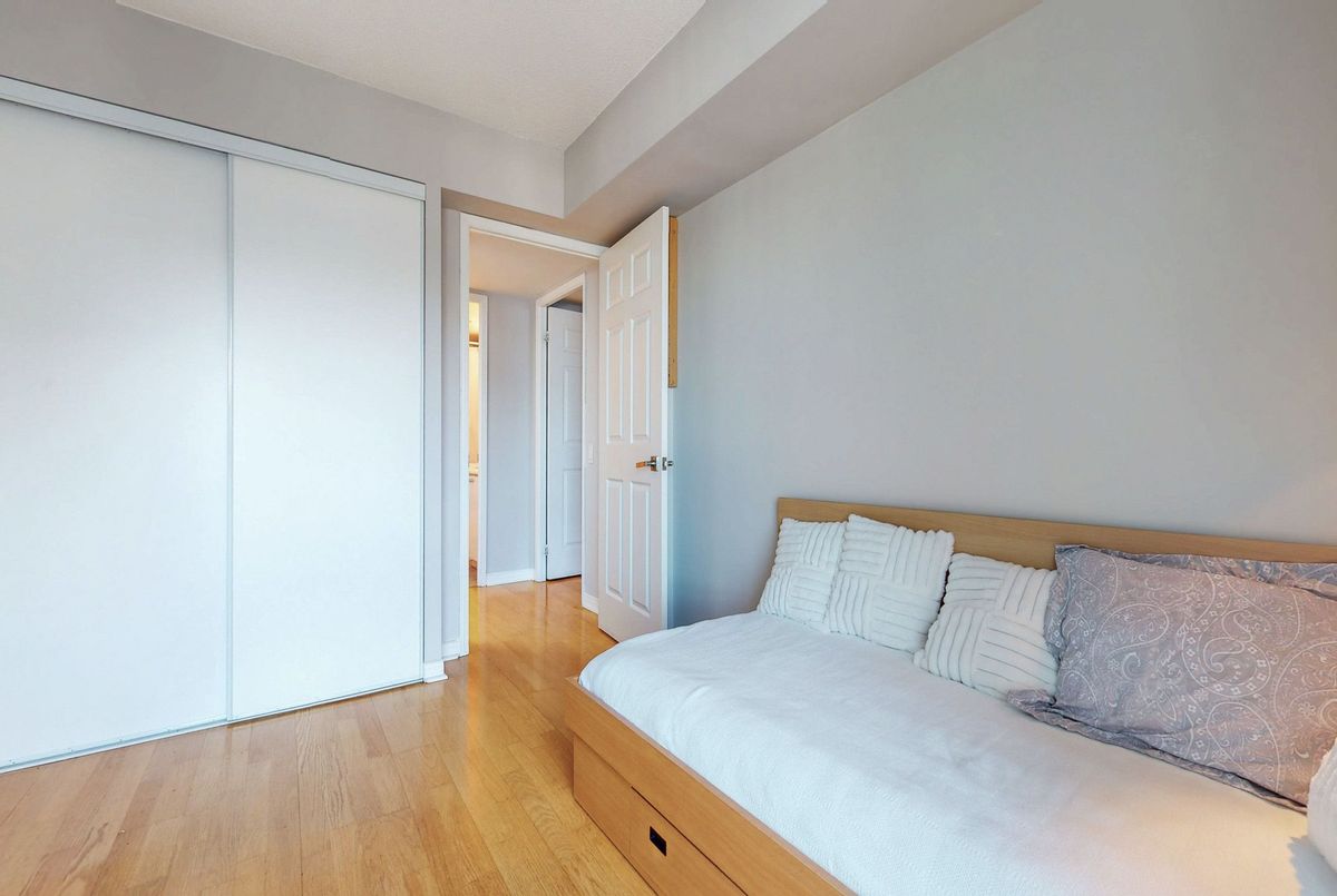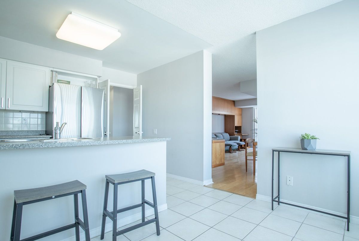 Welcome To Eiffel Towers By Menkes! Rarely Offered Corner Suite Featuring An Expansive Wrap-Around Terrace And Exceptional Privacy. One Of The Largest 2-Bedroom Layouts In The Complex With Functional Design: 1225 Sqft Interior + 224 Sqft Terrace (No Overhang Above) = 1449 Sqft. Bright, Spacious Living & Dining Areas With Custom Built-Ins For Added Storage And Floor-To-Ceiling Windows That Flood The Unit With Natural Light. Freshly Updated Kitchen With Modern Finishes & Brand New Stainless Steel Appliances (Dec 2025), Breakfast Area And Extra Pantry Cabinetry. Oversized Primary Bedroom With WIC & Spa-Like Ensuite With Soaker Tub & Separate Shower. Tandem Parking For 2 Cars + Oversized 2nd-Floor Locker. Quiet, Private Setting Away From Steeles & Bathurst. Gated Community With Resort-Style Amenities & 24-Hr Security. Easy Access To Hwys 401/404/407. A Rare Opportunity To Own A Truly Spacious And Private Condominium In A Highly Sought-After Complex.
