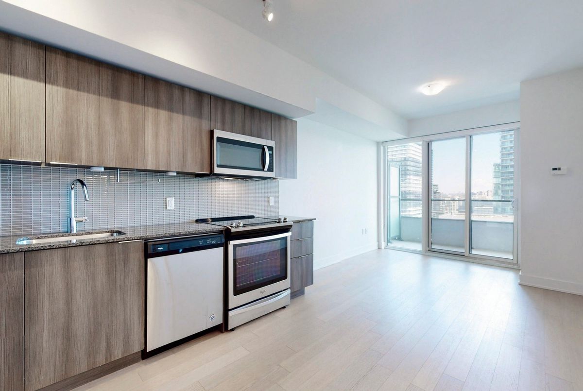 Move in today and experience elevated waterfront living at Suite #2006 in the highly sought-after Eau Du Soleil Condos - Water Tower! This freshly painted, impeccably clean 1 Bedroom + Den offers a bright and functional layout with breathtaking lake and Toronto skyline views from the 20th floor. Enjoy premium neutral laminate flooring throughout (excluding the washroom) and a seamless open-concept living, dining, and kitchen space-perfect for everyday living and entertaining. The upgraded kitchen features granite countertops, stylish backsplash, and stainless steel appliances. The spacious primary bedroom includes a large closet and direct walkout to your private balcony, where you can take in stunning views day and night. The versatile den is ideal for a home office or guest space. Complete with a full 4-piece bathroom and convenient stacked washer & dryer. Includes 1 parking space and 1 locker. Enjoy resort-style amenities including concierge, indoor pool, gym, hot tub, yoga studio, party room, theatre, guest suites, and more. Located steps to Humber Bay Park, waterfront trails, transit, and quick highway access-this is city living at its best!