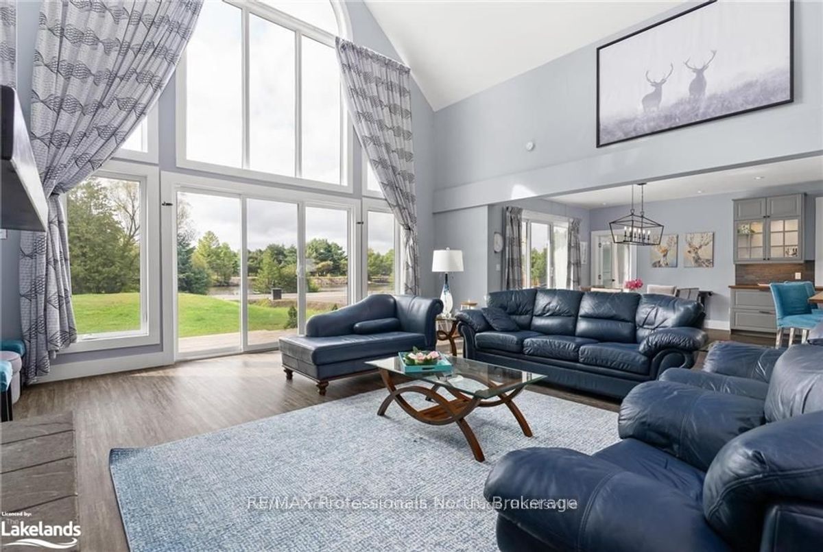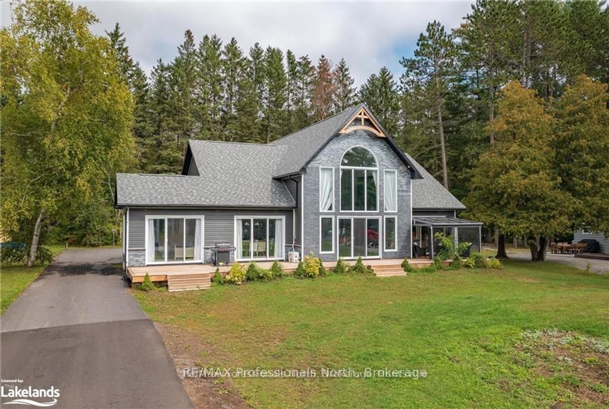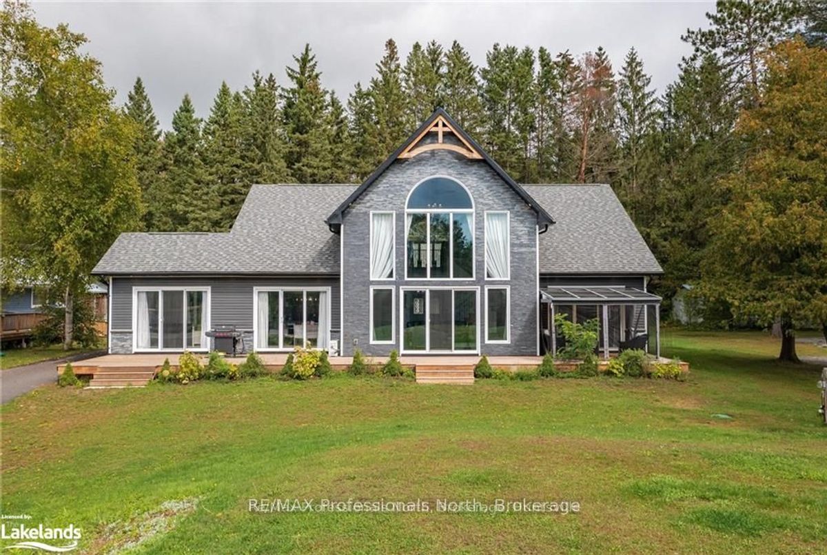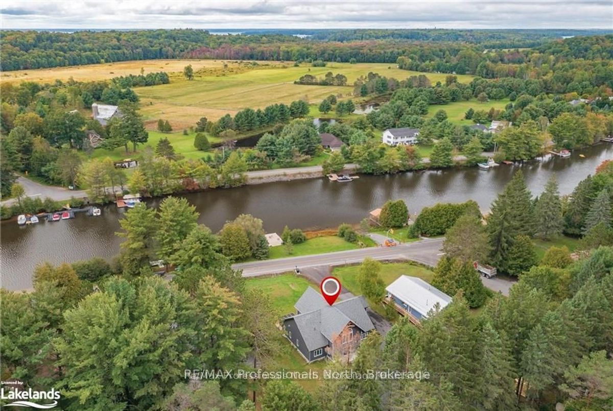 Beautiful 3 bedroom Bungaloft with stunning Muskoka River views & dock with boat access to Lake Muskoka, Lake Rosseau & Lake Joseph, providing miles of water fun! This four years new "upscale" home comes with sprawling open concept living room, kitchen & dining room are tastefully designed & perfect for entertaining guests. Gorgeous cathedral ceilings, bright floor to ceiling windows & a floor to ceiling stone- gas fireplace are just a few of the great features that this home has to offer. In floor hot water heating plus heat pump for additional heating/ air conditioning. Lovely primary bedroom with plenty of space including a 4 piece ensuite bathroom, walk-in closet & walk out to the deck. 2 more generous sized bright bedrooms on the main floor as well as a large loft upstairs. Bright sunroom as it is used as a 4th bedroom at present. Huge detached triple car garage is the perfect place to store your toys and park your vehicles and has a cute 400 sq ft 1 bedroom apartment above with a Fireplace, Bedroom, Bathroom & Sitting Room. Great private space for overflow guests or potentially excellent rental income. Waterfront includes a dock and sandy beach area for the whole family to enjoy. There are so many memories to be made at this spectacular home/cottage, or a great investment/rental opportunity. All of this just 5 minutes from beautiful downtown Bracebridge. Come and see for yourself! This property is ready to move in. Nothing to do but enjoy.