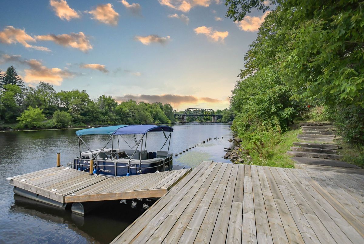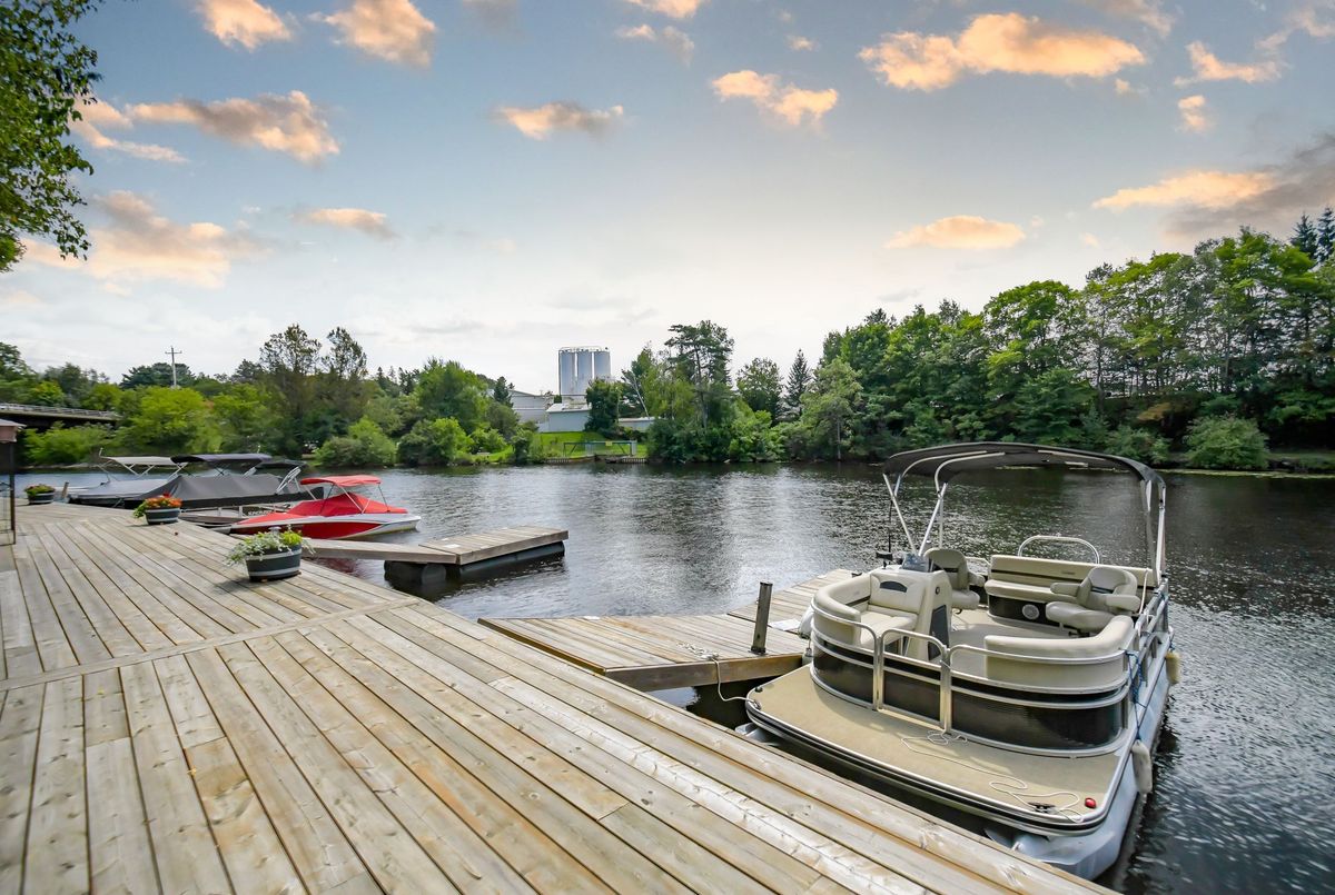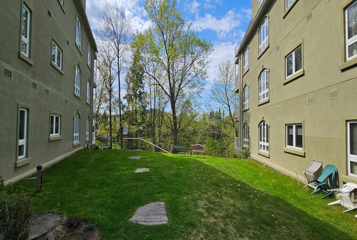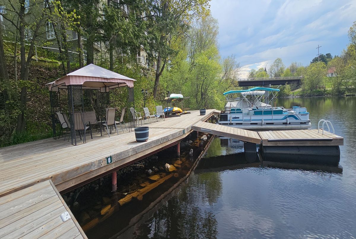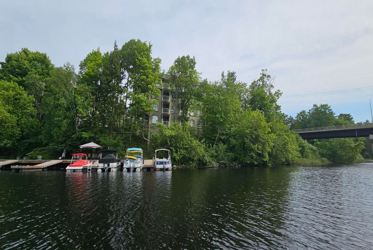 Neat as a pin 2 Bedroom, 1.5 bath main floor condo on the Muskoka River in Huntsville. This immaculately kept unit enjoys river views, 2 large bedrooms, including an en-suite bath in the primary, a covered porch, in-suite laundry, spacious living/dining room, lots of natural light, and all of the conveniences of living within a short stroll to the downtown area. Outside you will find a large green space, covered communal BBQ's, and a large shared waterfront docking area with private boat slips, a canoe/kayak rack, and gazebo. This unit enjoys a reserved underground parking space, and a private locker. Come take a look to appreciate the quality and convenience of this popular riverfront condominium in the heart of Huntsville. **Unit currently Tenanted. Please allow sufficient notice for viewings.