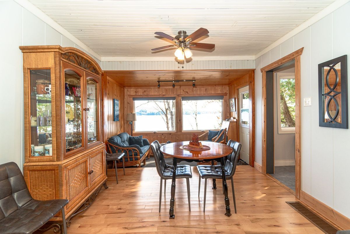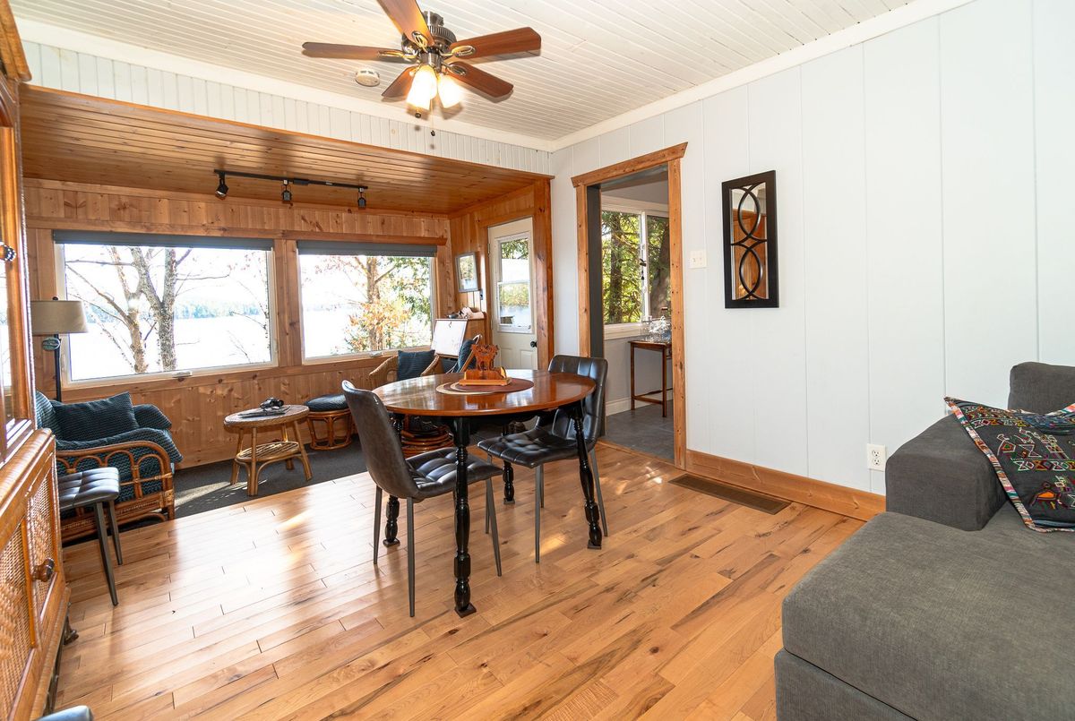 This is the perfect opportunity to begin your waterfront lifestyle, on Lake of Bays. Enjoy the magic on the lake that each season offers, in this completely winterized cottage or home. The cottage can easily be converted from two bedrooms to three bedrooms. The cottage has been tastefully renovated from top to bottom and there is nothing to do but move in. The views of the lake are stunning, and you will love the charming accents and design that create a true cottage vibe. The features of the cottage include: A floor to ceiling reclaimed brick, wood burning fireplace; maple hardwood floors; walkout from the principal bedroom to your private deck with wide open lake views; a cozy Sun room; huge laundry room with a pantry and large closet space and a large kitchen overlooking the lake with an expansive counter area and double sink. Imagine enjoying your morning coffee on your dock with mesmerizing water views of Haystack Bay. The beach area is perfect for swimming, canoeing, or soaking up the sun. If you enjoy snowmobiling, there is a marked, groomed trail that you can access directly from the cottage that is part a main trail system, linking to over 100 kilometers of winter fun. This cottage is part of an established (in 1973)10-Cottage Co-ownership Co- Operative Association. Located on 2 acres of land and offering over 300 feet of southeast water frontage with spectacular views of Haystack Bay. Minutes to Dwight, Dorset, Huntsville and Algonquin park. Conventional mortgage financing is not possible with this property. Pets are not permitted on the property. Annual fees of $2,200.00 or $186.00 monthly, includes property tax, yard maintenance, dock maintenance. "No extra taxes or fees" The annual fees have not increased in 10 years and the association has a healthy reserve fund. The Seller is a Licensed Real Estate Salesperson.