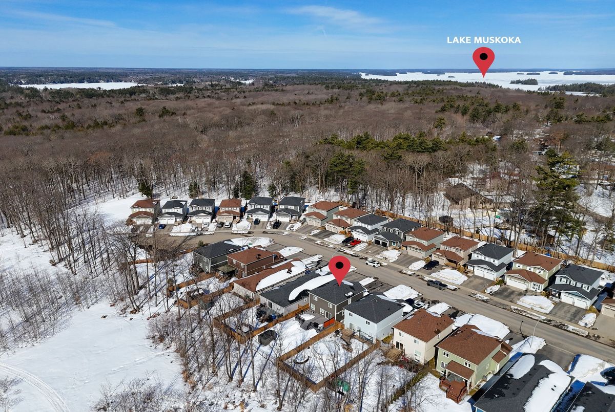 Welcome home to this beautiful four-bedroom, three-bathroom two-story home, thoughtfully designed for family living. Nestled in a friendly neighborhood where kids, ride bikes on the street and neighbors stop to chat, this home offers both comfort and convenience. Step inside to a bright and airy open-concept main floor, where the spacious living room, warmed by a cozy natural gas fireplace flows effortlessly into the dining area and modern kitchen. The white shaker-style cabinets, the gleaming hardwood flooring and a sprawling island with a breakfast bar create the perfect space for everything from busy mornings to relaxed weekend gatherings. A main-floor laundry room and inside access to the double attached garage add everyday ease. Upstairs, the primary bedroom offers plenty of closet space and a private ensuite, while three additional bedrooms provide room for family, guests, or a home office. The full unfinished basement comes with a rough-in for a fourth bathroom, giving you endless possibilities to expand and customize. Outside, the fully fenced backyard is ready for play, gardening, or simply unwinding. A composite deck off the kitchen is ideal for summers BBQs and evening drinks, while the garden shed keeps everything organized. And with Muskoka Wharf and Steamship Bay just minutes away, you will love having easy access to waterfront strolls, local shops, and the natural beauty of Lake Muskoka. This is a place to grow, gather, and make lasting memories
