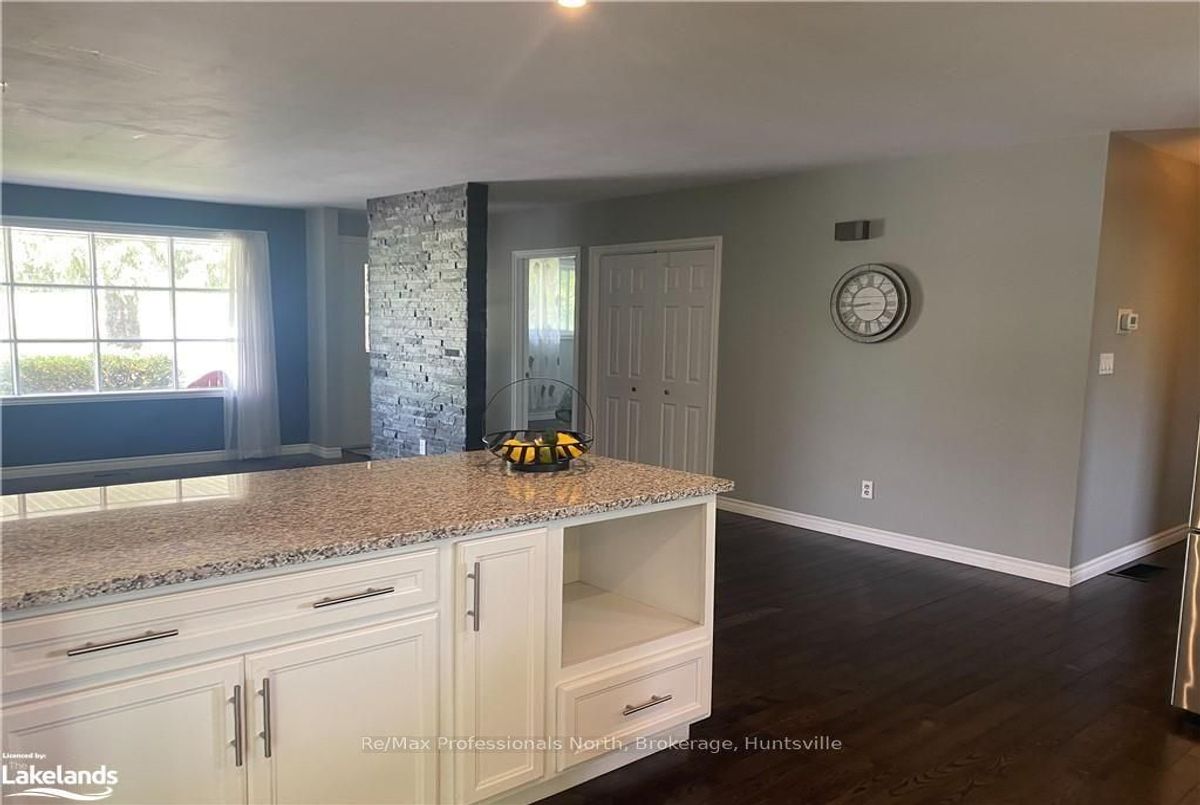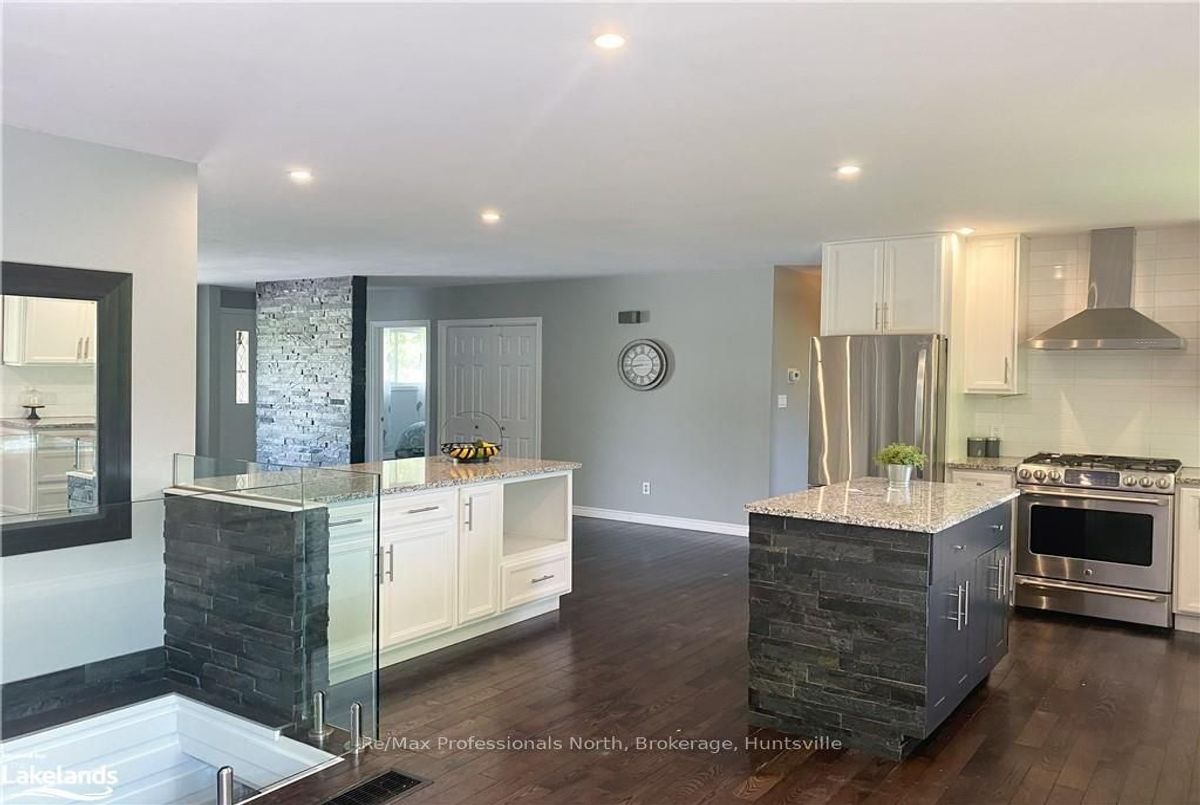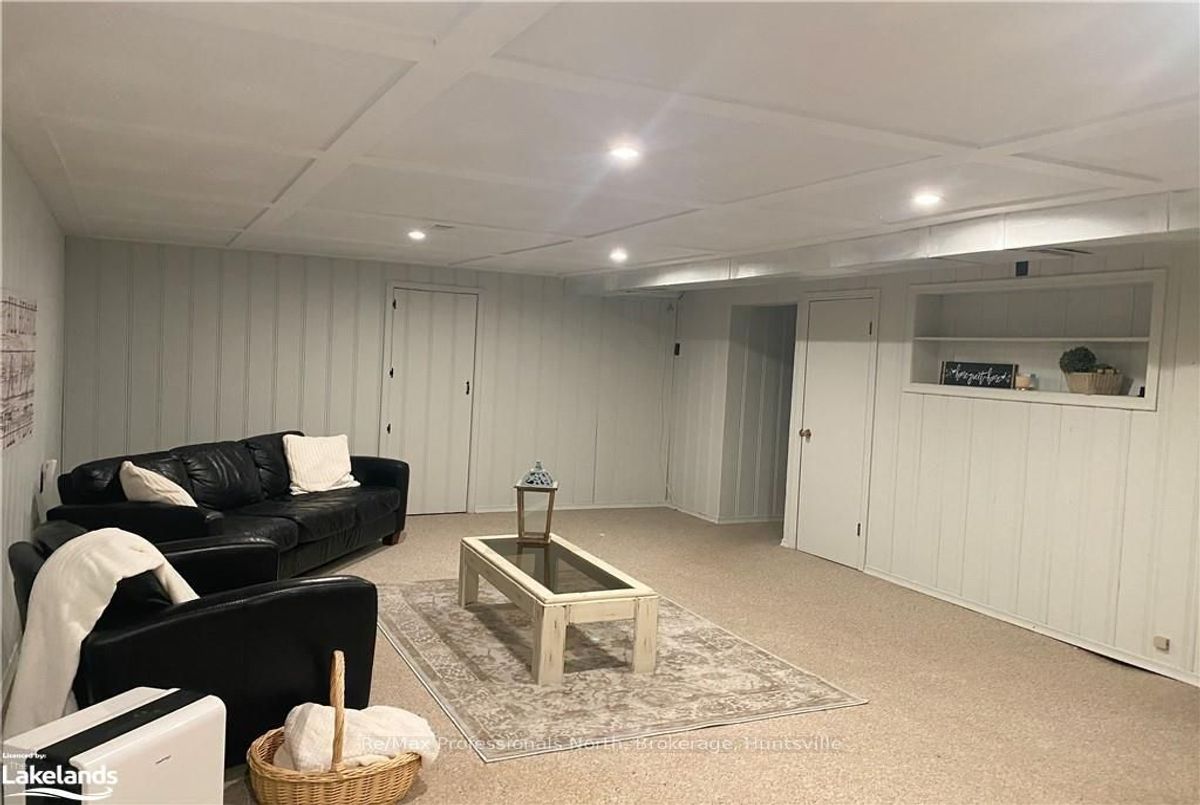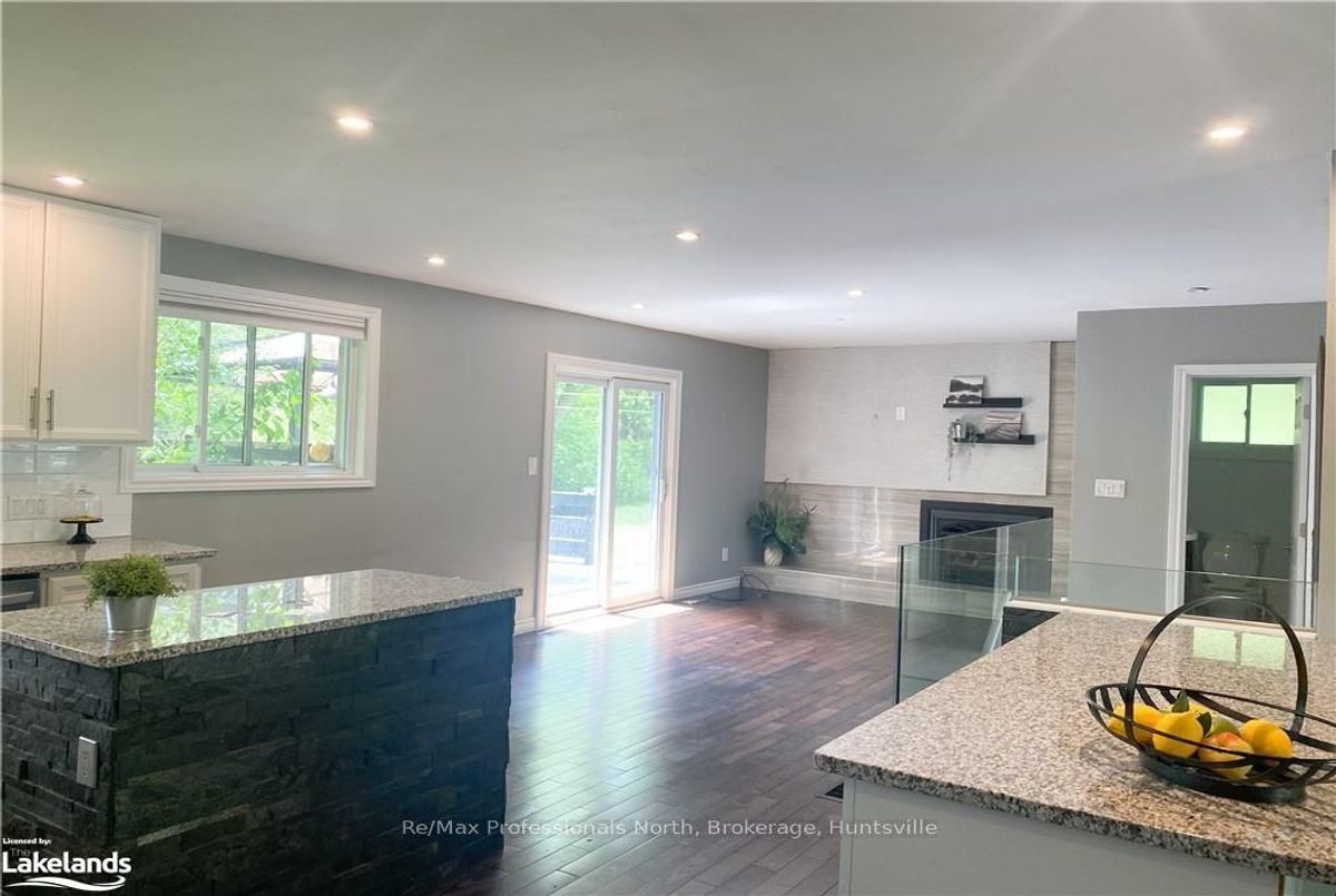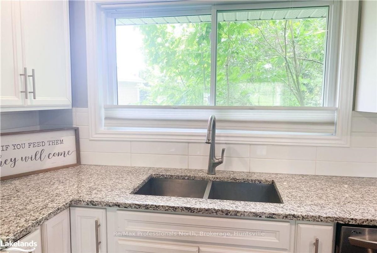 Corner lot bungalow in one of the most established subdivisions right in Downtown Huntsville. Walk to shopping, theatre and restaurants. Bright sunny kitchen and living room with a gas fireplace. Seated island plus additional prep island. Main floor bath with tiled shower plus soaker tub. Oversized master bedroom with double closets. Pot lights throughout. Downstairs offers more bedrooms, large family room and lots of storage and utility space. Double garage plus attached carport. Subdivision offers tennis courts and playground just down the road. Perfect area for families or retirees.