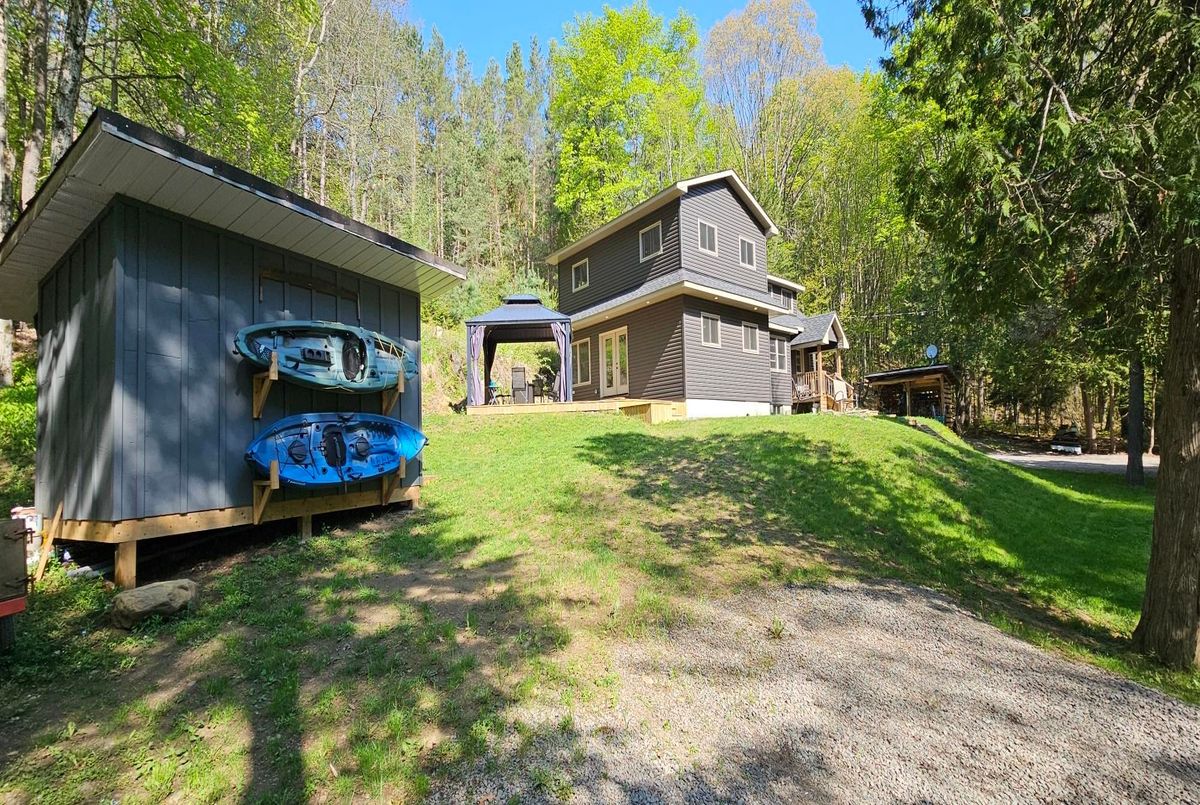 IMMEDIATE OCCUPANCY! Move on in to this absolutely beautiful 3 Bedroom / 2.5 Bathroom home in the country just a short drive to the quaint village of Dwight, and just over 20 minutes to all of the amenities of Downtown Huntsville. This charming home underwent a major addition and renovation in 2019/2020, and is ready for a new family to move in and enjoy. Inside you will discover a large living room with wood burning fireplace, main floor laundry, 2pce powder room, a beautiful kitchen/dining area complete with huge island, stone accent wall, and direct access to the amazing deck where you will spend many quiet evenings sipping a cold beverage or entertaining friends and family. Stroll upstairs to discover a 3 piece bathroom and 3 spacious bedrooms, including the primary with a 4 piece ensuite bath. The list of improvements is extensive as almost every square inch was updated or added during the renovation, and includes such items as windows, flooring, kitchen, furnace, electrical panel, most wiring, hot water tank, fireplace and more. Ronville Road is a quiet "dead-end" road with access to the Ronville Hiking Trail just down from the home. The closest and BEST beach is a short 10 minute drive away in Dwight. Come take a look at this gem in one of the nicest corners of Muskoka.