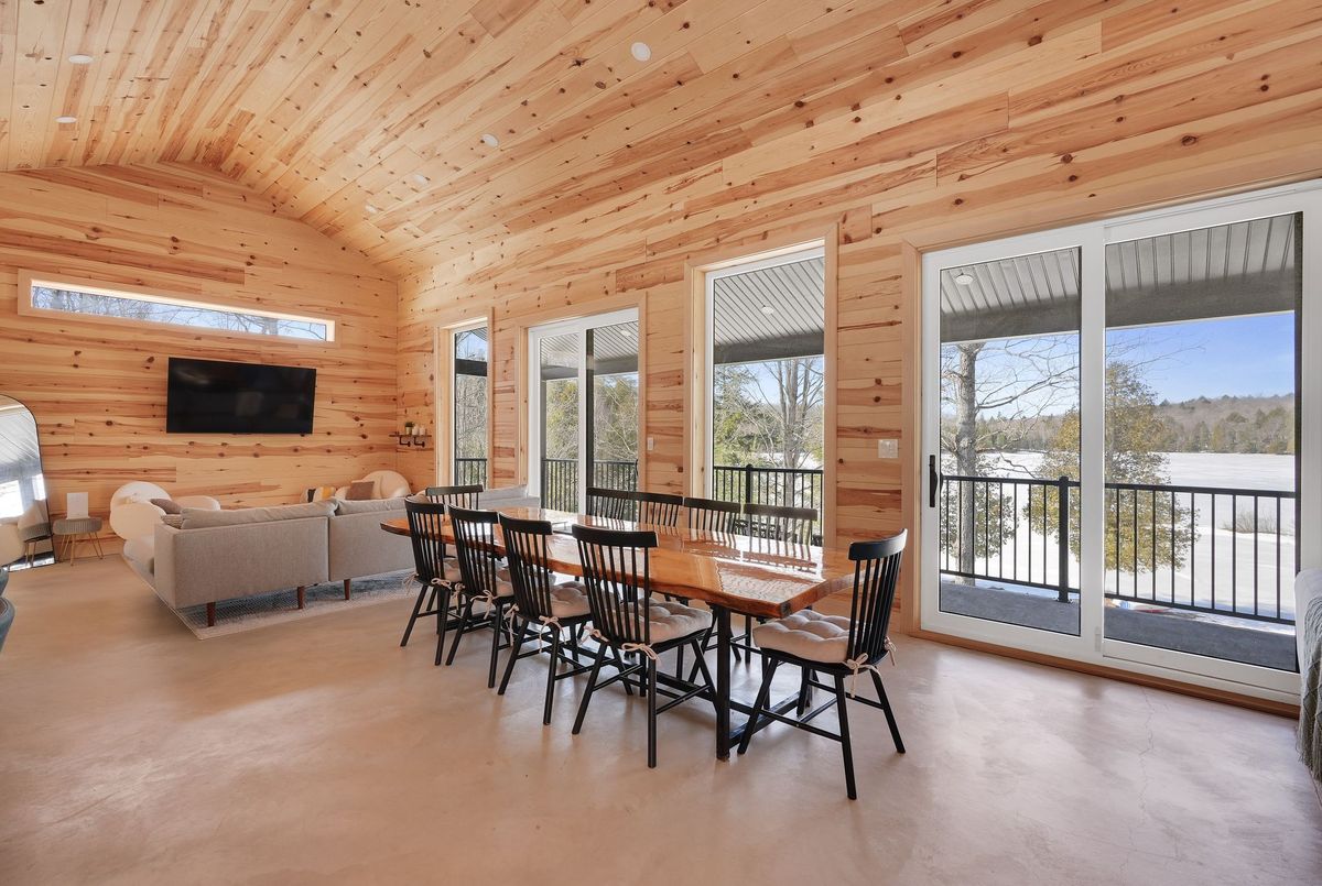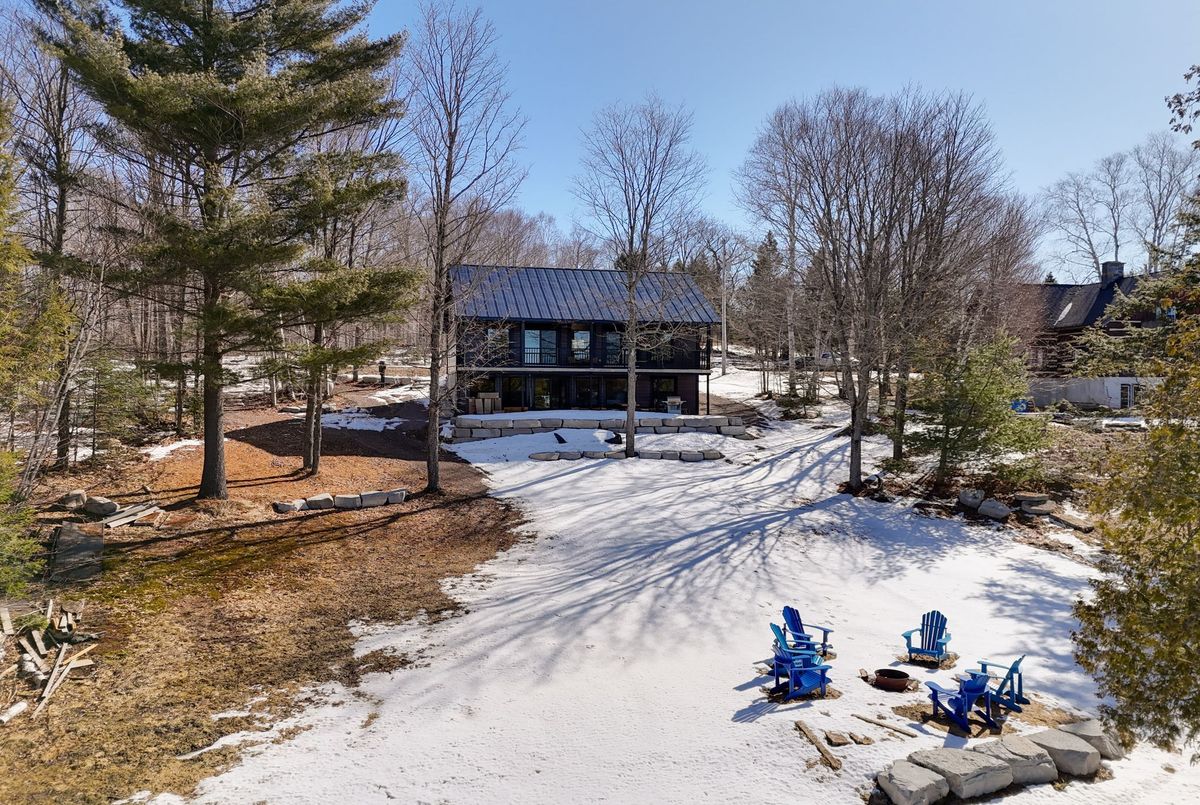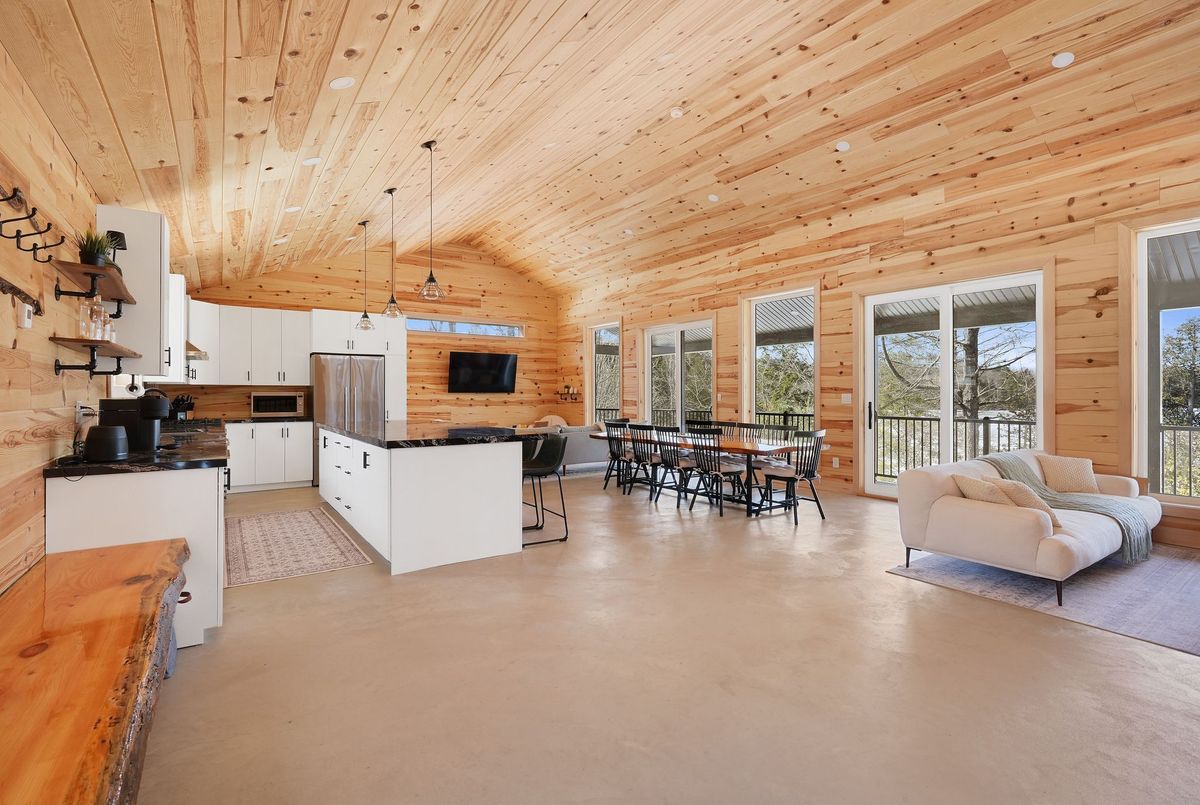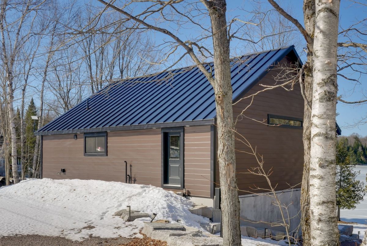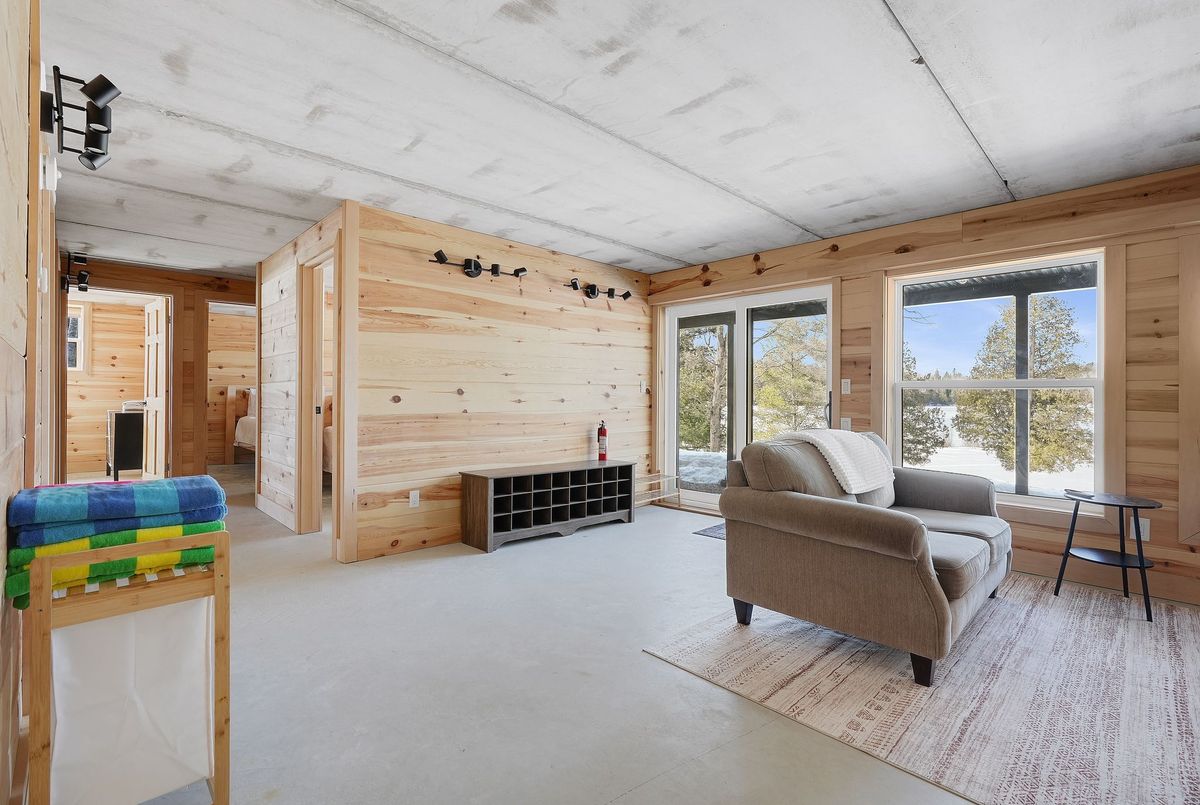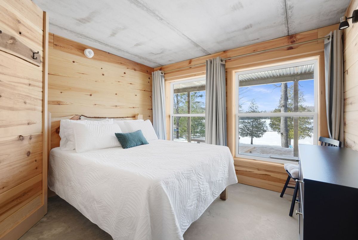 Tucked into a gentle lakeside lot where calm waters sparkle under golden sunset skies, this freshly built year-round cottage invites you to experience the best of northern life. Crafted with upgraded construction materials and quality finishes throughout, every detail of this property was designed for comfort, durability, and effortless style. Step inside and you are immediately greeted by soaring cathedral ceilings and pine-lined walls that radiate warmth and rustic charm. The open concept living area feels like a breath of fresh forest air. At the heart of the cottage, a gleaming granite-clad kitchen takes center stage. With a sprawling island that seats eight, it's made for everything from pancake breakfasts to evening cocktails with friends. Whether you are settling in for a movie night or curling up with an enjoyable book beside the glow of the electric fireplace, this cottage offers two separate lounge areas to suit your mood. Natural light floods in through expansive glass across the entire front of the cottage, bringing the outdoors in and putting those west-facing views on full display. And when the weather's less than perfect - or the summer sun feels a little too warm - you can still enjoy the lakeside breezes under the comfort of a covered porch just steps from the water. Downstairs, the full walkout basement extends your living space with a second luxurious bathroom and a flexible layout. With three+ bedrooms, plus a dedicated bunkroom waiting to be filled with the laugher of kids or visiting guests, there's room for everyone to make memories here. Heated concrete floors keep things cozy no matter the season, while smart, energy-efficient choices throughout reflect the thoughtful craftmanship of this cottage. From toddlers to grandparents, everyone will appreciate the incredibly gentle lot. And with reliable year-round road access, getting here is easy. This is more than a cottage. It's your lakeside retreat, and your front-row seat to nature's show.