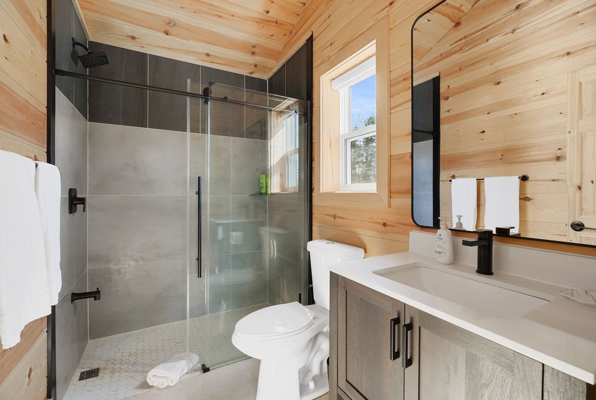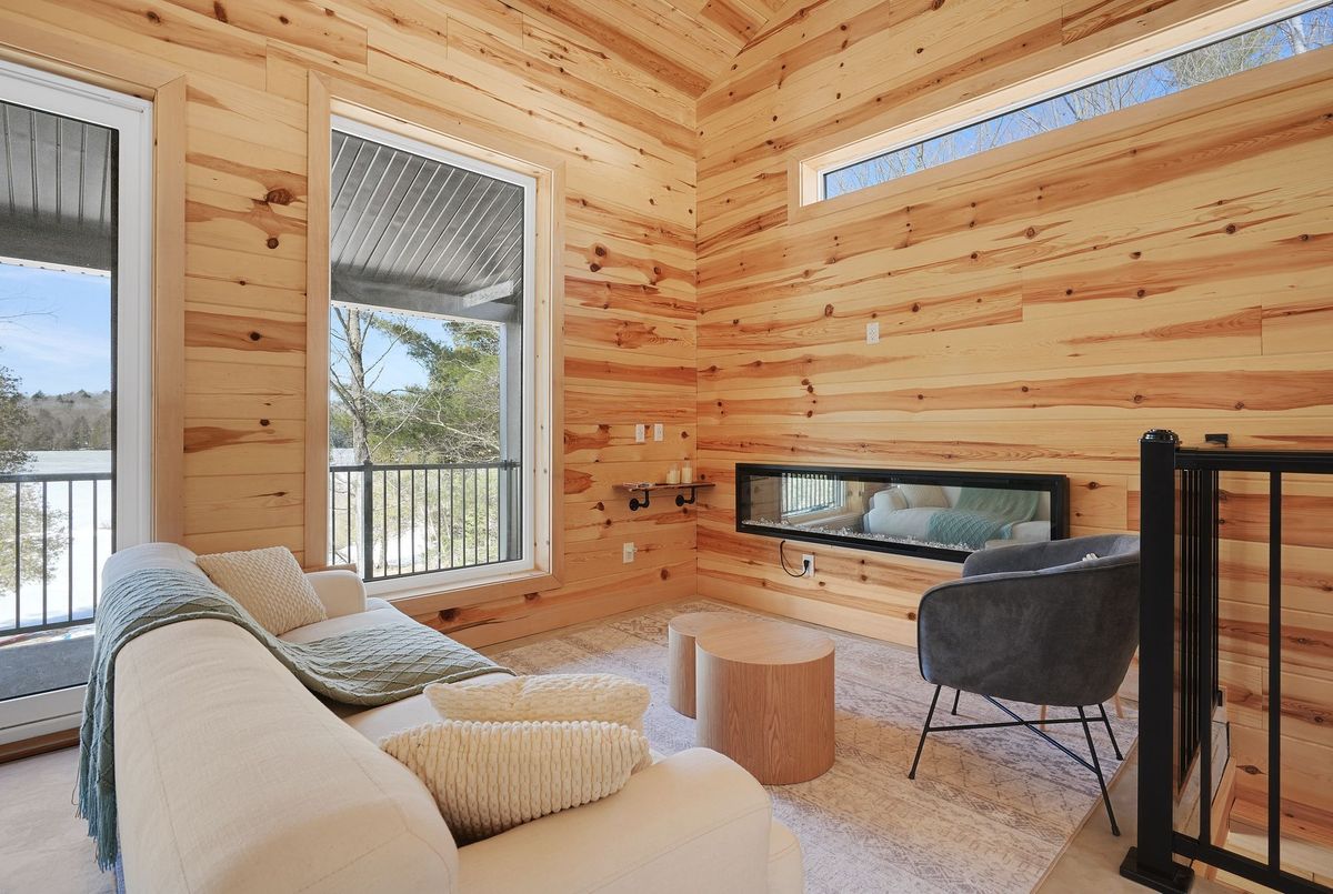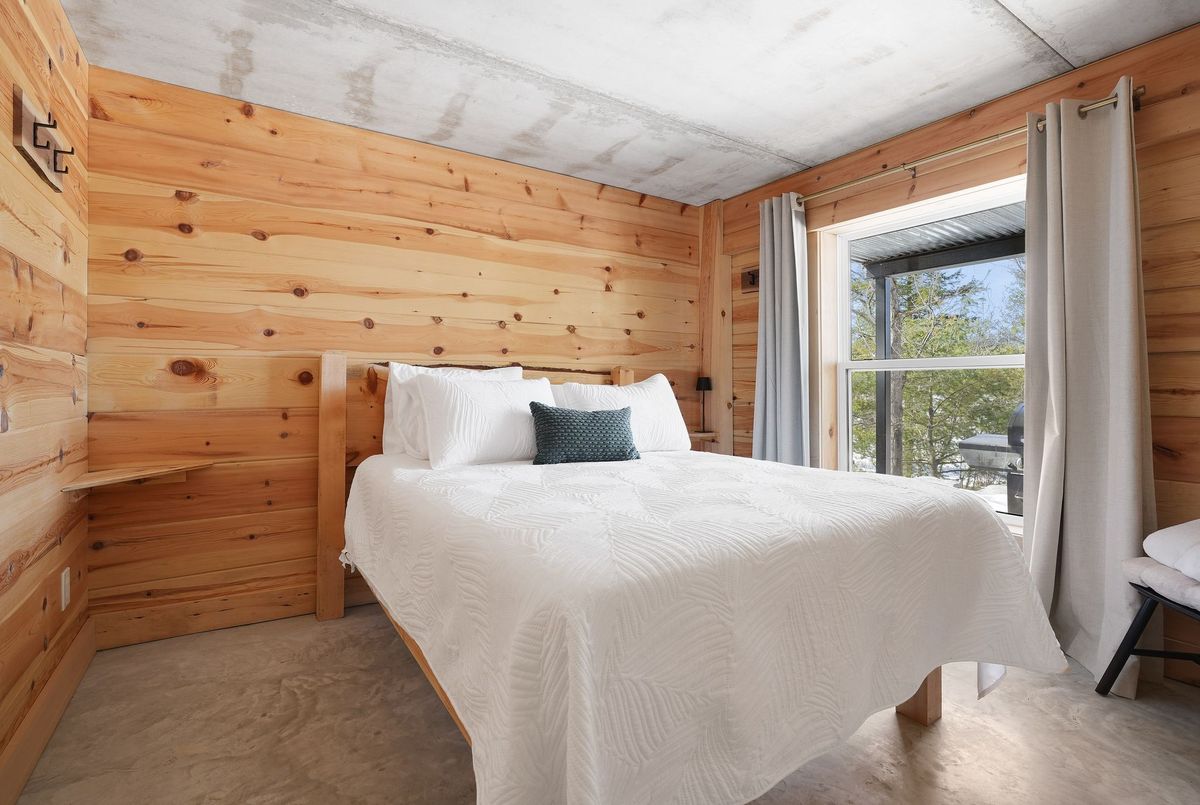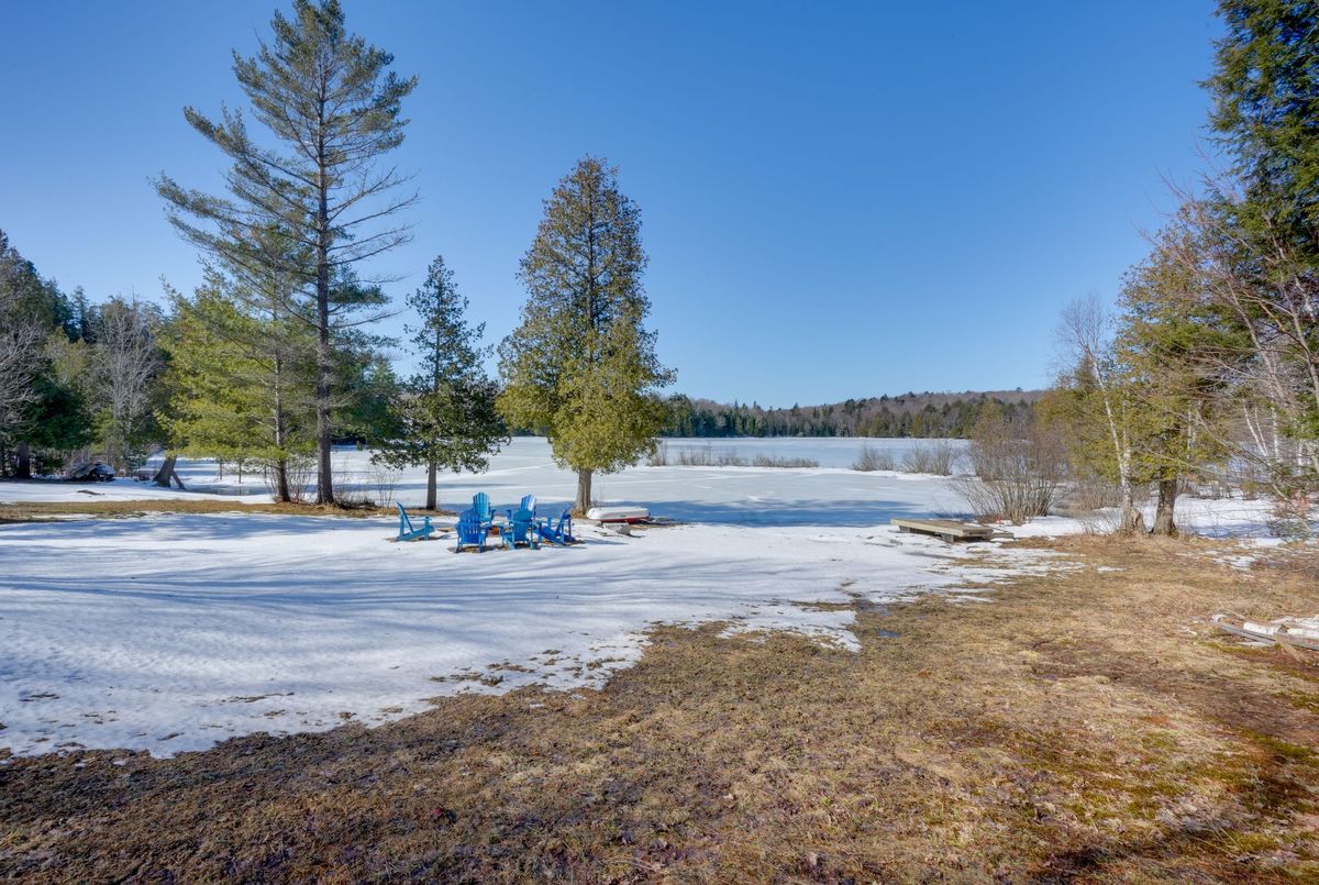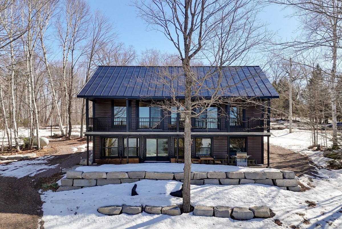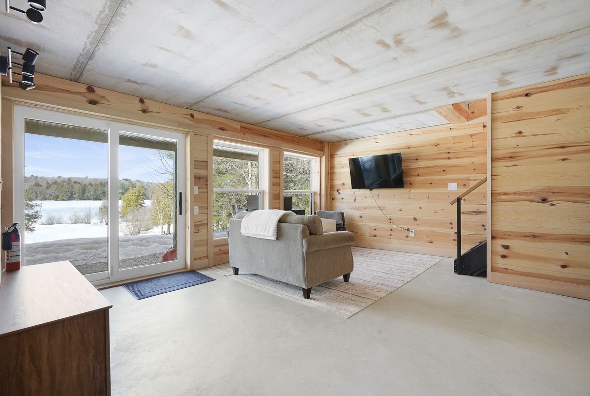 Tucked into a gentle lakeside lot where calm waters sparkle under golden sunset skies, this freshly built year-round cottage invites you to experience the best of northern life. Crafted with upgraded construction materials and quality finishes throughout, every detail of this property was designed for comfort, durability, and effortless style. Step inside and you are immediately greeted by soaring cathedral ceilings and pine-lined walls that radiate warmth and rustic charm. The open concept living area feels like a breath of fresh forest air. At the heart of the cottage, a gleaming granite-clad kitchen takes center stage. With a sprawling island that seats eight, it's made for everything from pancake breakfasts to evening cocktails with friends. Whether you are settling in for a movie night or curling up with an enjoyable book beside the glow of the electric fireplace, this cottage offers two separate lounge areas to suit your mood. Natural light floods in through expansive glass across the entire front of the cottage, bringing the outdoors in and putting those west-facing views on full display. And when the weather's less than perfect - or the summer sun feels a little too warm - you can still enjoy the lakeside breezes under the comfort of a covered porch just steps from the water. Downstairs, the full walkout basement extends your living space with a second luxurious bathroom and a flexible layout. With three+ bedrooms, plus a dedicated bunkroom waiting to be filled with the laugher of kids or visiting guests, there's room for everyone to make memories here. Heated concrete floors keep things cozy no matter the season, while smart, energy-efficient choices throughout reflect the thoughtful craftmanship of this cottage. From toddlers to grandparents, everyone will appreciate the incredibly gentle lot. And with reliable year-round road access, getting here is easy. This is more than a cottage. It's your lakeside retreat, and your front-row seat to nature's show.