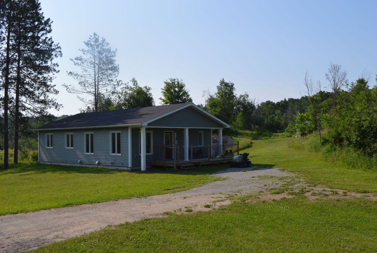 Spacious and well laid out Royal home built in 2021 w/approx. 1200 sq. ft.(exterior measurement) and on Davis Lake Road. This 3 bedroom home is perfect starter or retirement home. The 1.56 acre parcel is located in the middle of farm country and surrounded by meadows. Approx. 10 minutes from Minden and on a bus route. This newer home features 36 inch wide doors, kitchen w/island and great cupboard space, laundry room off of the kithen w/pocket door, central air, propane heat, 3 bedrooms , 3 pce. bath and powder room w/pocket door. Large storage space located in the crawl area w/concrete floor. The master bedroom has a jack and jill access to 3 pce. bath. Year round road. Cell service. Drilled well. Very affordable home to heat. Close to Davis Lake Boat Launch.
