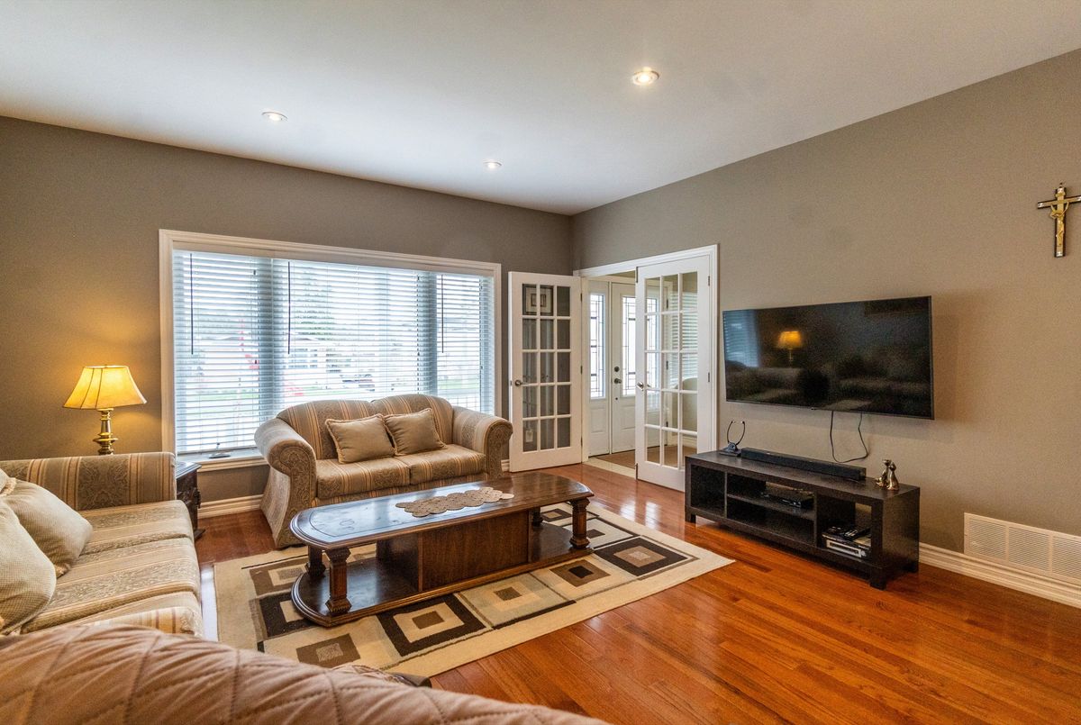 Beautifully crafted 3-bedroom bungalow, EXTREMELY WELL BUILT, IN-LAW CAPABILITY AND WALKING DISTANCE TO TOWN! This meticulously maintained home offers timeless design and high-end finishes throughout. Step inside to discover an inviting open-concept layout featuring gleaming porcelain tile, hardwood floors, and a custom-designed kitchen that will impress even the most discerning chef. With quality craftsmanship in every detail, this home is built to last. Downstairs, enjoy high ceilings and a spacious, open recreation area perfect to design for a home theatre, gym, games room, or whatever suits your lifestyle. The second kitchen and cold room add incredible flexibility for entertaining or multi-generational living. Outside, the large yard offers room to relax, garden, or play, while the covered front porch invites you to unwind with a coffee or connect with neighbours. A double car garage provides ample space for parking and storage. Don't miss this opportunity to own a high-quality home!