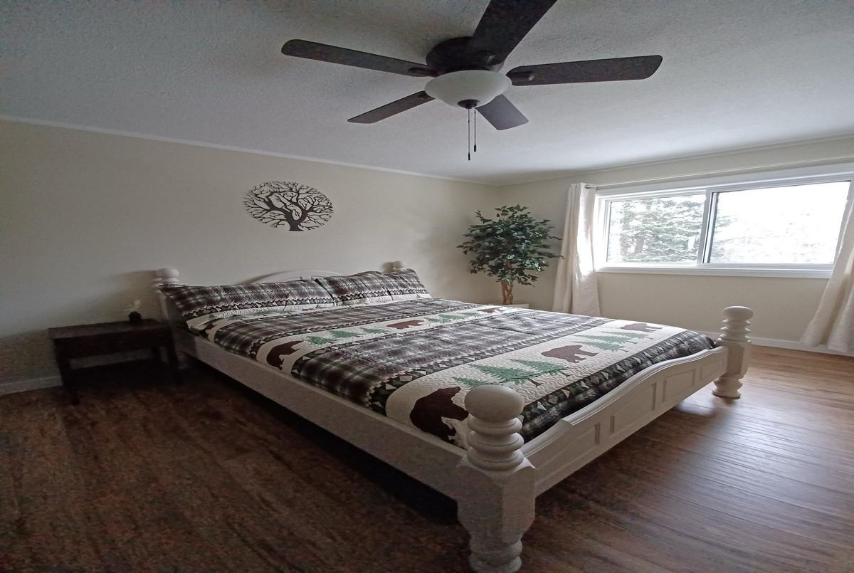 Discover a unique opportunity to own a spacious home offering privacy and a two bedroom inlaw suite nestled on 4 private acres. This property offers exceptional value with a generous layout that includes an oversized attached two-car garage, accessible through a basement-level door leading into a workshop. A large open breezeway connects the main house to the separate main-floor in-law suite, offering flexibility for multi-generational living or potential rental income. The house has been extensively renovated: new kitchen and appliances (2022), bathroom, deck and stairs at the front of the house, windows and doors (2022), roof shingles (2015) and the bedrooms have been drywalled & painted. A gorgeous wood accent wall installed in the comfortable living room. The Lower Level, has a large storage / utility room. The in-law suite has been refreshed with a new kitchen and bathroom vanity, flooring and toilet plus trim and paint throughout. It has a large 3 piece washroom, it's own hot water tank, large kitchen and comfortable living room. This home is now stunning with details still being attended to. The exterior has also received a re-fresh with extensive granite steps and wall, creating a beautiful flower garden having been added to enhance the curb-appeal. The backyard is peaceful and tranquil with beautiful lighting for a cozy campfire at night. with the large property, you could add a substantial vegetable garden. For comfort and convenience, an 18 KW Generac with auto-transfer switch was installed. Located just down the road from Buck Lake Beach, you'll enjoy the perks of nearby waterfront living without the higher taxes. Surrounded by nature, the property boasts beautiful front gardens and a cozy firepit area at the back perfect for peaceful evenings or entertaining guests. With no close neighbours, its an ideal setting for those seeking privacy and room to grow. Don't miss this beauty - - - book a showing today!