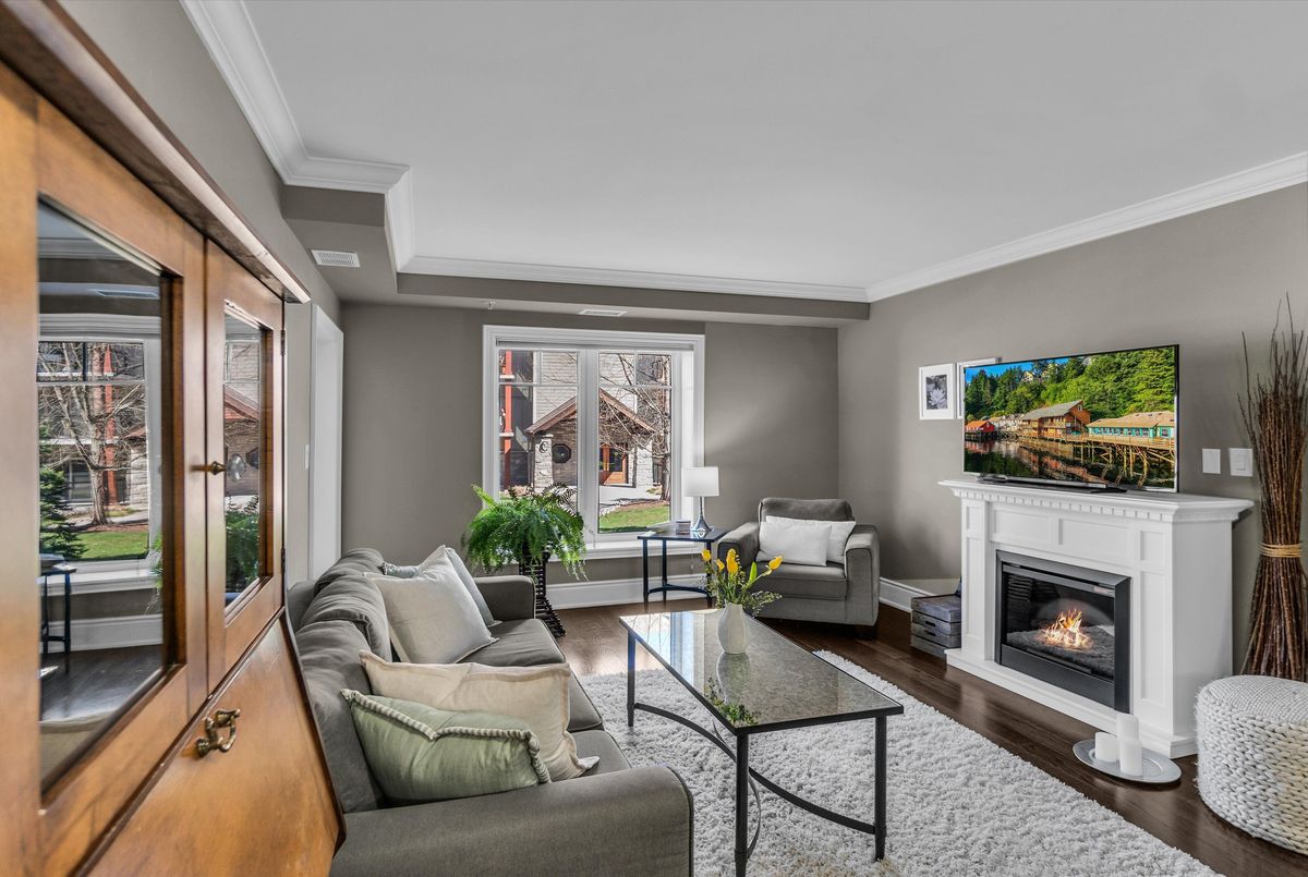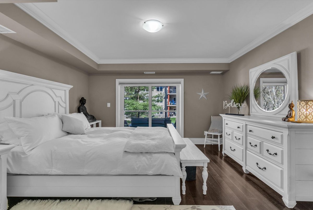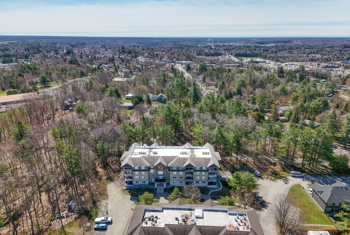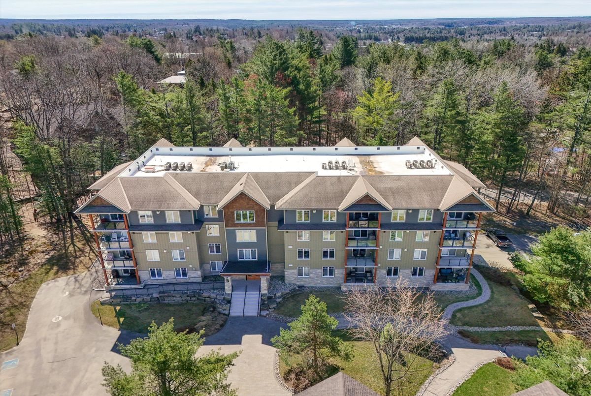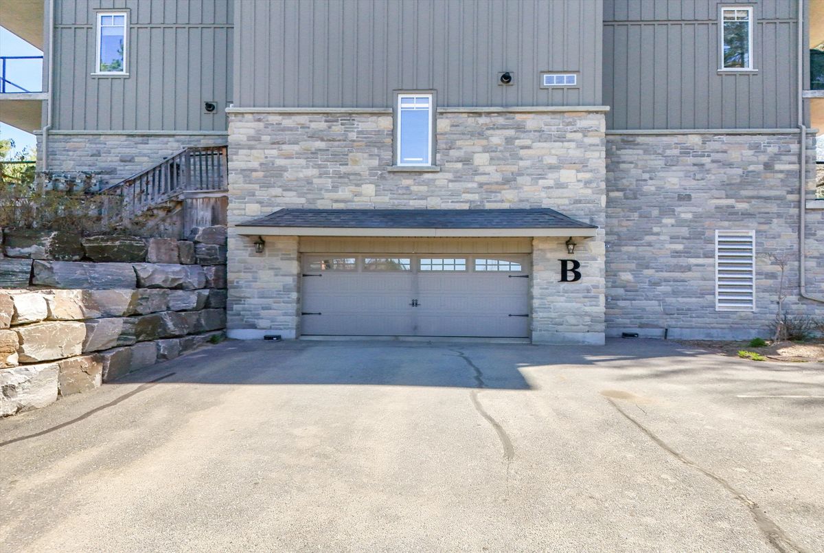 Discover the allure of garden-level living at Granite Springs Luxury Condos. This rare opportunity to own an exceptional corner unit with spectacular sunset views, presents a unique opportunity to embrace country tranquility with modern sophistication. Step inside and be greeted by a grand entrance that flows effortlessly into a spacious, open concept living, dining, and kitchen area. Gleaming hardwood floors radiate warmth, inviting you to unwind in your new sanctuary. The thoughtfully designed kitchen, complete with stainless steel appliances including a built-in dishwasher, microwave gives you an incredible space to create your next mouthwatering delicacies. If entertaining is important to you; you will enjoy the convenience of your new kitchen buffet top. The expansive open concept living and dining space, bathed in natural light from an oversized bay window, provides the perfect backdrop for creating cherished memories. Extend your living outdoors onto your private covered balcony. Just step outside and enjoy tranquil garden views where a friendly community atmosphere awaits. Retreat to the spacious master bedroom, featuring a private 3-piece ensuite and direct access to your garden balcony. A versatile second bedroom offers flexibility as a home office or welcoming guest suite. Need a little pampering? Make sure to indulge a little relaxation in your jacuzzi tub located in your second bathroom conveniently located just outside the second bedroom. This exceptional 2-bedroom, 2-bathroom residence boasts access to impressive amenities, including a grand clubhouse (fitness room, library, party room and kitchen). Convenience is further enhanced by your designated underground heated parking space and storage locker. Located just steps from downtown Bracebridge, enjoy the ease of strolling to charming boutiques, diverse restaurants, grocery stores, and a wealth of other social amenities.