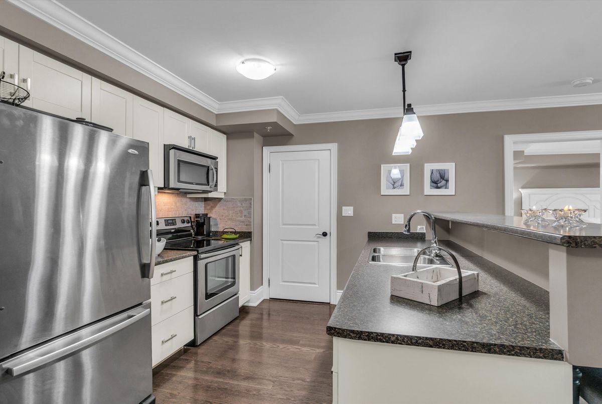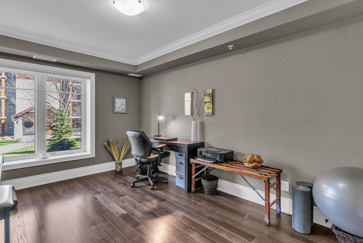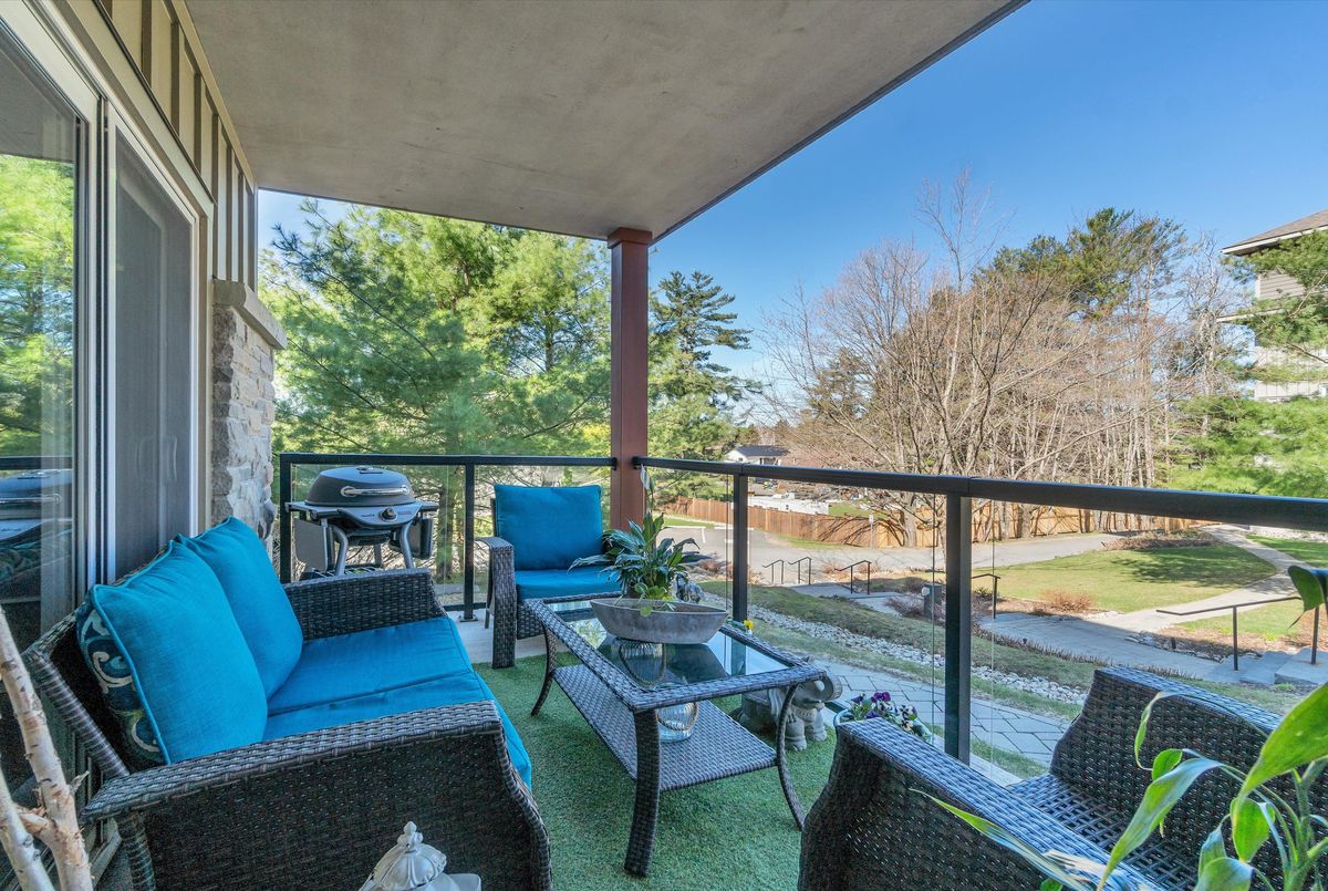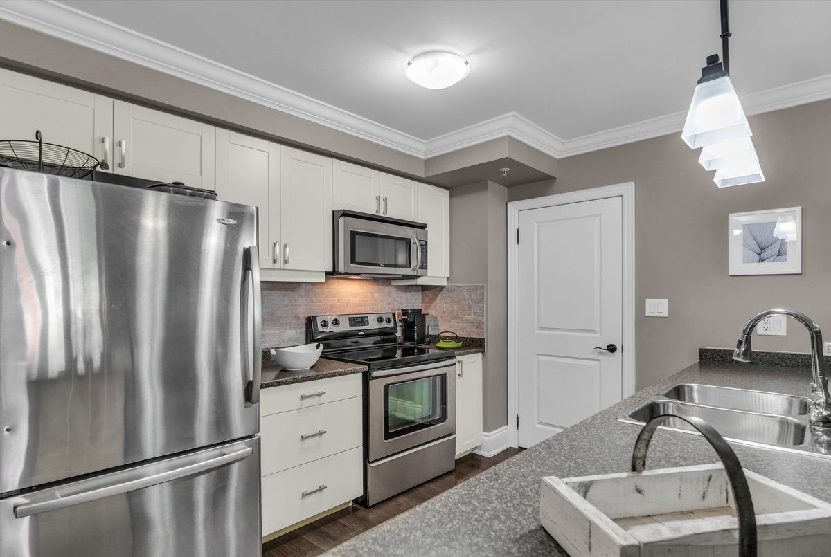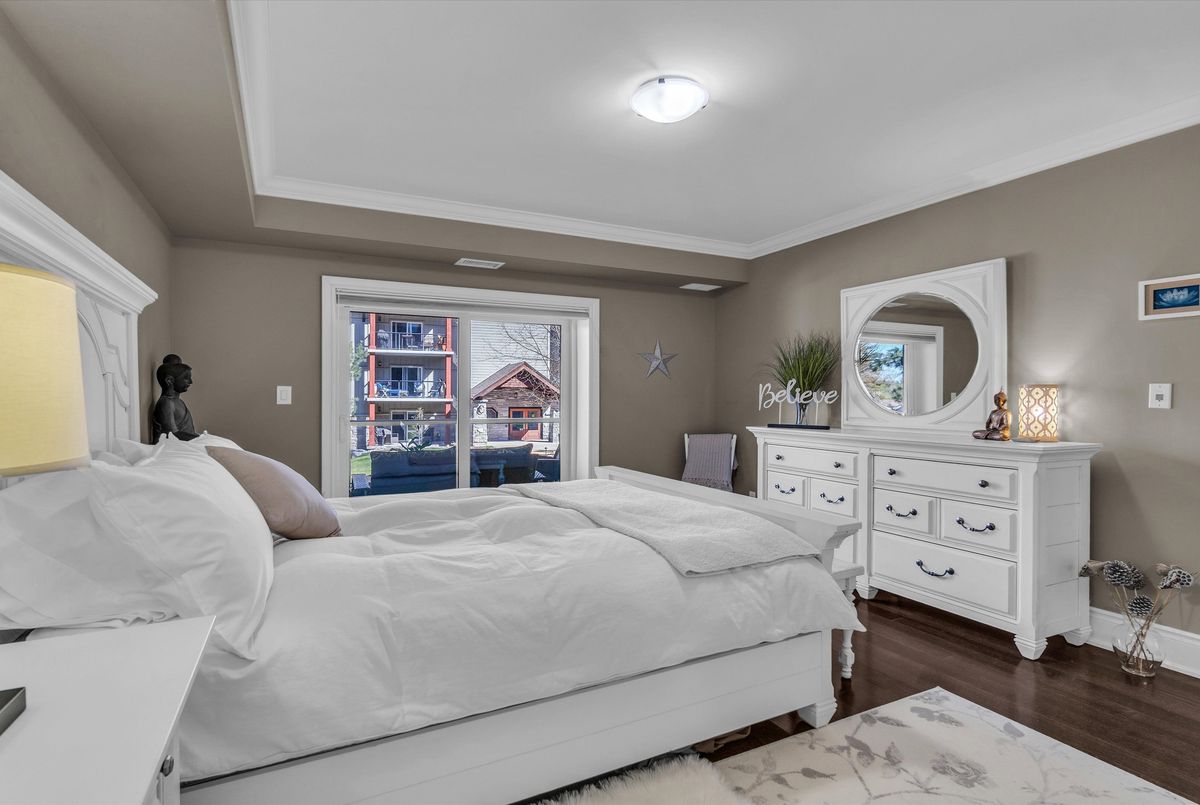 Discover the allure of garden-level living at Granite Springs Luxury Condos. This rare opportunity to own an exceptional corner unit with spectacular sunset views, presents a unique opportunity to embrace country tranquility with modern sophistication. Step inside and be greeted by a grand entrance that flows effortlessly into a spacious, open concept living, dining, and kitchen area. Gleaming hardwood floors radiate warmth, inviting you to unwind in your new sanctuary. The thoughtfully designed kitchen, complete with stainless steel appliances including a built-in dishwasher, microwave gives you an incredible space to create your next mouthwatering delicacies. If entertaining is important to you; you will enjoy the convenience of your new kitchen buffet top. The expansive open concept living and dining space, bathed in natural light from an oversized bay window, provides the perfect backdrop for creating cherished memories. Extend your living outdoors onto your private covered balcony. Just step outside and enjoy tranquil garden views where a friendly community atmosphere awaits. Retreat to the spacious master bedroom, featuring a private 3-piece ensuite and direct access to your garden balcony. A versatile second bedroom offers flexibility as a home office or welcoming guest suite. Need a little pampering? Make sure to indulge a little relaxation in your jacuzzi tub located in your second bathroom conveniently located just outside the second bedroom. This exceptional 2-bedroom, 2-bathroom residence boasts access to impressive amenities, including a grand clubhouse (fitness room, library, party room and kitchen). Convenience is further enhanced by your designated underground heated parking space and storage locker. Located just steps from downtown Bracebridge, enjoy the ease of strolling to charming boutiques, diverse restaurants, grocery stores, and a wealth of other social amenities.