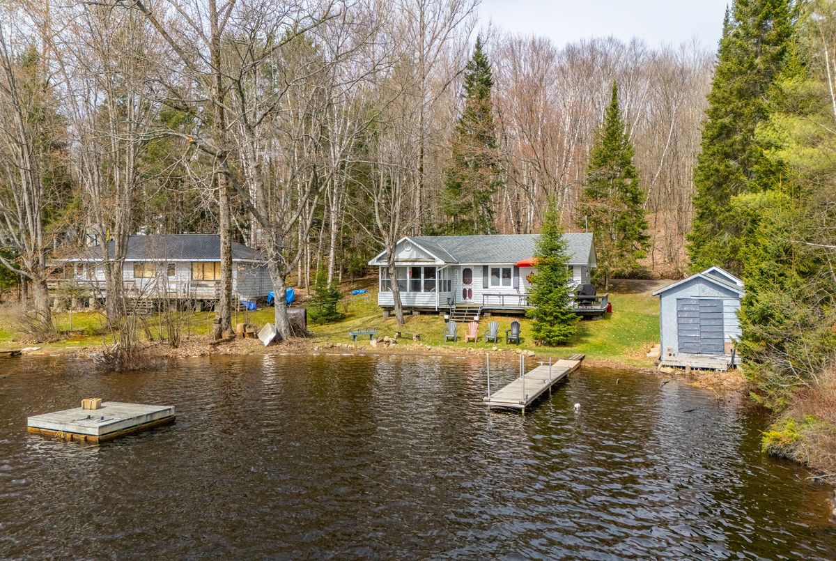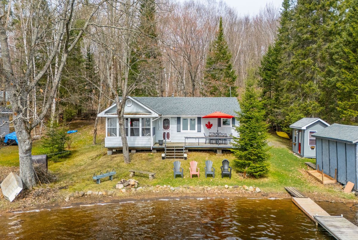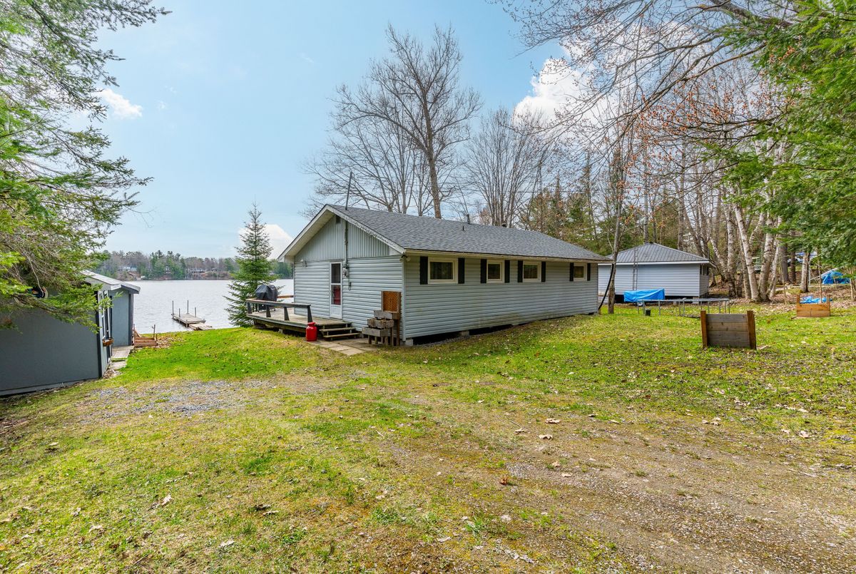 Nestled along the pristine shoreline of beautiful Kushog Lake, this delightful 3-bedroom cottage at 1175 Twin Rocks Lane offers the lakeside retreat you've been dreaming of. Step inside to discover a bright, open-concept living area where lake views create a seamless connection between indoor comfort and outdoor splendor. The layout is perfect for gathering family and friends, while a cozy sunroom provides the ideal spot for morning coffee or evening relaxation. Three generously sized bedrooms ensure everyone has their own space to unwind, complemented by a fully equipped 4-piece bathroom. For additional guests, the charming bunkie features two sets of bunk beds perfect for children's adventures or weekend visitors. Outdoor living truly shines with a spectacular wrap-around deck overlooking the tranquil waters, creating an ideal space for al fresco dining and entertaining. The property's sandy beach shoreline provides gradual entry to deeper water offering safe splashing for little ones and excellent swimming and water activities for all. The dock accommodates an 18' boat with ease and features a perfect deep-water end for diving into the refreshing lake waters. Recent upgrades include newer windows and roof on the main cottage, boathouse, and bunkie ensuring this property is not just beautiful but built to last. Nature abounds in this peaceful setting, where you'll enjoy regular visits from local wildlife while maintaining friendly connections with wonderful neighbors. Your lakeside dream home combines rustic charm with modern convenience, creating memories that will last generations. Make this slice of Kushog Lake paradise yours today!