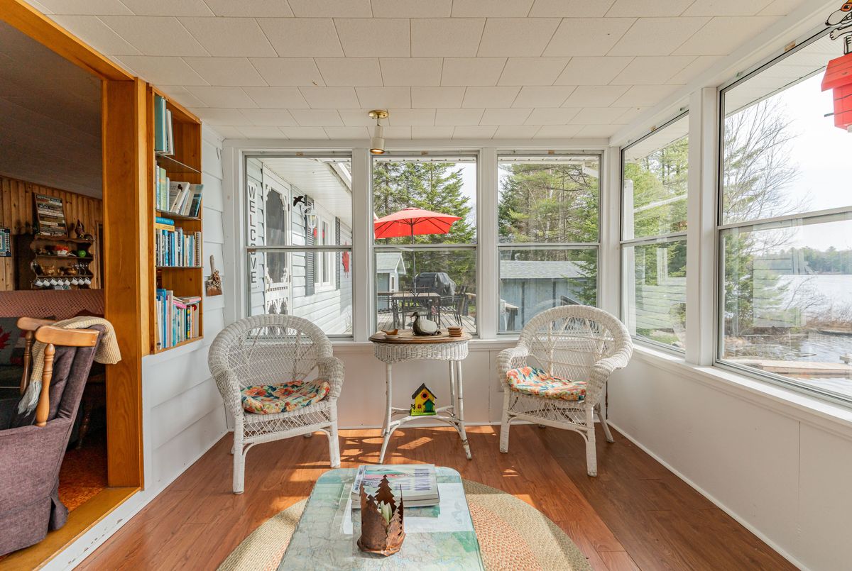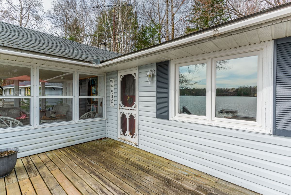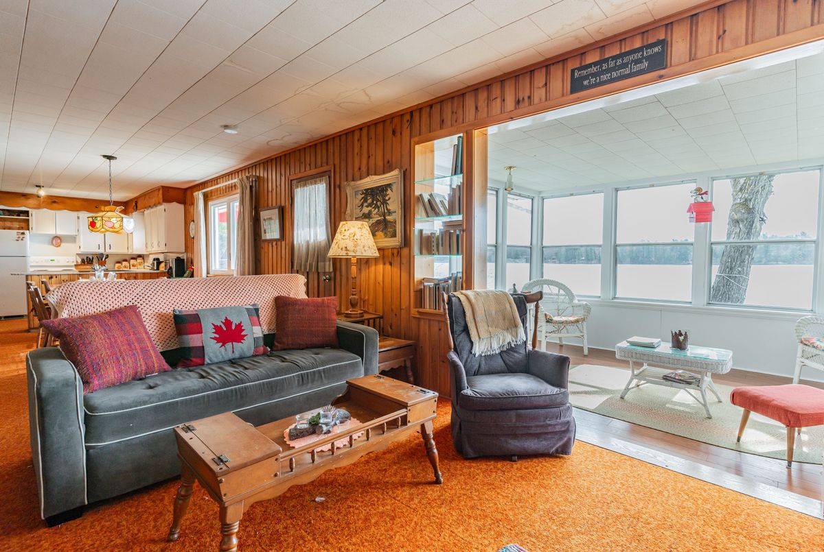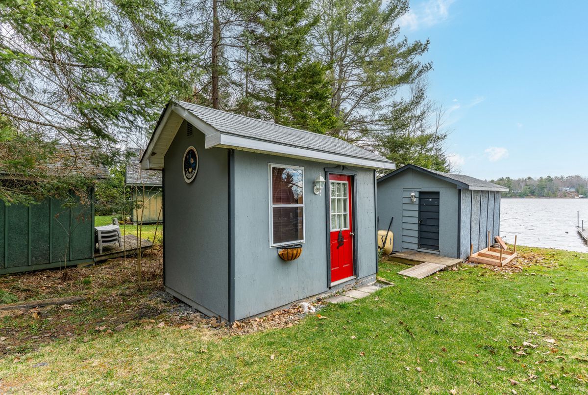 Nestled along the pristine shoreline of beautiful Kushog Lake, this delightful 3-bedroom cottage at 1175 Twin Rocks Lane offers the lakeside retreat you've been dreaming of. Step inside to discover a bright, open-concept living area where lake views create a seamless connection between indoor comfort and outdoor splendor. The layout is perfect for gathering family and friends, while a cozy sunroom provides the ideal spot for morning coffee or evening relaxation. Three generously sized bedrooms ensure everyone has their own space to unwind, complemented by a fully equipped 4-piece bathroom. For additional guests, the charming bunkie features two sets of bunk beds perfect for children's adventures or weekend visitors. Outdoor living truly shines with a spectacular wrap-around deck overlooking the tranquil waters, creating an ideal space for al fresco dining and entertaining. The property's sandy beach shoreline provides gradual entry to deeper water offering safe splashing for little ones and excellent swimming and water activities for all. The dock accommodates an 18' boat with ease and features a perfect deep-water end for diving into the refreshing lake waters. Recent upgrades include newer windows and roof on the main cottage, boathouse, and bunkie ensuring this property is not just beautiful but built to last. Nature abounds in this peaceful setting, where you'll enjoy regular visits from local wildlife while maintaining friendly connections with wonderful neighbors. Your lakeside dream home combines rustic charm with modern convenience, creating memories that will last generations. Make this slice of Kushog Lake paradise yours today!