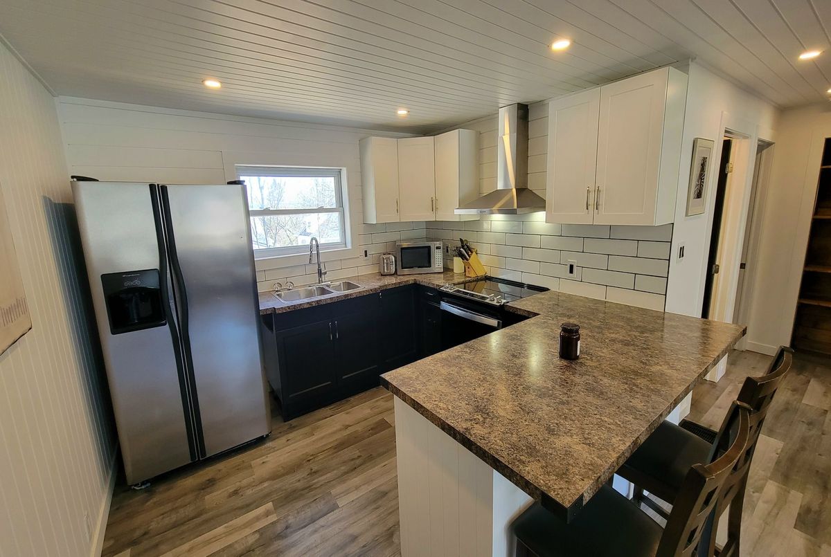 Great in-town property, walking distance to town and the high school. This home has had many upgrades including, but not limited to flooring, kitchen, bathroom, paint throughout, ceilings and the garage was converted to a large workshop. The quiet backyard features a deck and a shed for all garden tools. To top it all off, there is a metal roof. Rogers road is a quiet road and the lot is level. There is natural gas available on the road so a convertion to gas is very straight-forward. (Currently it is heated by an electric forced-air furnace ). This home is an ideal starter home for first time buyers or retirees.