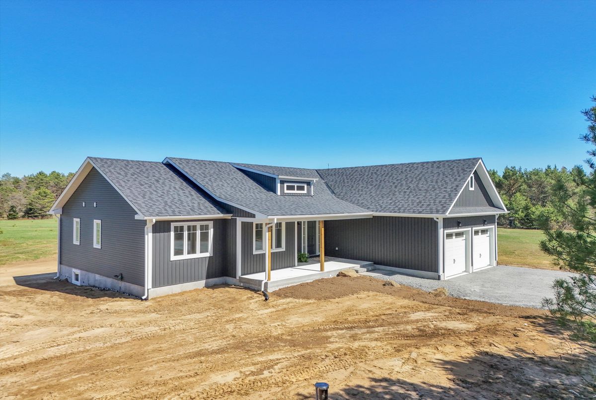 Welcome to your dream home, nestled on a beautiful 5-acre lot less than 10 minutes from Huntsville. This brand-new 3-bedroom, 2-bathroom custom-built home offers a perfect balance of modern comfort and serene country living. From the front porch, step inside to discover stunning coffered ceilings, quartz countertops, and a cozy gas fireplace that sets the tone for elegant yet inviting living. Large windows throughout the home flood every room with natural light while offering open views that draw you in and invite you to relax. Entering from the garage, the thoughtfully designed layout includes a convenient mud room with full-size washer and dryer. The bright and functional kitchen includes a side pantry area for all of your extras. The spacious primary suite offers a private retreat, while two additional bedrooms are perfect for family, guests, or a home office. Additional highlights include, oversized garage doors for extra clearance and storage, large cold room for year-round food storage, an unfinished basement with incredible potential, quality finishes and craftsmanship. Outside, the expansive property offers room to roam, garden, or simply enjoy nature. Whether you're sipping coffee on the porch or hosting a backyard bonfire, this is a property where memories are made. Location, space, and luxury all in one. Don't miss the chance to make this extraordinary new build your forever home. Book your private showing today!