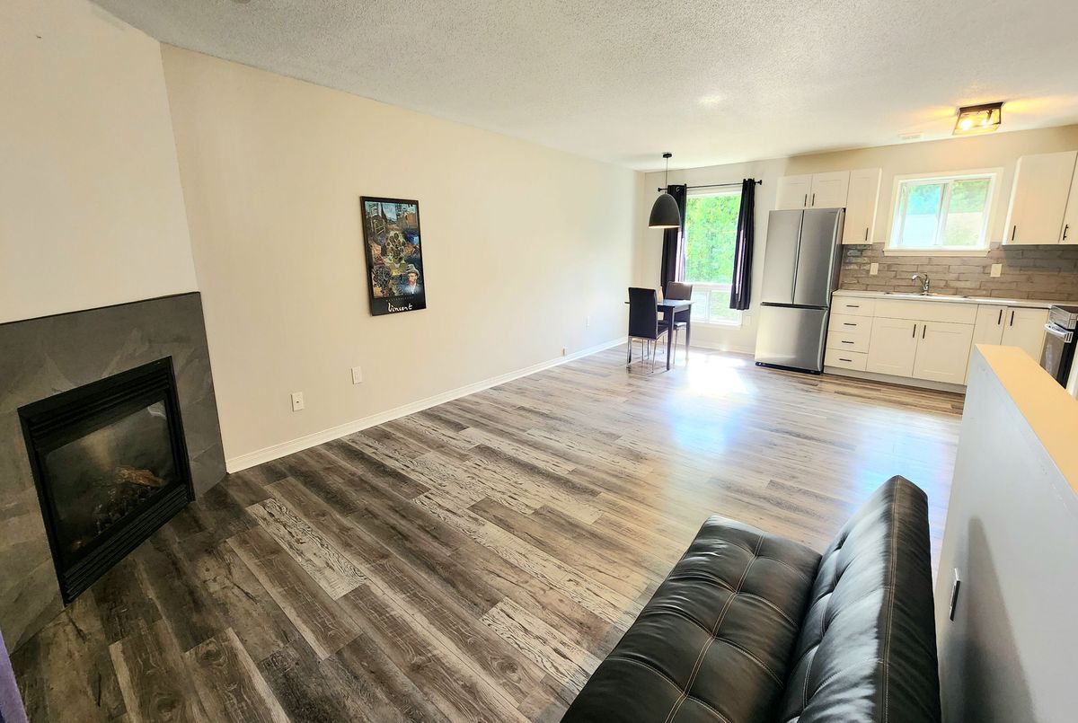 Looking for easy rental income with little maintenance, including no snow shoveling in Muskoka? Or an affordable home for your family? Then this is property is for you! An amazing opportunity to get into the market in Bracebridge with this affordable 2 bedroom raised attached bungalow on a quiet and peaceful private cul-de-sac! This upper-level home is unique in that you own the whole top floor with large windows making this home very bright and inviting. One of few homes in this development with a concrete poured foundation! Newer vinyl plank flooring throughout. Enjoy the natural gas fireplace in the spacious living room on cold days, open to the kitchen and dinning room. Down the hall you will find an updated 4-piece bathroom and two large bedrooms. The monthly condo fee includes exterior building maintenance and seasonal upkeep including grass cutting in the summer and snow removal in the winter. The driveway fits two vehicles with a visitor parking lot also available at the end of the private condo street. Public transit is easily accessible with a bus stop nearby. This home is located within walking distance to the Bracebridge Smart Centre for all your shopping needs, and easy access to Highway 11. Hiking trails, parks, schools, shopping and transit are all at your doorstep. Don't miss your opportunity to enjoy low maintenance living in the Heart of Muskoka!