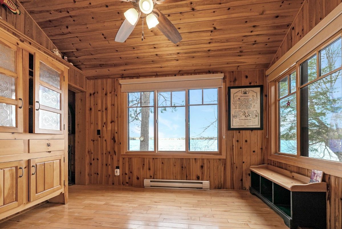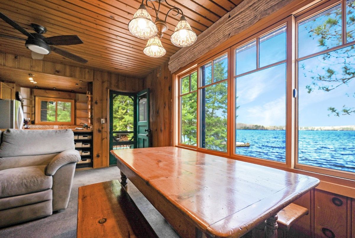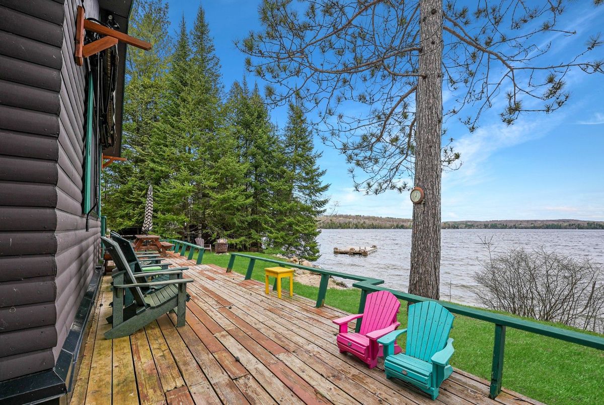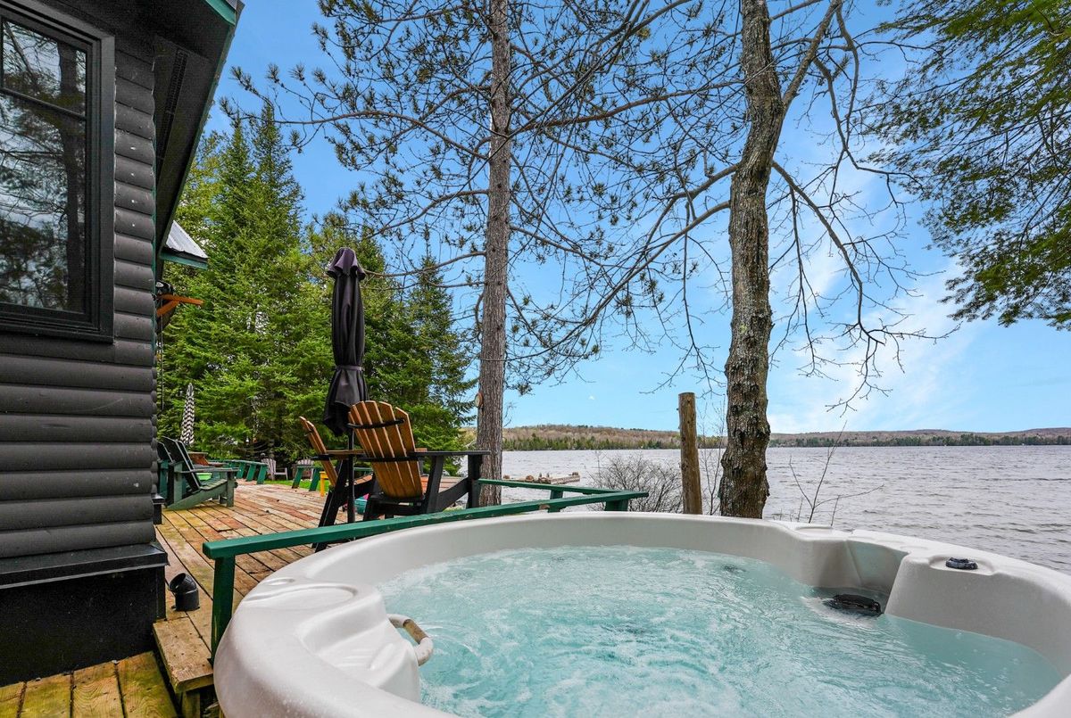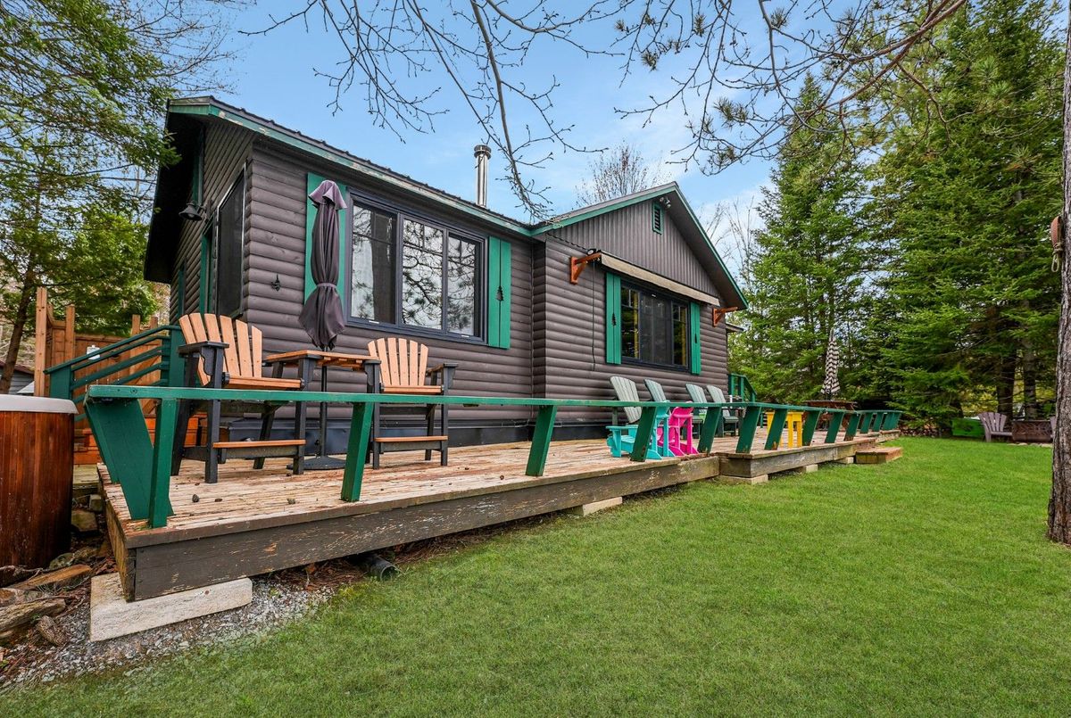Located on the shores of Horseshoe Lake, part of a scenic two-lake chain, this waterfront property offers the ideal combination of natural beauty, recreation, and convenience. Perfectly situated between Minden and Haliburton, and just minutes from Blairhampton Golf Course, this property is a fantastic four-season destination for families and outdoor enthusiasts alike. The flat lot features 112 feet of sandy shoreline and a northwest exposure that delivers stunning sunsets across the lake. Enjoy miles of boating and fantastic fishing right from your dock, or relax in the lakeside hot tub after a day on the water. An outdoor shower adds to the cottage lifestyle, and there's no shortage of space to entertain with extensive decking and multiple outdoor areas. Inside, the 3-bedroom, 1-bathroom cottage is designed for comfort and lake views, offering open-concept living with large windows framing the water. A screened porch welcomes you at the entry, providing a bug-free spot to enjoy the breeze, while the insulated 16 x 9 bunkie gives guests a cozy space of their own. Located on a year-round private road with easy access in all seasons, this property delivers an exceptional waterfront experience in a family-friendly setting.
