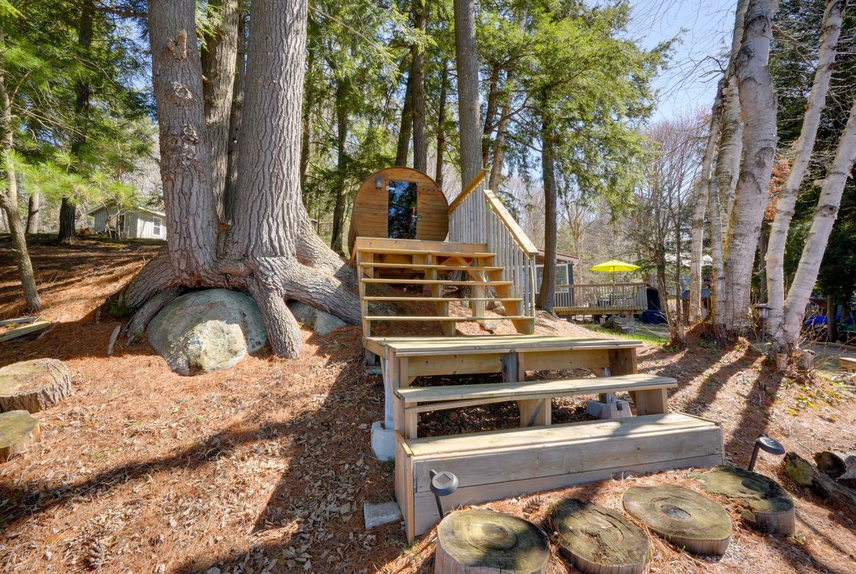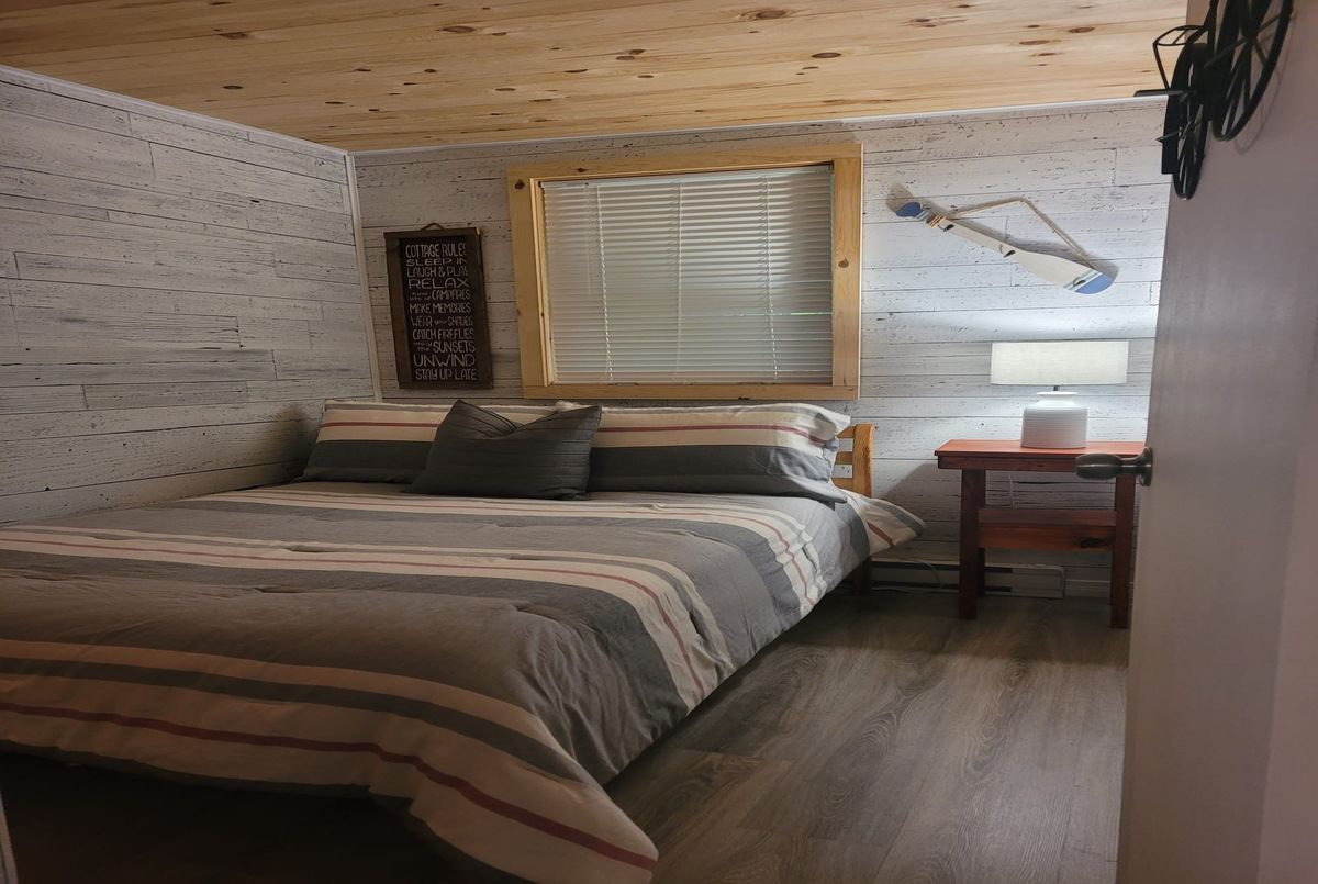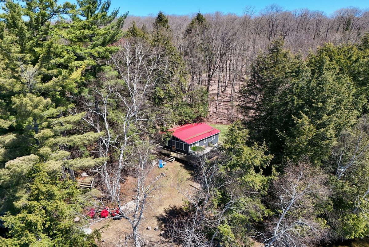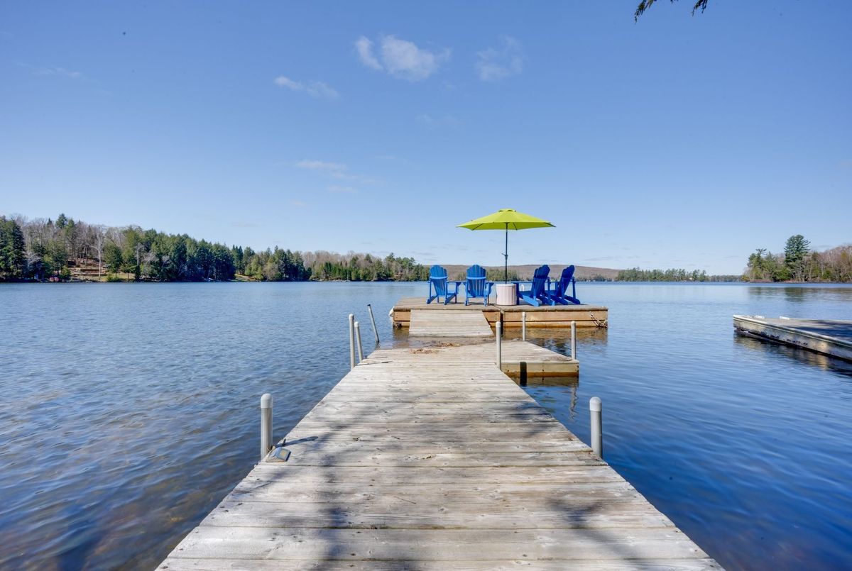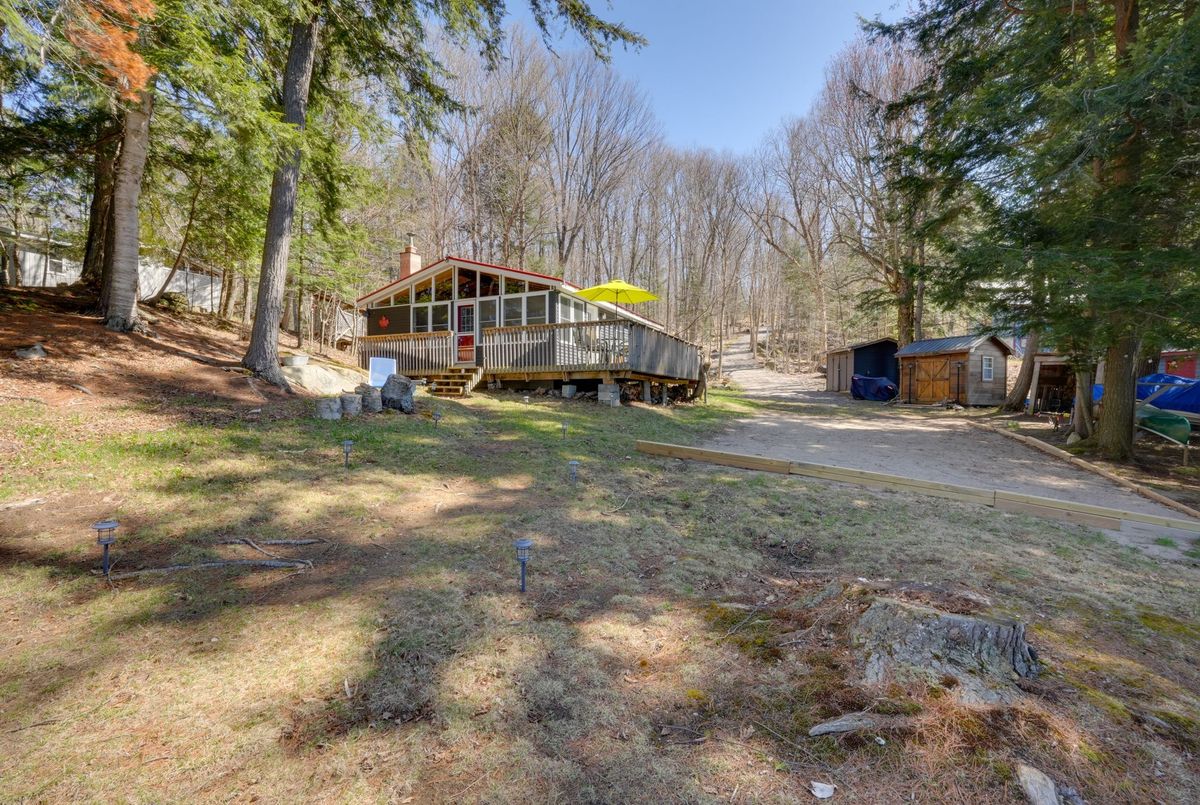 Step into the kind of cottage that feels like a warm hug cute as a button and brimming with charm. This delightful 3-bedroom retreat, complete with a cozy bunk room for the for the kids, is a picture-perfect escape for all seasons. Inside, the trendy bleached wood interior captures the essence of effortless lakeside style, while the central wood-burning fireplace with an insert adds a crackling glow to those crisp evenings. The open-concept design ensures everyone stays connected, whether gathered around the stylish dining area facing the lake or spilling out onto the deck to soak in those mesmerizing panoramic views. With due west exposure, sunsets here are nothing short of magical - each evening feels like a private showing just for you. Out on the sprawling dock, the fun begins. From thrilling plunges off the deep end to carefree afternoons on the waterslide, there's joy for every age. Prefer a slower pace? The shallow sandy shoreline invites wading, splashing, or simply soaking up the sun. And when it is time to truly unwind, the barrel sauna nestled among mature pines offers a serene retreat, its window framing the rippling waters. For extra guests - or teens seeking their own haven - the detached bunkie is the ultimate hangout, full of potential for sleepovers and laughter. The one-acre property provides space to roam, yet its thoughtful layout keeps the focus on lakeside living. Set on a mid-size lake perfect for boating, fishing and water-front sports, this cottage is as much about adventure as it is relaxation. With a year-round road access and a design that is winter-ready, this is a haven for all seasons. Whether you are snowshoeing on the frozen lake or enjoying summer mornings by the water, the possibilities are endless. Perfect for personal enjoyment or as an income-generating rental, this charming retreat lends whimsy and practicality in a way that is simply irresistible. Your lakeside story begins here.