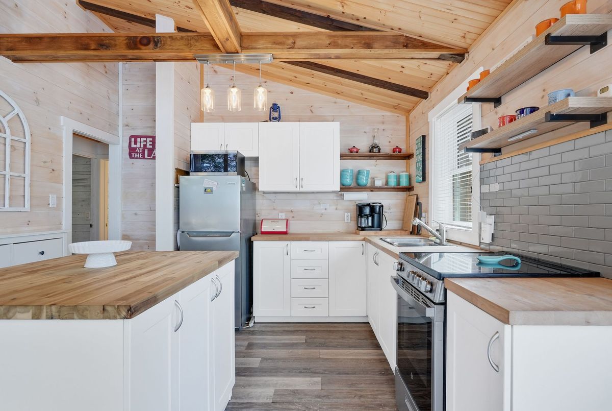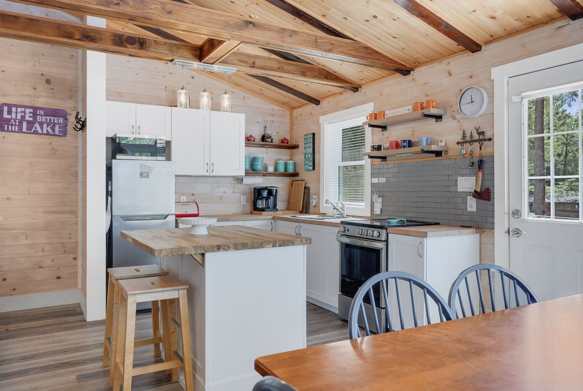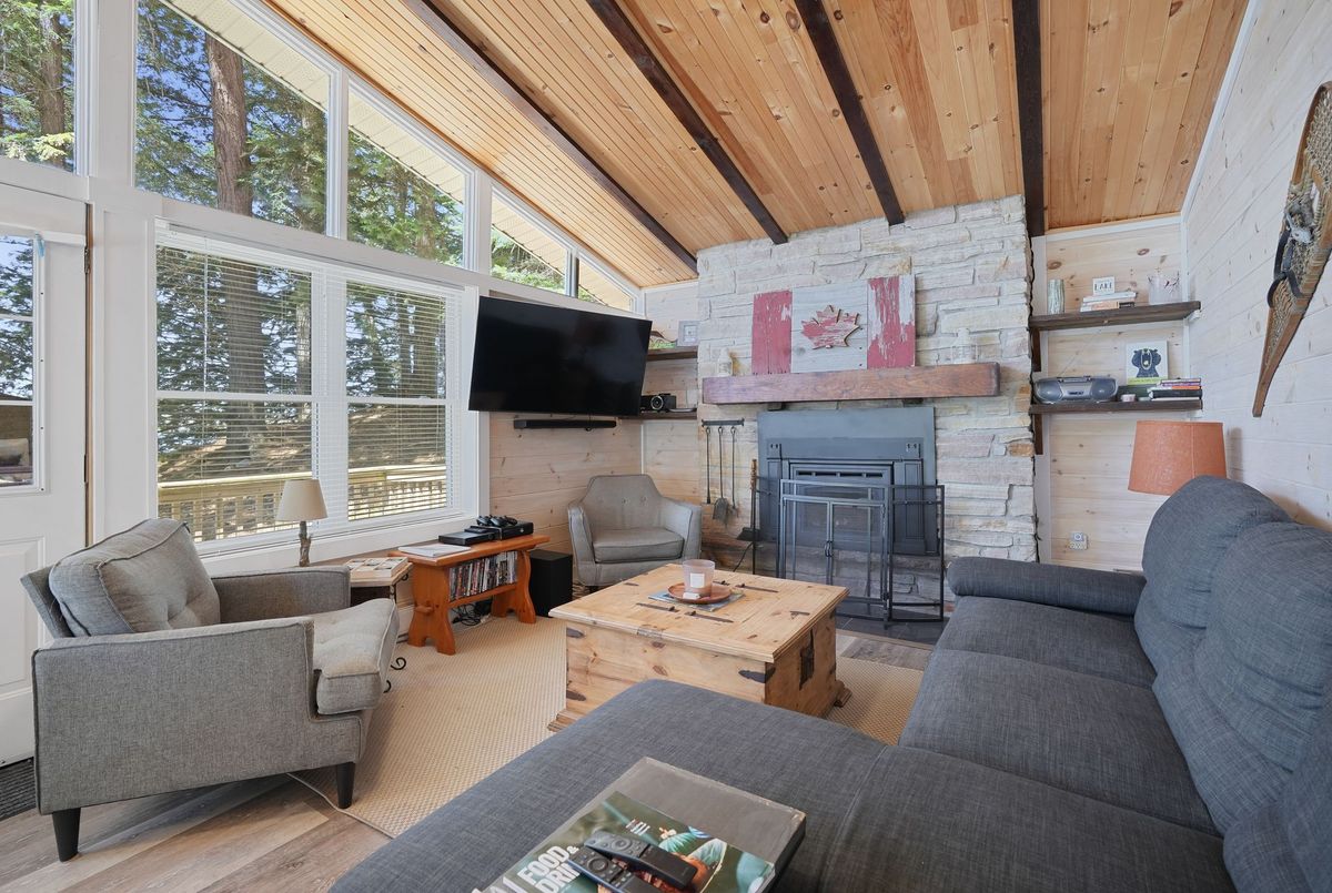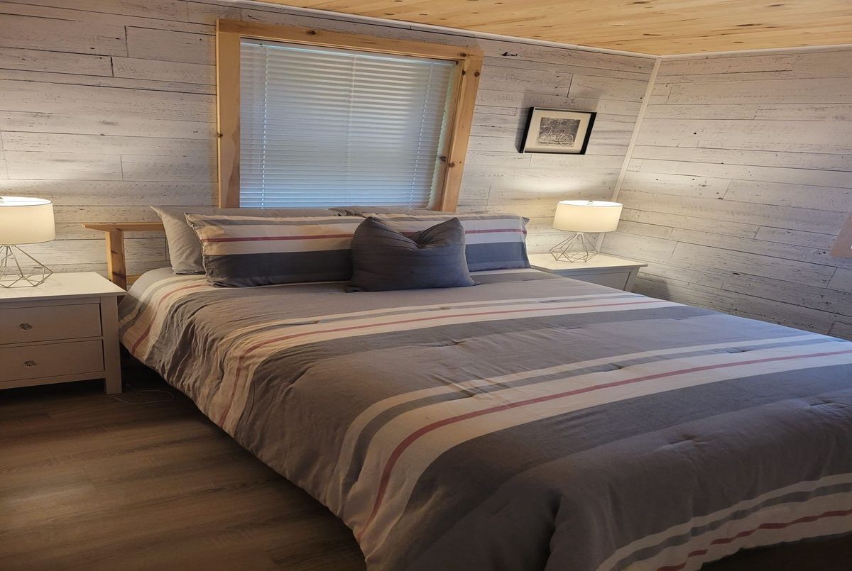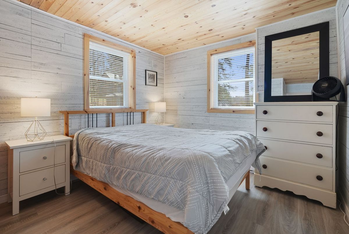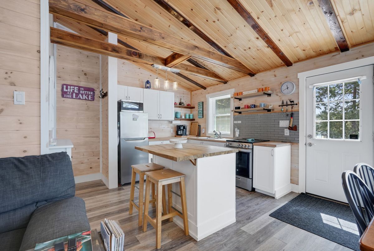Step into the kind of cottage that feels like a warm hug cute as a button and brimming with charm. This delightful 3-bedroom retreat, complete with a cozy bunk room for the for the kids, is a picture-perfect escape for all seasons. Inside, the trendy bleached wood interior captures the essence of effortless lakeside style, while the central wood-burning fireplace with an insert adds a crackling glow to those crisp evenings. The open-concept design ensures everyone stays connected, whether gathered around the stylish dining area facing the lake or spilling out onto the deck to soak in those mesmerizing panoramic views. With due west exposure, sunsets here are nothing short of magical - each evening feels like a private showing just for you. Out on the sprawling dock, the fun begins. From thrilling plunges off the deep end to carefree afternoons on the waterslide, there's joy for every age. Prefer a slower pace? The shallow sandy shoreline invites wading, splashing, or simply soaking up the sun. And when it is time to truly unwind, the barrel sauna nestled among mature pines offers a serene retreat, its window framing the rippling waters. For extra guests - or teens seeking their own haven - the detached bunkie is the ultimate hangout, full of potential for sleepovers and laughter. The one-acre property provides space to roam, yet its thoughtful layout keeps the focus on lakeside living. Set on a mid-size lake perfect for boating, fishing and water-front sports, this cottage is as much about adventure as it is relaxation. With a year-round road access and a design that is winter-ready, this is a haven for all seasons. Whether you are snowshoeing on the frozen lake or enjoying summer mornings by the water, the possibilities are endless. Perfect for personal enjoyment or as an income-generating rental, this charming retreat lends whimsy and practicality in a way that is simply irresistible. Your lakeside story begins here.