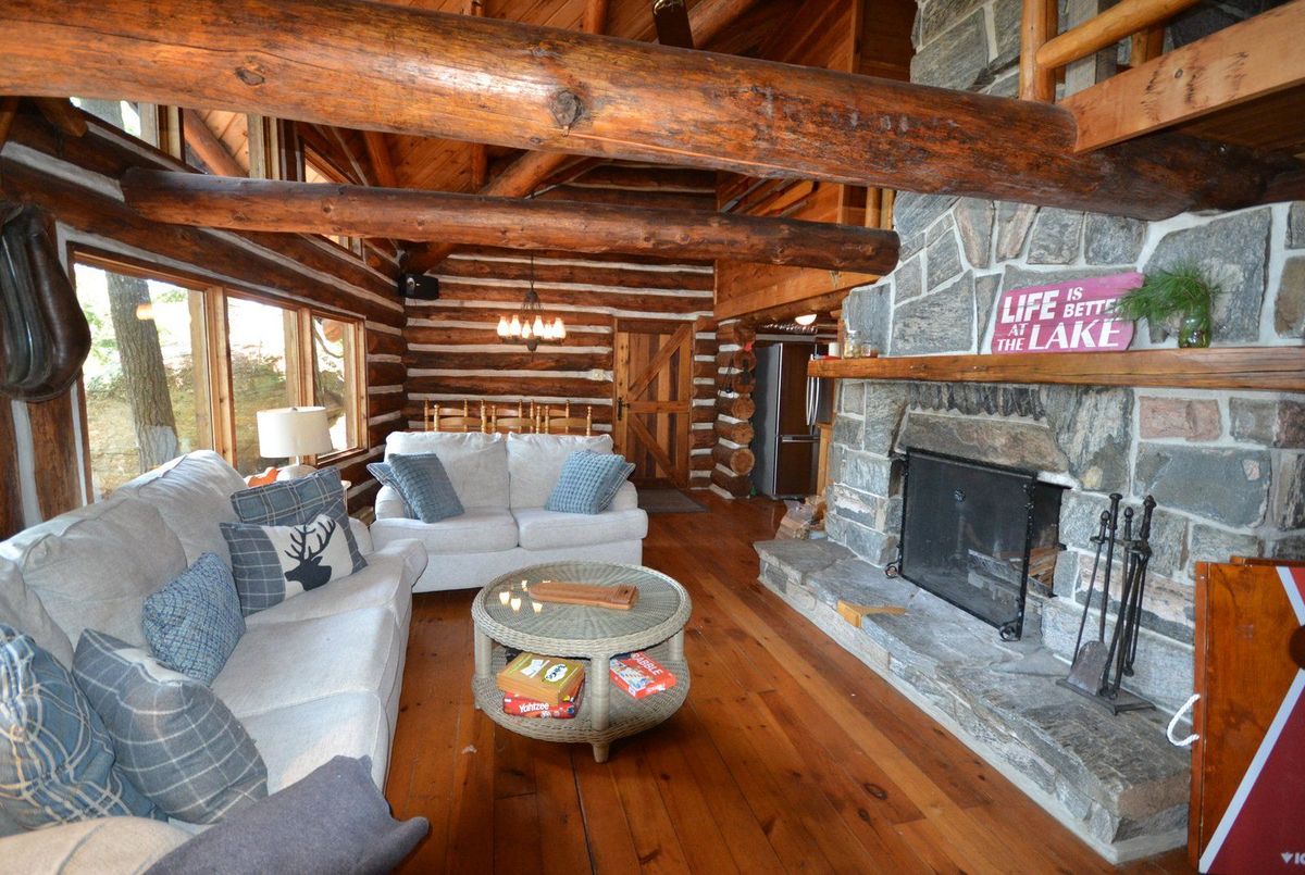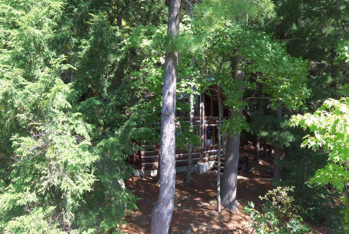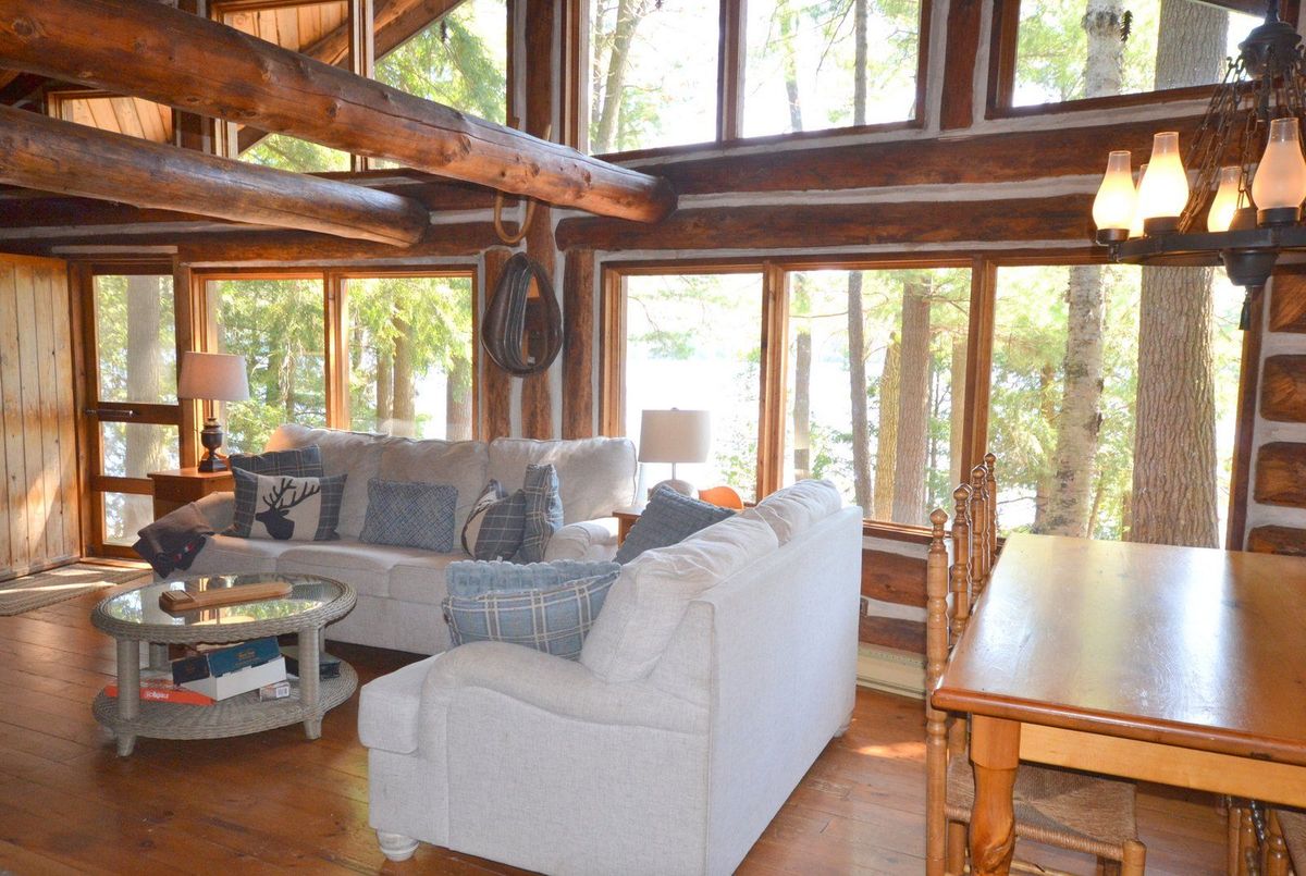 Stunning Log Cottage on Beautiful Redstone Lake. This handcrafted log cottage is bursting with character and charm, offering the perfect blend of rustic elegance and modern comfort. Lovingly maintained and radiating pride of ownership, the property features a new metal roof (2022) and sits on the pristine shores of sought-after Redstone Lake. Step into the spacious living room with vaulted ceilings, a striking stone fireplace, and breathtaking lake views. The cozy kitchen and separate dining area provide the ideal setting for lakeside gatherings. A handcrafted wood staircase leads to two upper-level bedrooms, while the main floor boasts a comfortable primary bedroom and a 3-piece bathroom. Nestled on a gently sloping lot with stunning granite outcroppings and windswept pines, the outdoor space is just as captivating. Enjoy magnificent sunsets from the large lakeside deck, gather around the firepit at the point, or relax on the extensive dock beside the clean, deep water and rocky shoreline. 212 Feet of Stunning Rock Shoreline and 1.4 acres of privacy. A rare and special offering on one of Haliburton's premier lakes - this one-of-a-kind property is ready to create unforgettable family memories.
