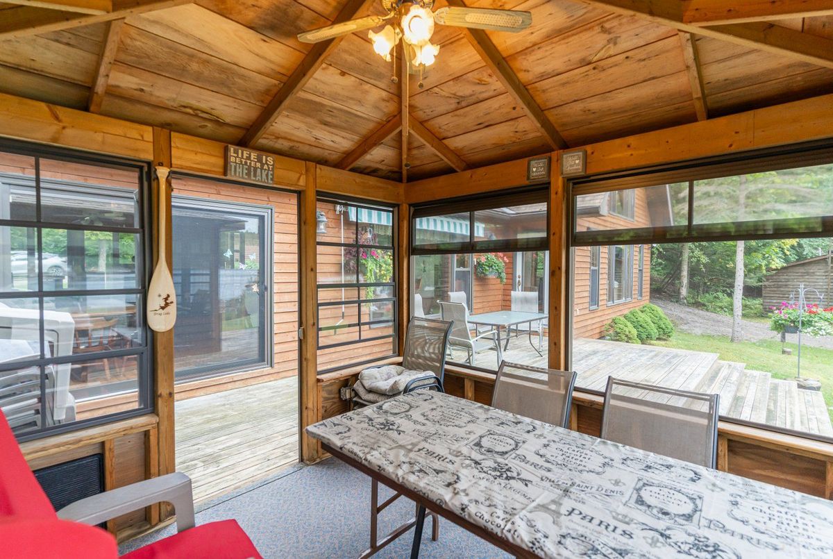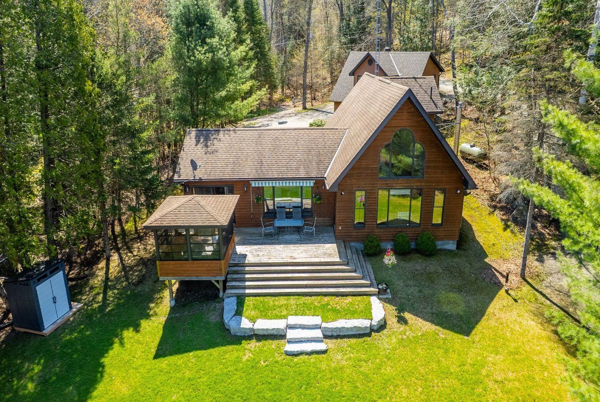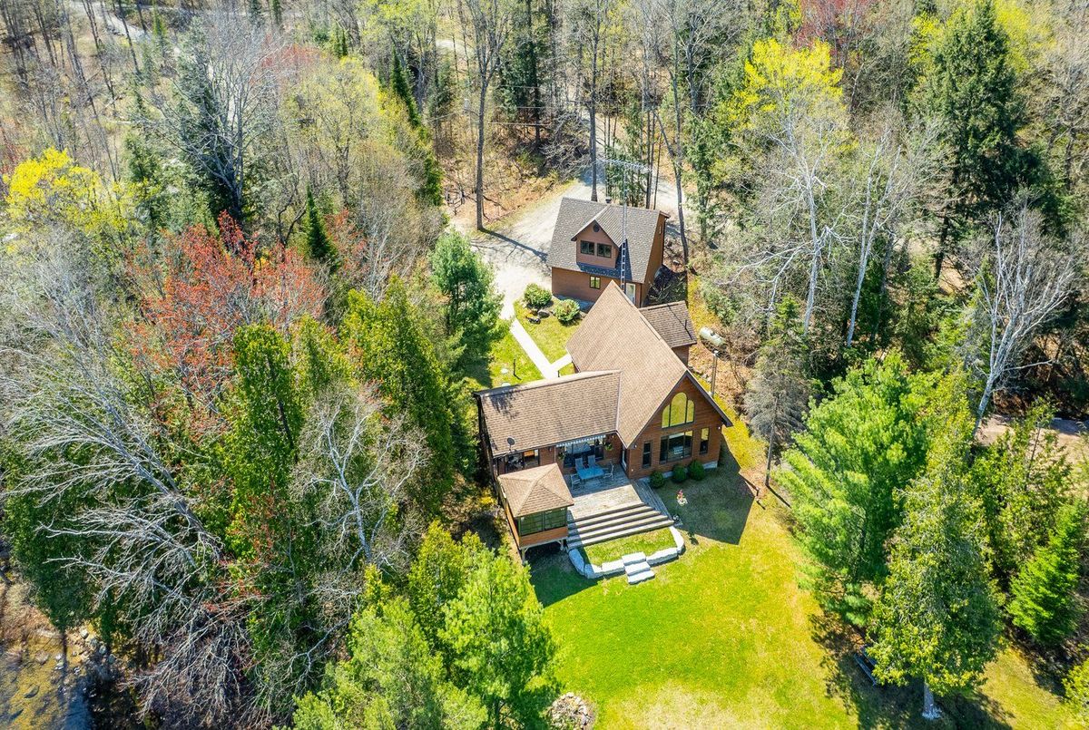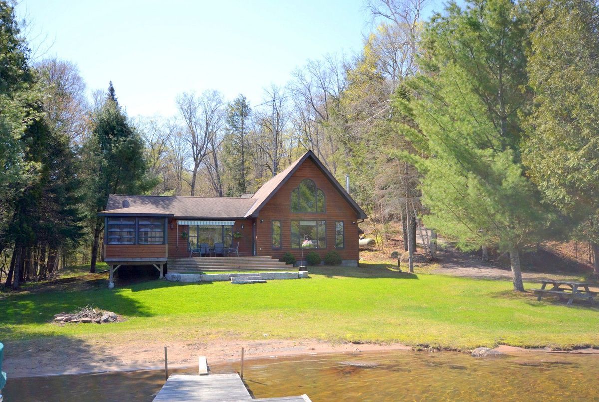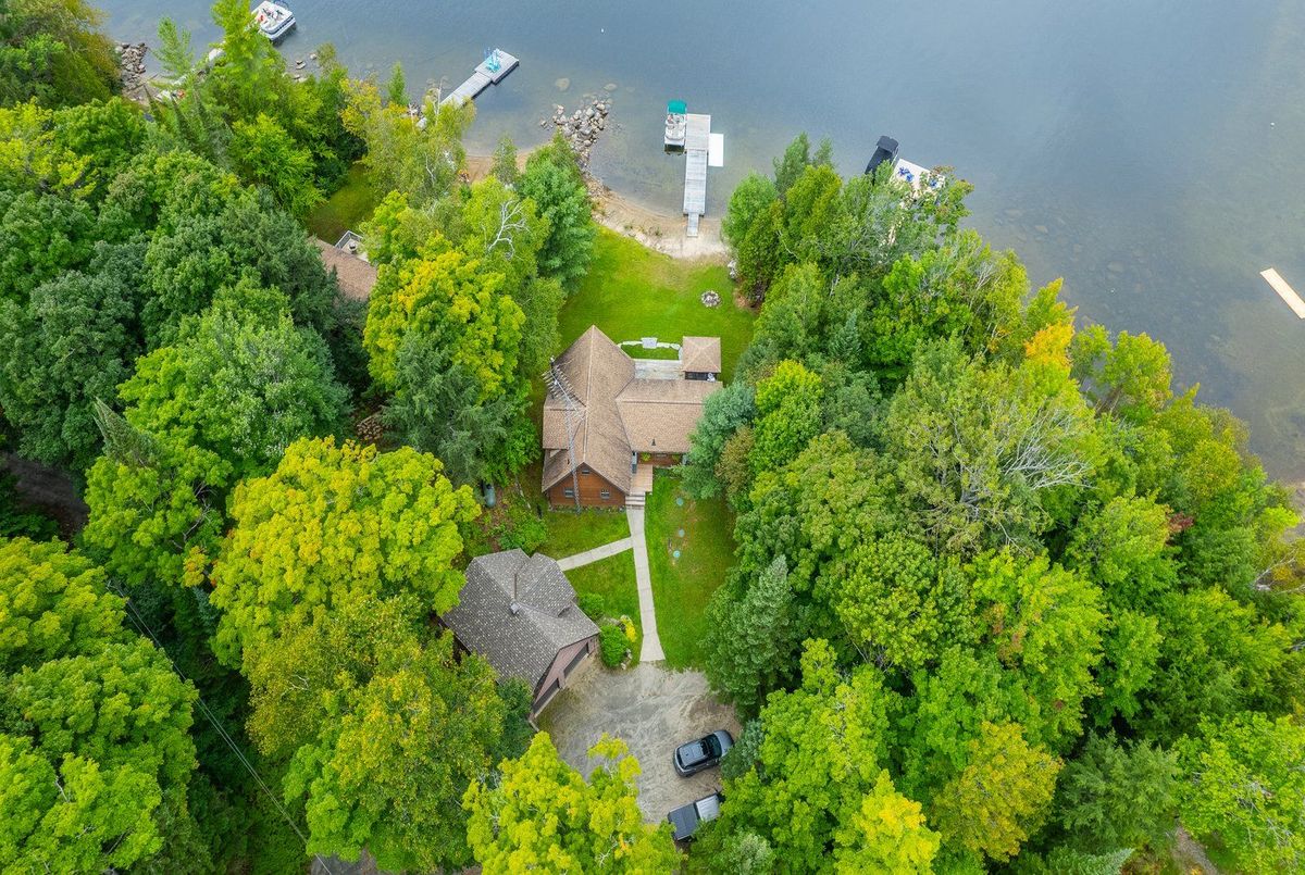 Stunning Home or Cottage on Prestigious Drag Lake. This beautiful 3-bedroom home or cottage offers the perfect blend of comfort, style and classic cottage charm on one of Haliburton County's most sought-after lakes. Beautiful level waterfront with a sandy shoreline and deep water off the dock, this property is ideal for swimming, boating, and fishing. Enjoy breathtaking sunsets right from your dock and cozy evenings around the lakeside firepit. Inside, the spacious open-concept kitchen and dining area boasts panoramic lake views, plus a lakeview Livingroom with a propane stove for chilly evenings. Perfect for hosting and everyday enjoyment. The primary bedroom features a private ensuite, offering a peaceful retreat. The detached 2 car garage includes a fully finished upper level with a 3 piece bathroom, living area, and bedroom -- ideal for guests or extended family. Fully township approved. Step outside to the expansive lakeview decking and a beautifully finished screened gazebo for bug-free relaxation all summer long. Whether it's a family retreat or a year-round residence, this rare Drag Lake gem is a must-see.