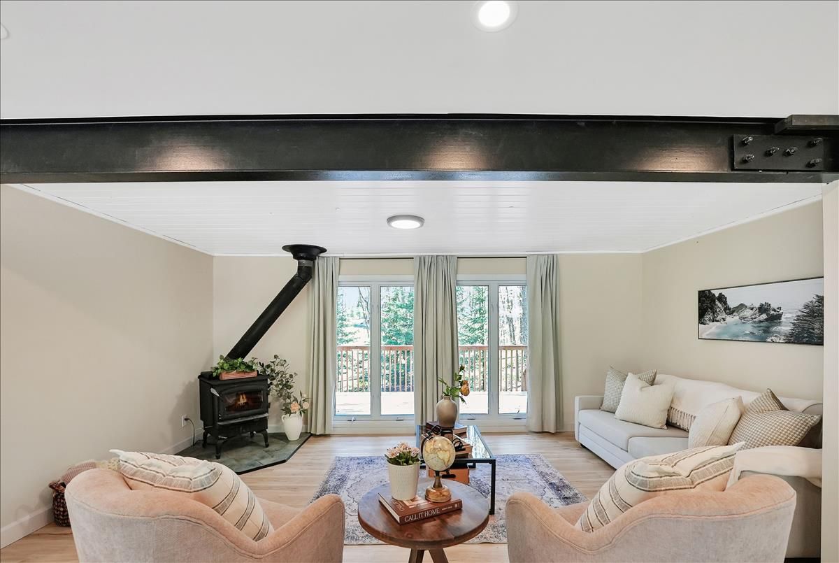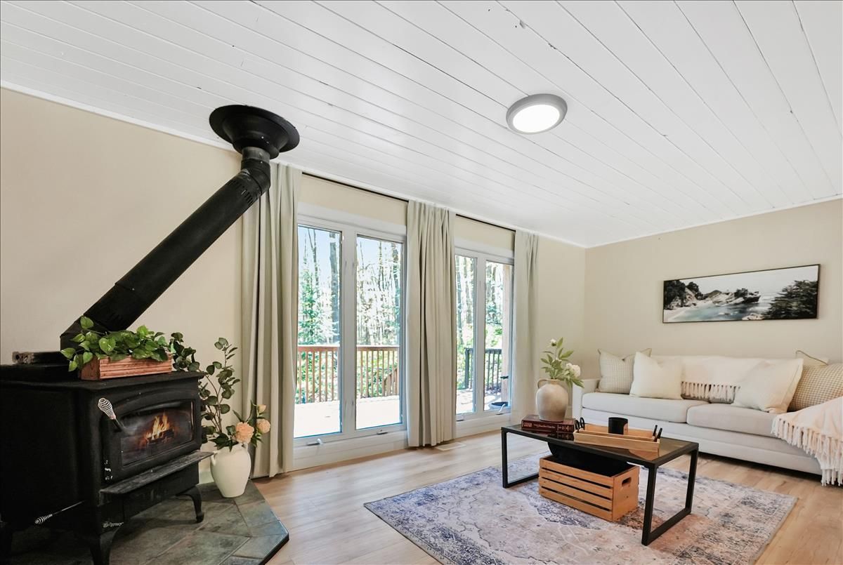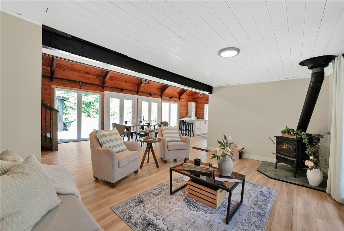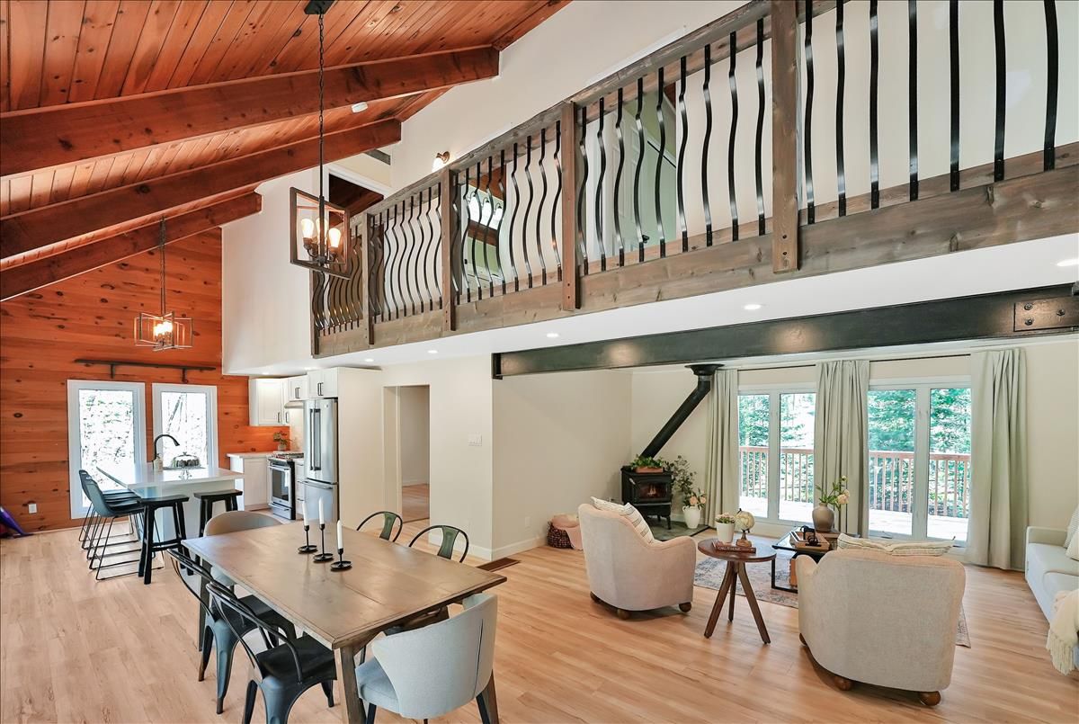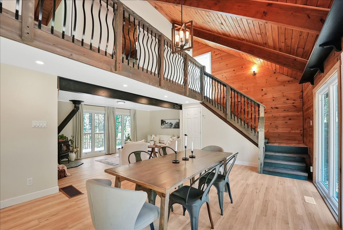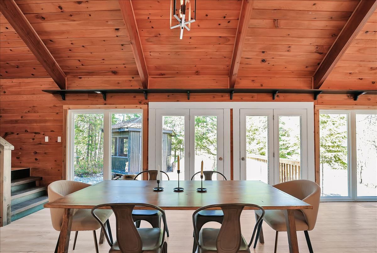 Tucked into a picturesque setting, this beautifully renovated 3-bedroom, 1.5-bathroom cottage (or year-round home) offers the perfect blend of comfort, style, and nature. With deeded access to stunning Miskwabi Lake, part of a scenic 2-lake chain with Long Lake, your outdoor adventures are just steps away. Inside, the open-concept layout is warm and welcoming, with modern finishes throughout. The kitchen, bathrooms, and living spaces have all been thoughtfully updated making this turn-key retreat ready for immediate enjoyment. Cozy up in the bright living room with wood burning fireplace, gather with friends and family in the large dining area with soaring cathedral ceilings, and rest easy knowing a backup propane furnace and drilled well have you covered. Spend your days basking in the sun on the spacious deck, then wind down in the screened-in gazebo with the sounds of nature all around. Whether you're swimming, paddling, or just relaxing, this is the cottage life you've been waiting for. An ideal getaway or full-time residence in the heart of Haliburton County don't miss this chance to own your slice of paradise!