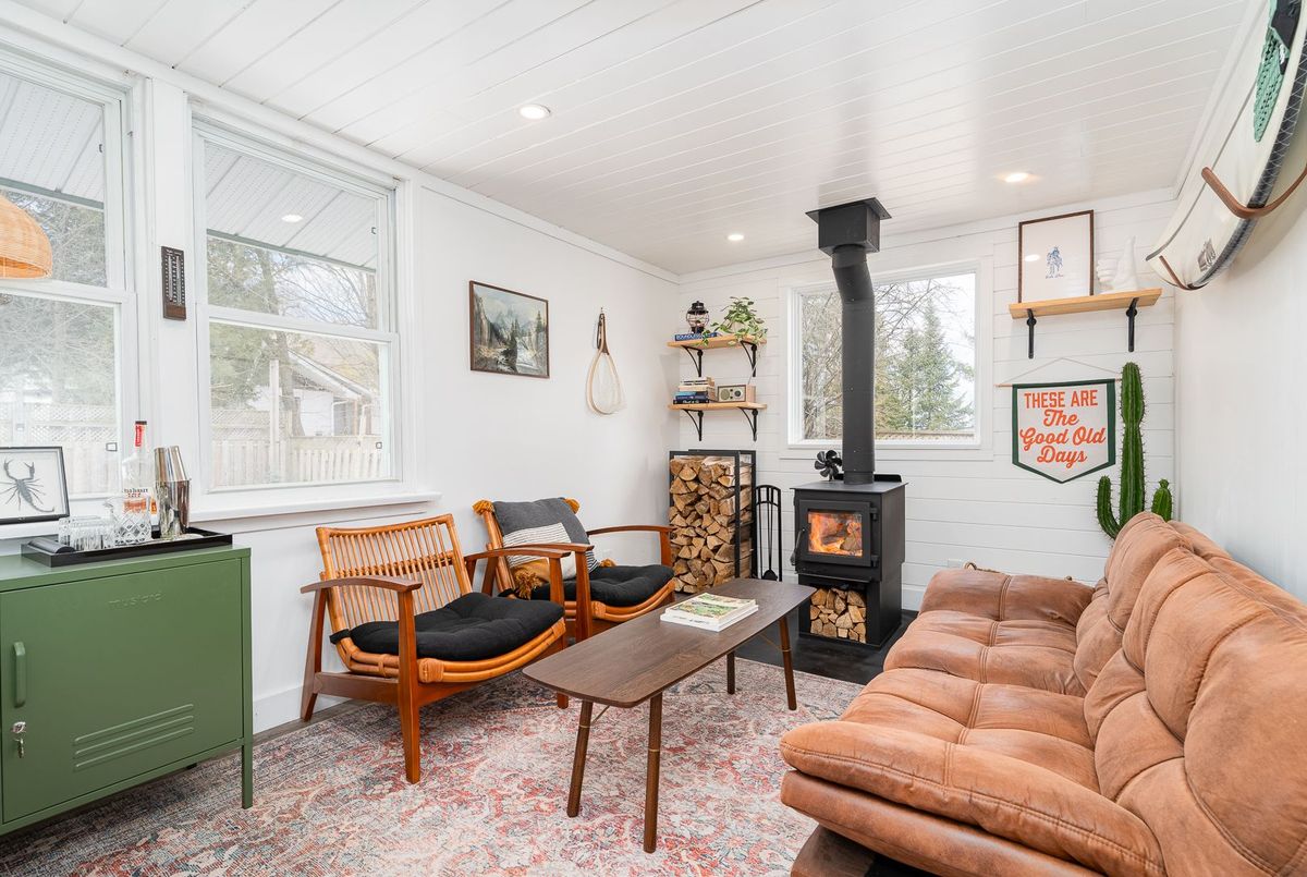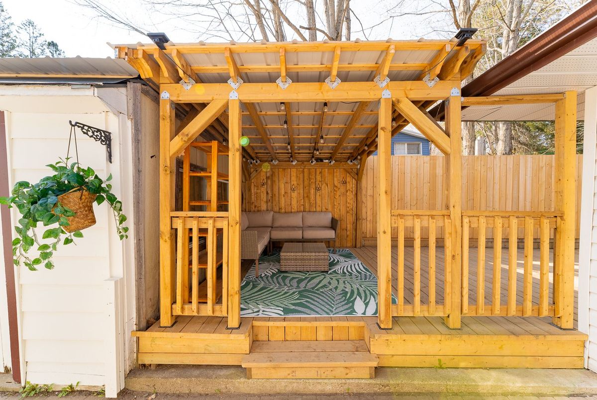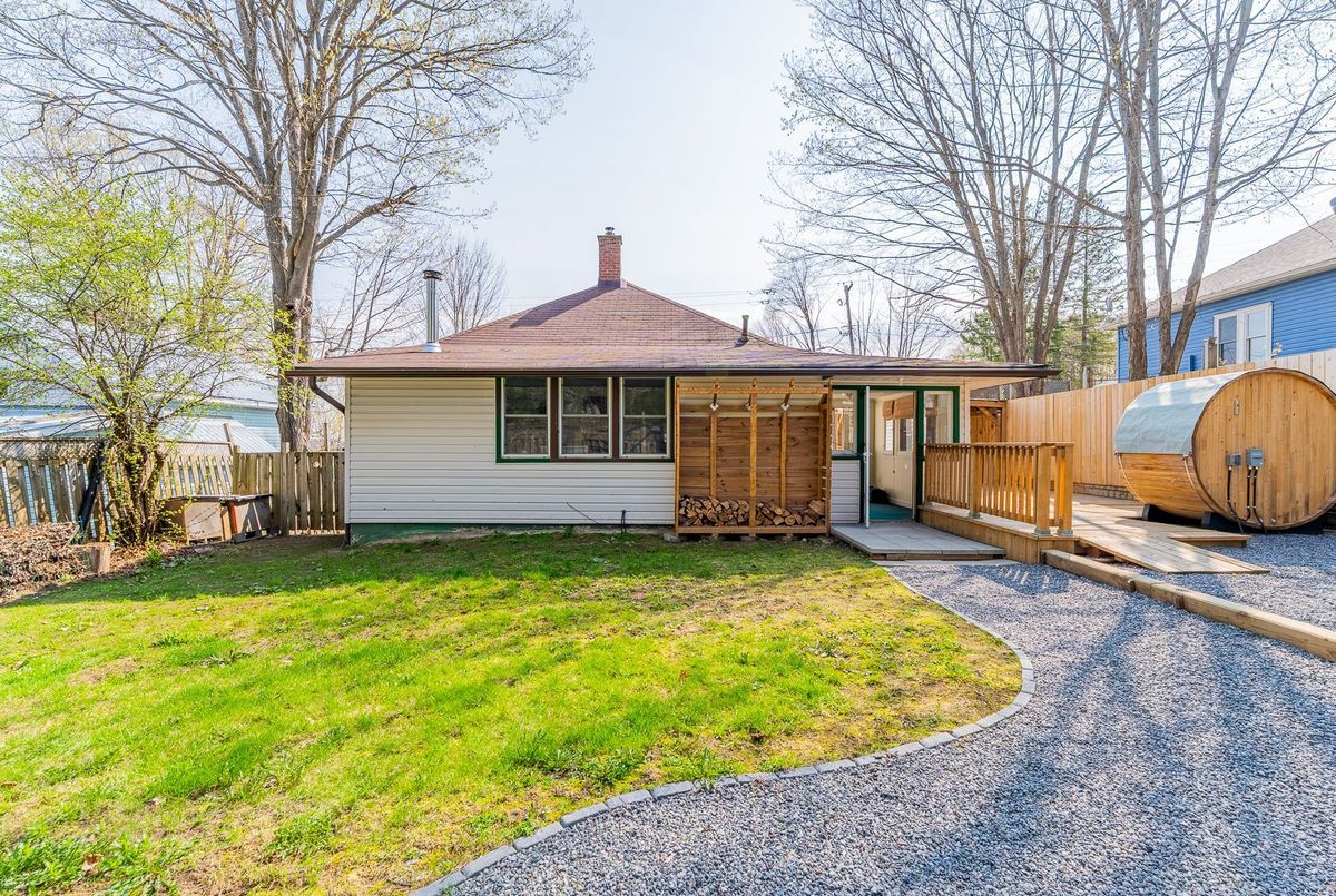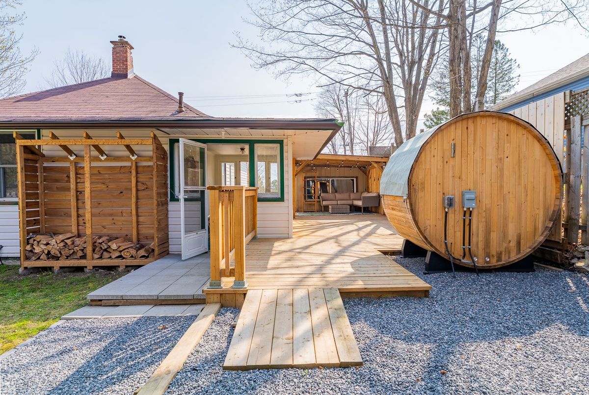 Downtown Huntsville Gem | Fully Updated Home in a Tucked-Away Cul-de-Sac. Welcome to one of downtown Huntsvilles best-kept secrets a beautifully updated home nestled at the end of a quiet cul-de-sac, just steps from Main Street. Imagine walking to your favourite café, browsing local shops, or heading to the park all without needing your car.Inside, this home has been lovingly refreshed from top to bottom. The kitchen features a brand-new quartz countertop, new plumbing fixtures, a modern sink, and a new dishwasher. The main bedroom boasts all-new walls, and the entire home has been freshly painted, with new carpet and lighting fixtures throughout the living room and bedrooms. Even the ceiling in the living room was redone (goodbye popcorn ceiling!).The unfinished basement offers loads of storage space and includes a shop sink, washer and dryer, and updated electrical wiring. There's even new roof insulation and new eavestroughs for added peace of mind.Step outside to a true garden oasis. The freshly landscaped yard is full of edible perennials including wild ginger, fiddleheads, asparagus, blueberries, raspberries, grapes, açai kiwi, herbs like thyme, rosemary, sage, and chives, and even a growing dwarf cherry tree.Whether you're entertaining or winding down, enjoy the new sauna (fully hooked up and ready to go) or cozy up by the new, wet-certified wood-burning fireplace a must-have during winter power outages. Theres also a handy wood shed, two additional sheds for gardening or storage, two driveways, and a detached garage for even more flexibility.This is a quiet, tight-knit neighbourhood filled with kind neighbours and a real sense of community all within walking distance to schools, shops, restaurants, and everything else you need.If you're looking for charm, function, and location all in one this is it.