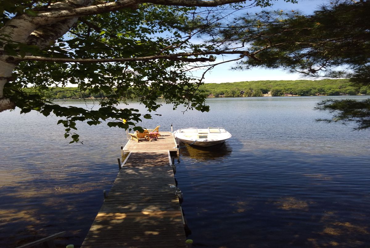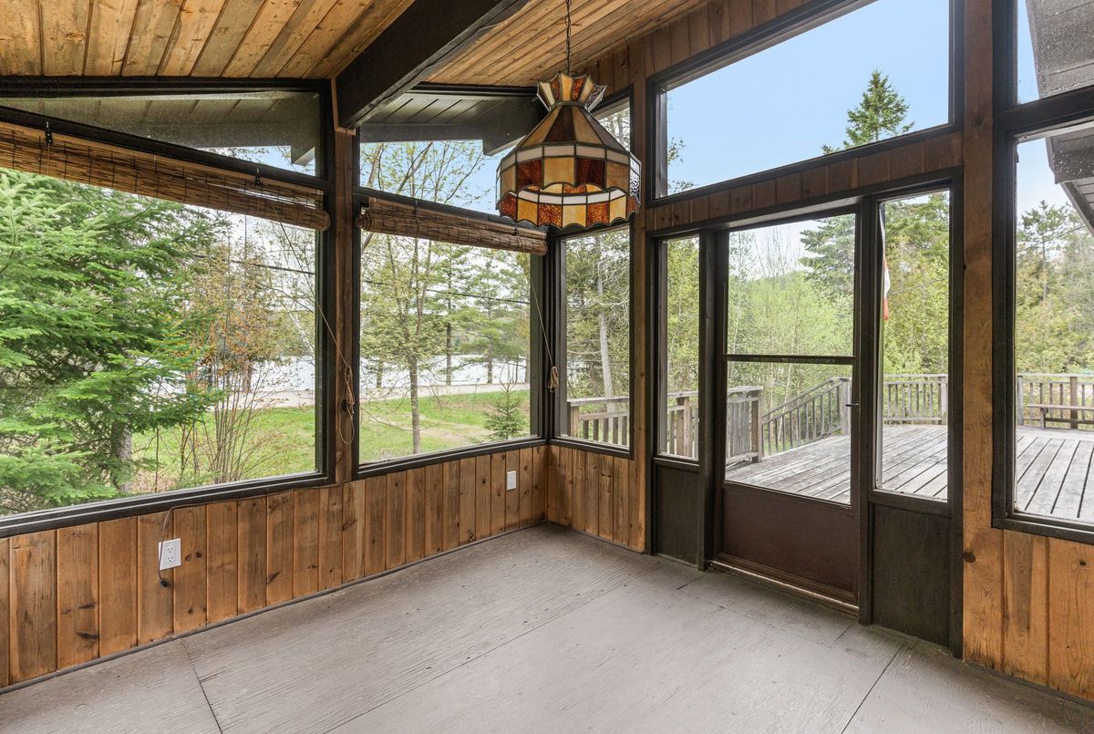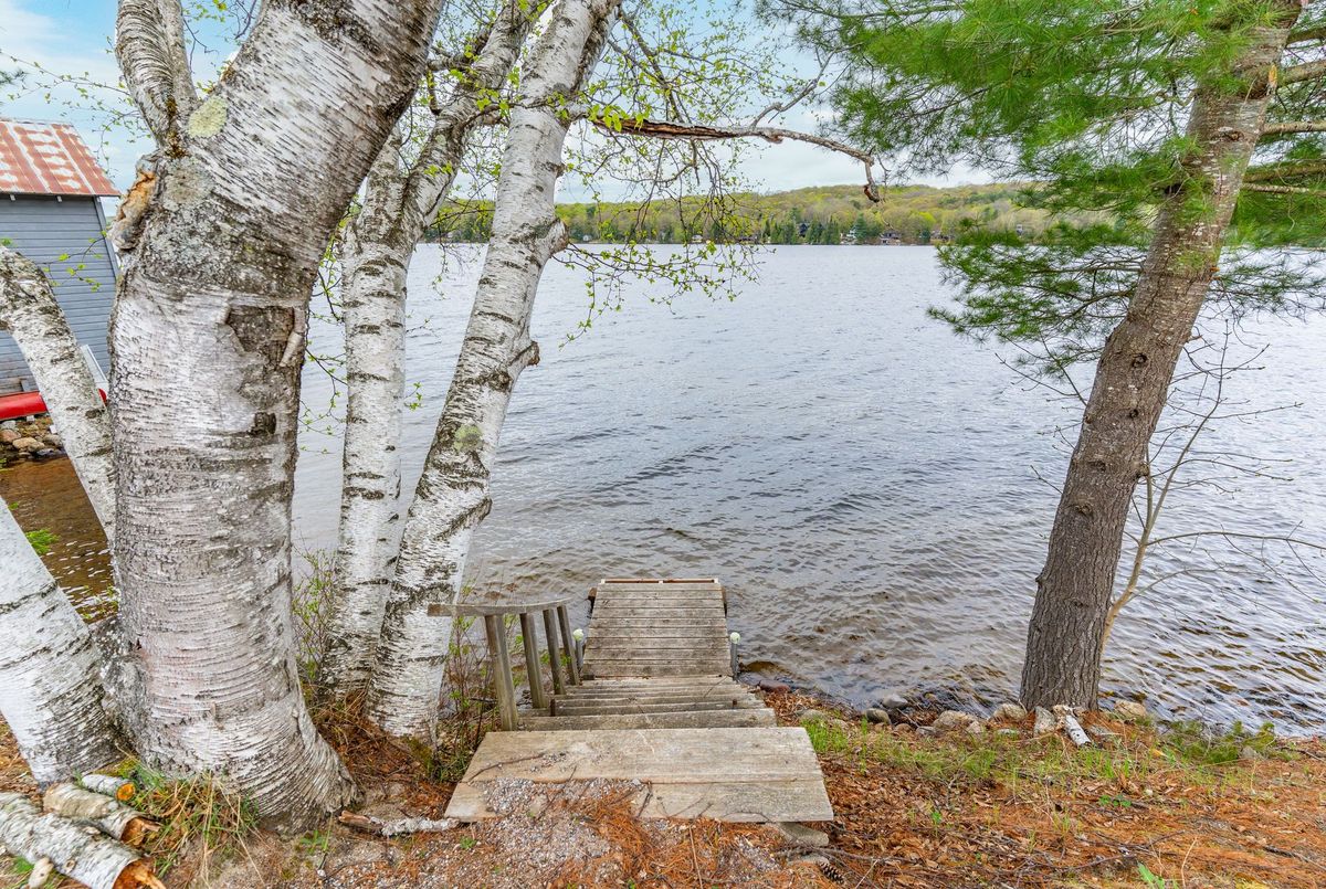 Discover this waterfront getaway with 160' of frontage across the road on the shores of Twelve Mile Lake. This charming 3-season cottage offers the perfect blend of cozy comfort and outdoor living that lake enthusiasts crave. Inside, a welcoming fireplace creates a warm ambiance for cool evenings, while the the thoughtful layout maximizes the spectacular lake views through generous windows. The expansive deck provides an ideal spot for morning tea or evening gatherings as you soak in breathtaking views of the water. A screened-in porch ensures bug-free outdoor enjoyment. Across the road, the 7 steps down to the dock offers direct access to crystal-clear waters, perfect for swimming and water activities. A detached garage provides excellent storage for boats, water toys, and seasonal equipment. Nestled in a picturesque setting with mature trees and natural landscaping, this property delivers everything needed for memorable summer getaways. Please note: New owner will need to check with the township regarding license renewal for the existing dock. Don't miss this rare opportunity to own your slice of waterfront paradise on coveted Twelve Mile Lake where your cottage dreams become a reality.