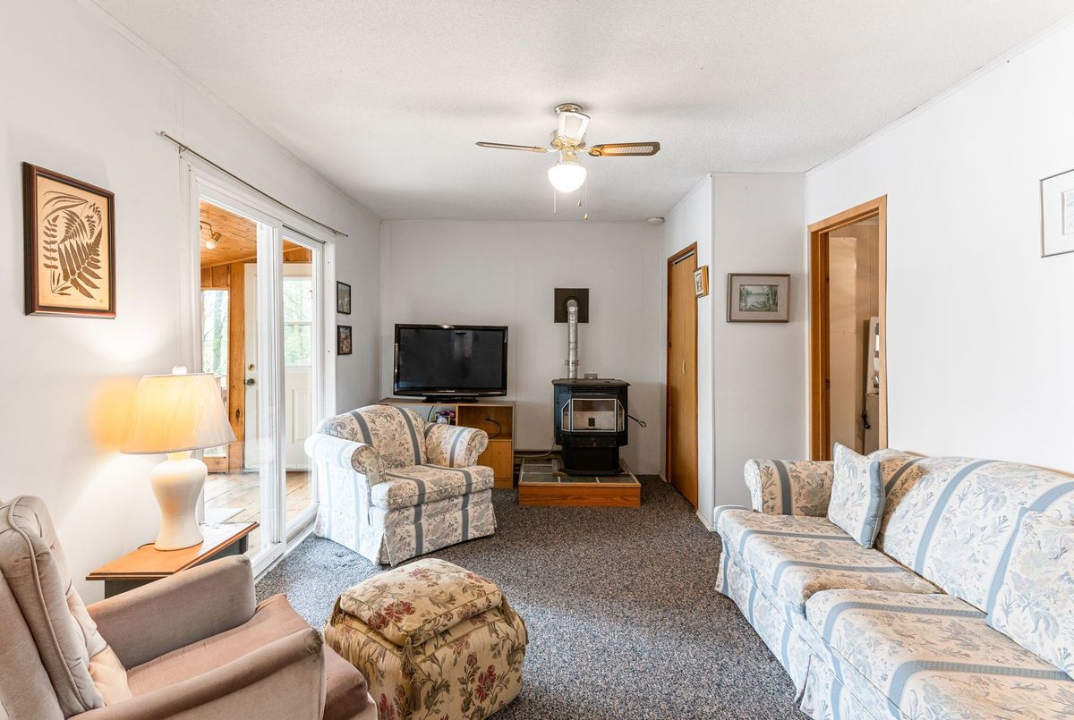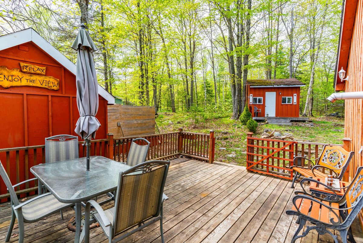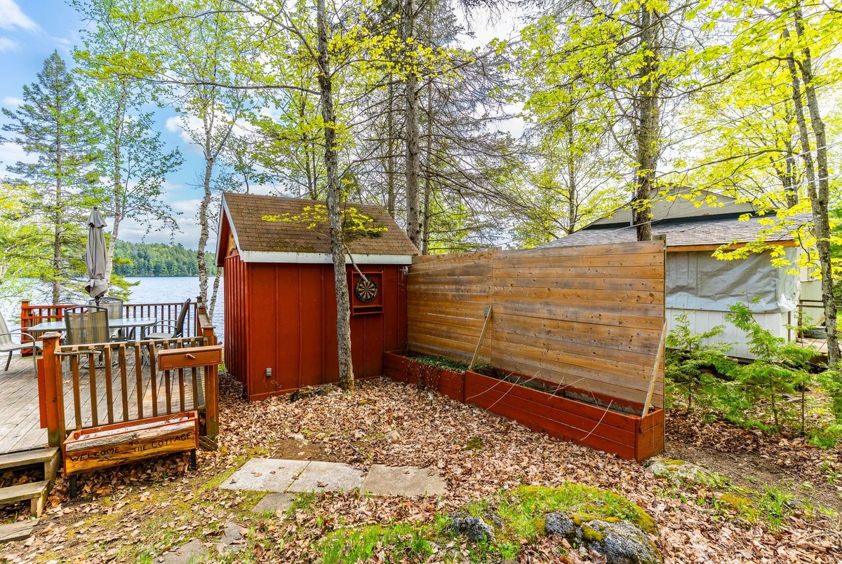 Discover your perfect escape at 1026 Nelson Lane, a delightful 3-season retreat on beautiful Glamor Lake. Here, stunning, unobstructed lake views aren't just a backdrop they're an immersive experience, complementing the absolute privacy you'll find at the waterfront. This charming cottage features two bedrooms and one bathroom, plus a welcoming Haliburton room where panoramic lake vistas unfold, no matter the weather. Need extra space for guests? A renovated 10'x12' bunkie offers comfortable overflow. Overlooking the shimmering lake, you'll find endless opportunities for peace and serenity. At the water's edge, a dedicated sitting deck invites tranquil moments and vibrant outdoor entertaining, while an artfully landscaped fire pit beckons for evenings spent connecting with friends and roasting marshmallows under the stars. The property includes a private dock providing easy access for swimming, fishing, and boating activities. The lot has been approved for new construction of a 2,200 sq. foot home if a rebuild is desired, giving you the flexibility to enjoy the property now or plan for future possibilities. Experience the charm and serenity of lakeside living at this Glamor Lake gem where memories are waiting to be made.