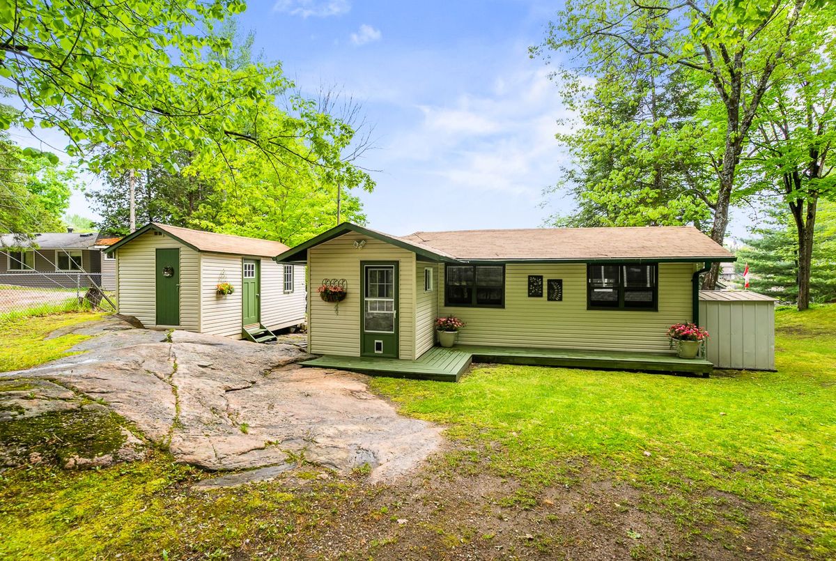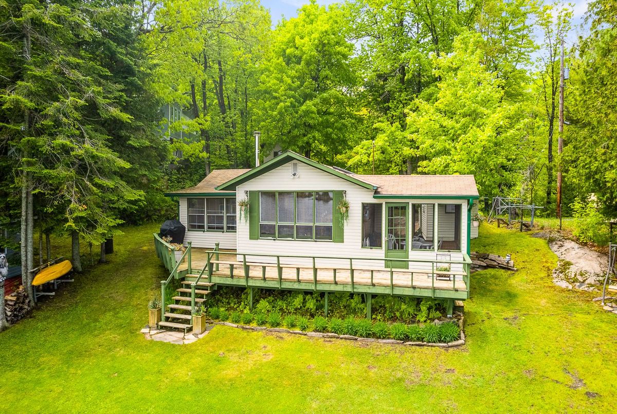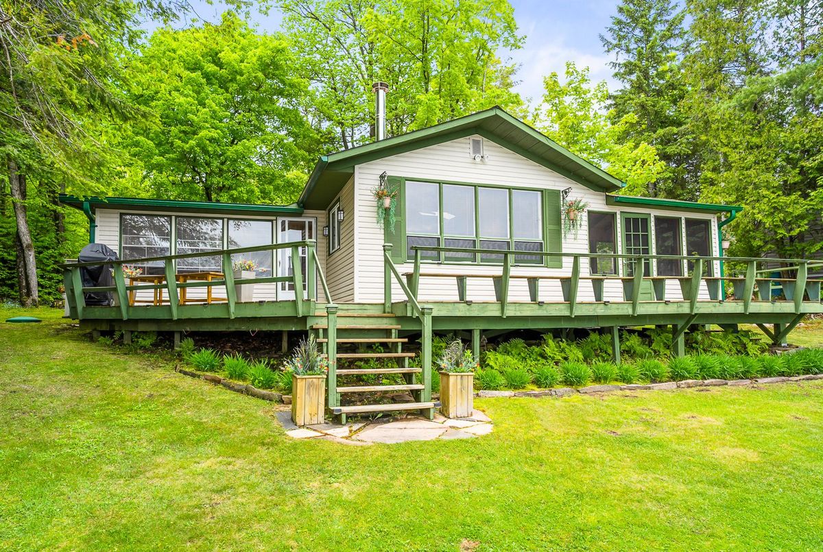 Welcome to 1069 Canuck Trail, a stunning 3 season lakeside retreat on Davis Lake near Minden. This charming property offers a full lake view, with magnificent sunrises greeting you each morning. The home features three spacious bedrooms and a large sunroom facing the lake, providing breathtaking views and an abundance of natural light. The expansive front lawn, perfect for outdoor activities and gatherings, leads to a beautiful sandy beach with a shallow walk-in entry, ideal for swimming and family fun. Nestled in a serene bay, the property boasts a peaceful creek flowing through, enhancing the picturesque landscape. Additional amenities include a storage shed, offering ample storage for all your lakeside equipment. For extra accommodation, there's a delightful two-story bunkie with a screened-in porch, offering a relaxing space with stunning lake views. Conveniently located just south of Minden, this property offers easy access to snowmobile and ATV trails, making it perfect for adventure seekers. The close proximity to the GTA makes it an ideal retreat for weekend getaways or a serene full-time residence. The friendly community atmosphere adds to the charm, making this an ideal retreat for those seeking both relaxation and connection. Experience the best of lakeside cottage living at 1069 Canuck Trail, where every day is an invitation to peace and enjoyment.