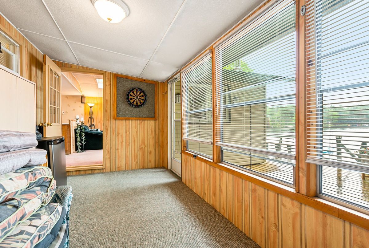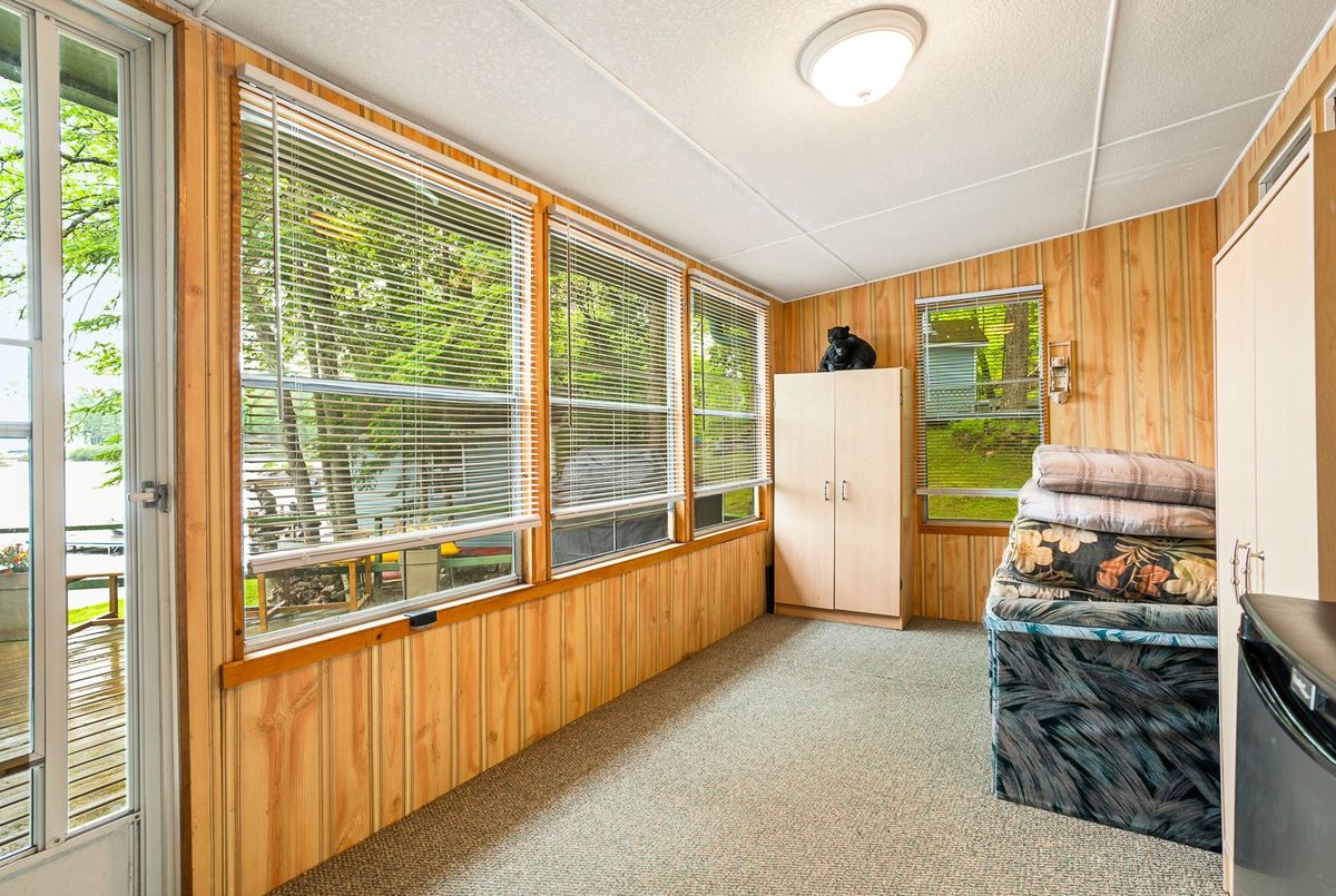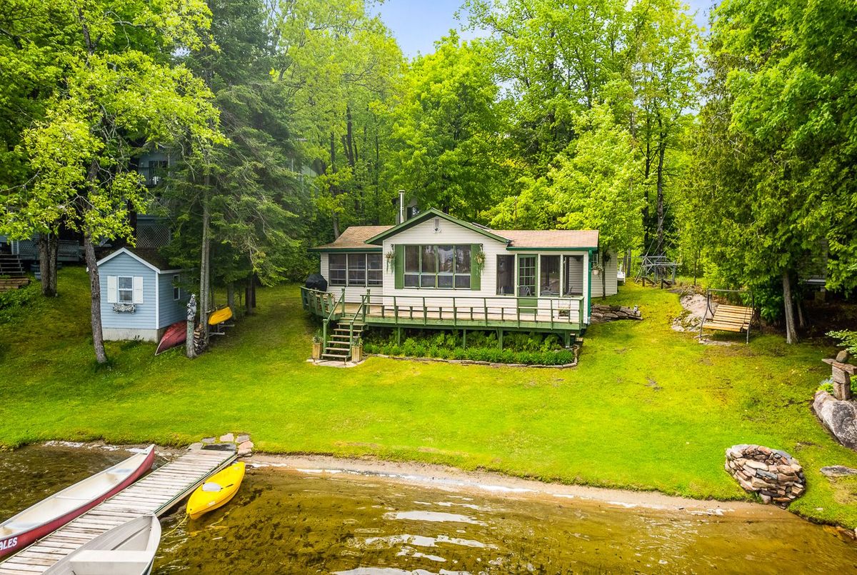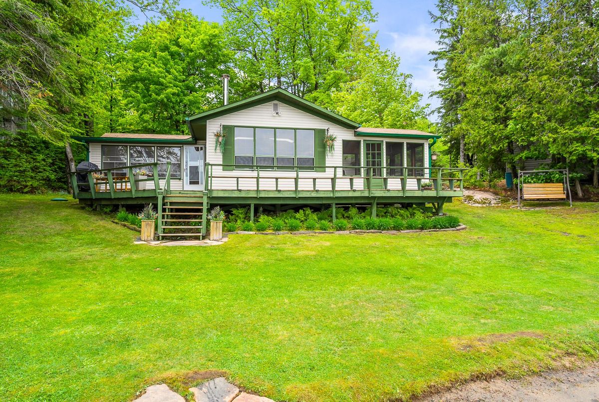 Welcome to 1069 Canuck Trail, a stunning 3 season lakeside retreat on Davis Lake near Minden. This charming property offers a full lake view, with magnificent sunrises greeting you each morning. The home features three spacious bedrooms and a large sunroom facing the lake, providing breathtaking views and an abundance of natural light. The expansive front lawn, perfect for outdoor activities and gatherings, leads to a beautiful sandy beach with a shallow walk-in entry, ideal for swimming and family fun. Nestled in a serene bay, the property boasts a peaceful creek flowing through, enhancing the picturesque landscape. Additional amenities include a storage shed, offering ample storage for all your lakeside equipment. For extra accommodation, there's a delightful two-story bunkie with a screened-in porch, offering a relaxing space with stunning lake views. Conveniently located just south of Minden, this property offers easy access to snowmobile and ATV trails, making it perfect for adventure seekers. The close proximity to the GTA makes it an ideal retreat for weekend getaways or a serene full-time residence. The friendly community atmosphere adds to the charm, making this an ideal retreat for those seeking both relaxation and connection. Experience the best of lakeside cottage living at 1069 Canuck Trail, where every day is an invitation to peace and enjoyment.