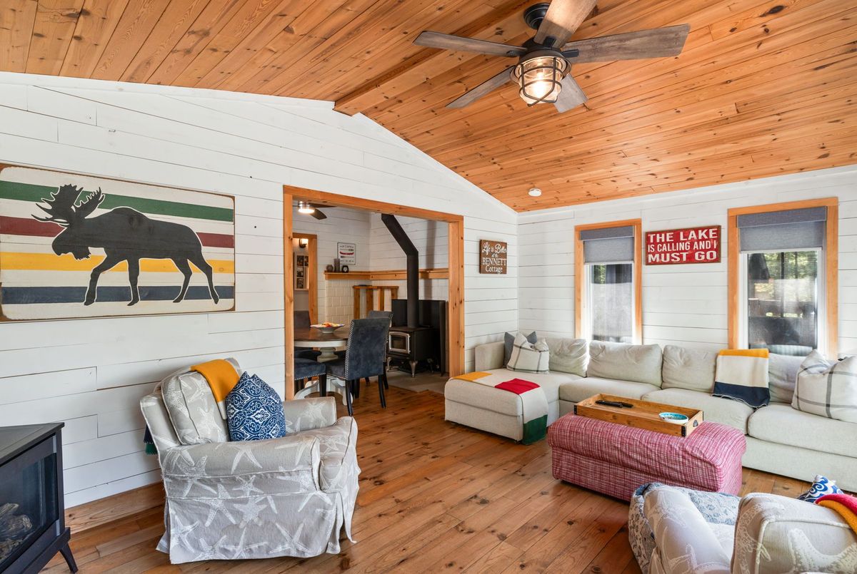 Situated on beautiful Koshlong Lake, this enchanting four-season home/cottage at 2129 Telephone Bay Road offers the cottage country experience with modern comforts and privacy. This charming 3-bedroom, 1-bathroom retreat sits on a level property with a gradual, sandy entrance to the clear waters of Koshlong Lake - perfect for swimmers of all ages. Step inside to discover a thoughtfully renovated interior that perfectly balances charm with contemporary elegance. The recently remodeled kitchen showcases stunning quartz countertops, modern cabinetry and appliances, creating an inviting space for preparing family meals. Throughout the main living areas, newly installed hardwood flooring adds warmth and sophistication while enhancing the cottage's natural character. The completely renovated bathroom features modern fixtures and stylish finishes, providing a retreat after a day on the lake. On cooler evenings, gather around the efficient propane fireplace that creates a cozy ambiance. The cottage is ideally positioned in a sheltered bay with minimal boat traffic, providing a peaceful setting for water activities and relaxation. A separate Bunkie provides additional accommodation for guests, while the spacious 3-car garage offers ample storage for vehicles, boats, and recreational equipment. Located just minutes from the vibrant town of Haliburton, this property combines secluded tranquility with convenient access to amenities. Outdoor enthusiasts will appreciate the direct access to extensive snowmobile and ATV trail networks, making this a true four-season recreational property. Experience the changing seasons from your private deck as the surrounding forest transforms throughout the year. Whether it's summer swims, autumn colors, winter adventures, or spring awakenings, this Koshlong Lake gem delivers the authentic cottage lifestyle you've been dreaming of.