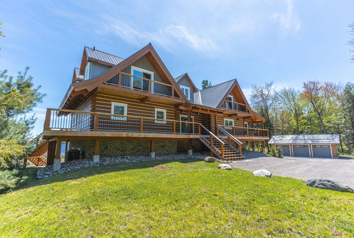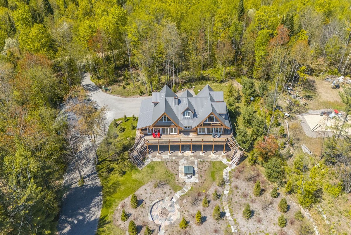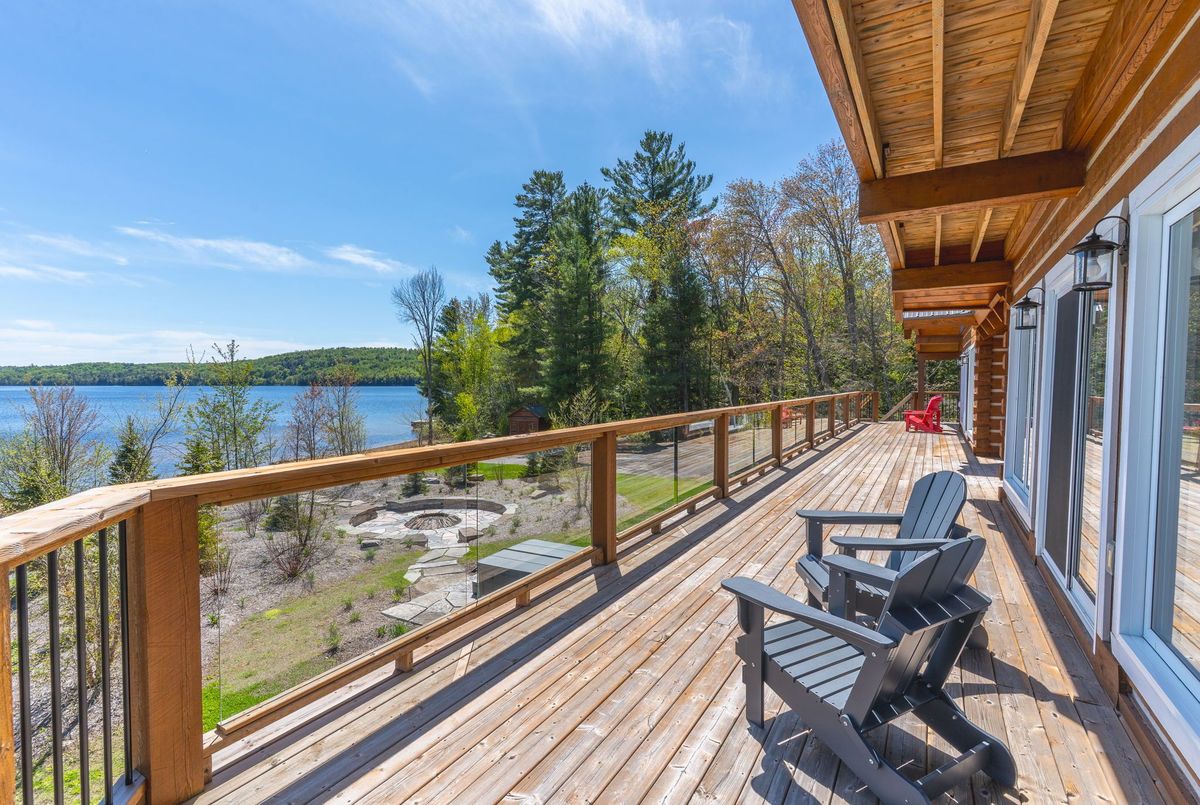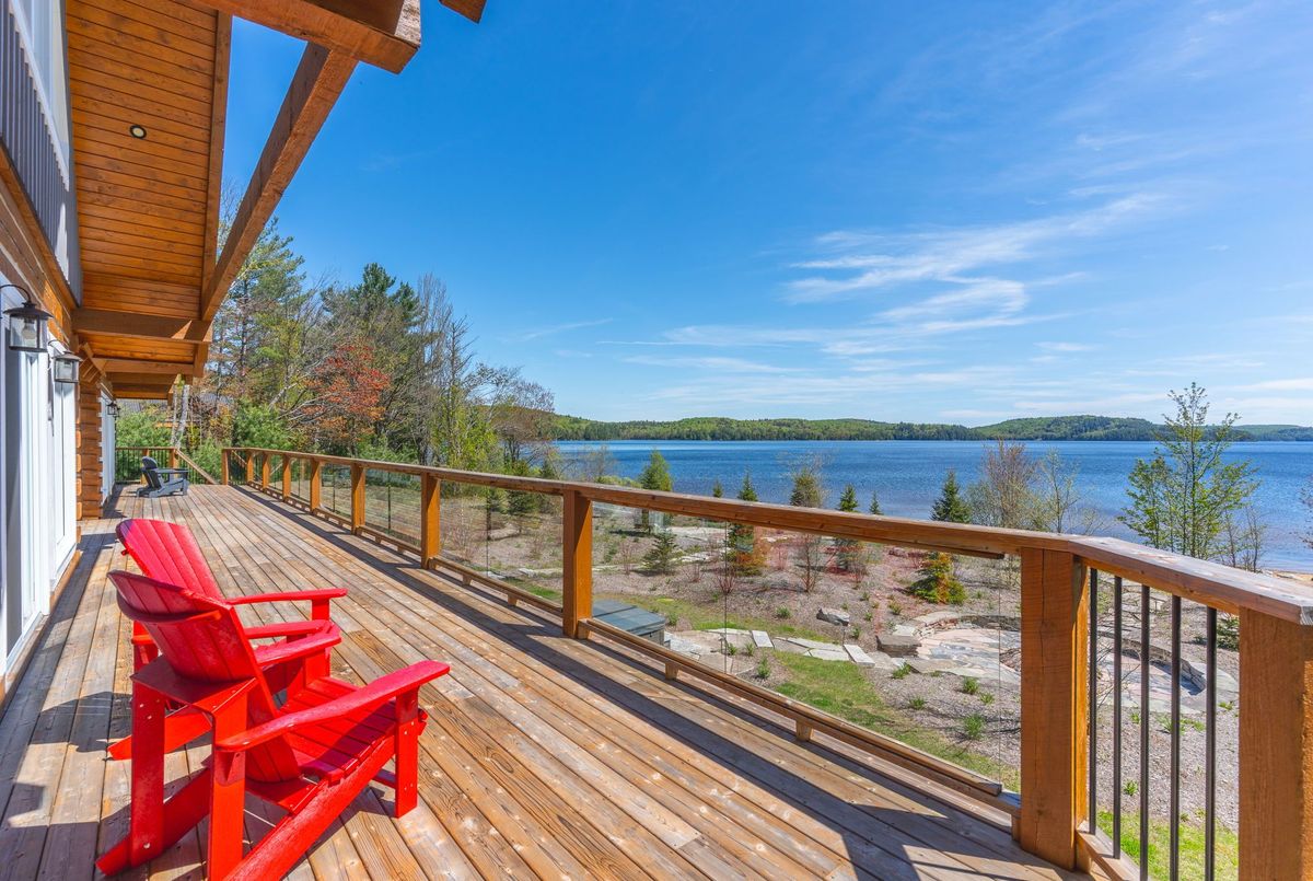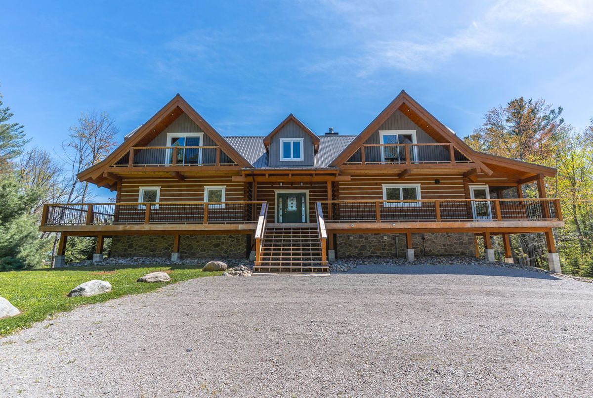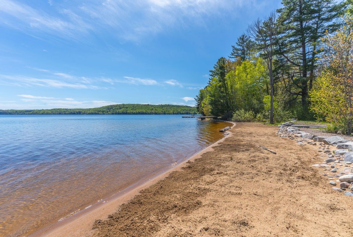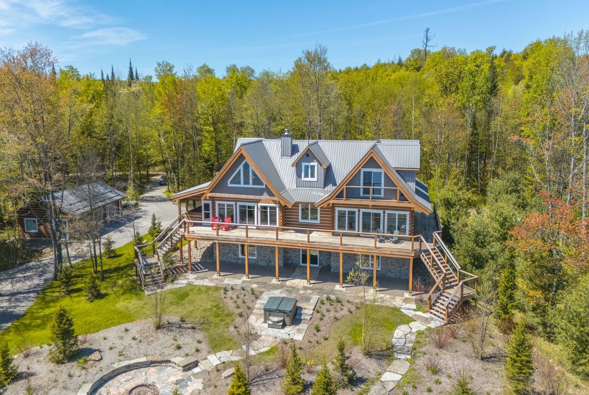 Discover the epitome of lakefront luxury in this magnificent 3-bedroom, 5-bathroom log home situated on Redstone Lake's pristine shoreline. This exceptional 6-year-new gated property boasts spectacular panoramic lake views, 209 feet of gorgeous sand beach, and coveted southern exposure for all-day sunshine on a stunning professionally landscaped level lot. The extensively landscaped grounds showcase mature evergreen and deciduous trees, thoughtfully arranged shrubs and plantings, with elegant flagstone walkways and a beautifully lit path guiding you from cottage to lake. Additional features include a large sunken firepit with built-in lighting and a premium Beachcomber 730 Hybrid 4 Hot Tub. The bright interior showcases stunning lake vistas through oversized windows that flood each room with natural light, while a unique guillotine wood-burning fireplace serves as the centerpiece of the open-concept main floor. Enjoy spa-like bathrooms including heated floors after a full day enjoying the outdoors. A spacious wraparound deck with glass panel railings extends your living space outdoors, perfect for entertaining while overlooking the tranquil waters. Upstairs, generously sized bedrooms and a beautiful loft each feature private walk-out decks with serene lake views. The fully finished basement provides additional versatile living space, while an impressive detached 3-bay garage offers exceptional storage for multiple vehicles, watercraft, and all your recreational equipment. Unlike many lakefront properties, this meticulously maintained home offers easy year-round accessibility, allowing you to enjoy both summer water activities and winter adventures. Whether as a permanent residence or luxurious vacation retreat, this premier Redstone Lake property delivers the ultimate lakefront lifestyle where rustic charm meets modern luxury in perfect harmony.