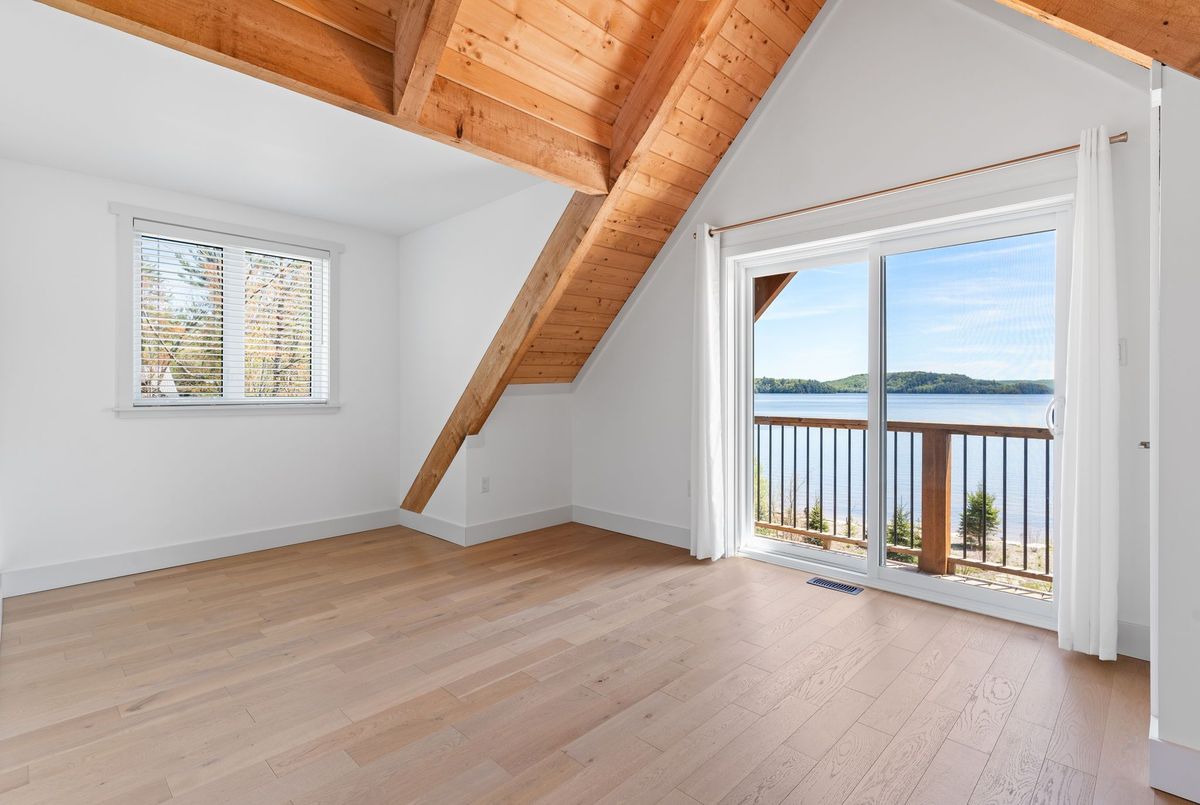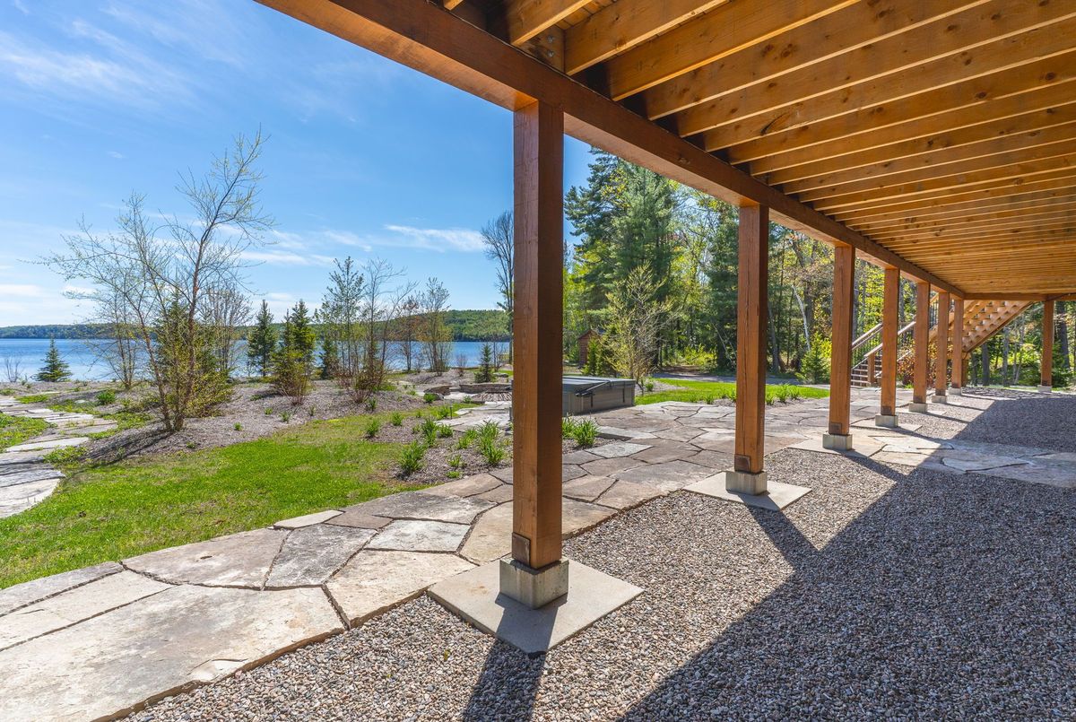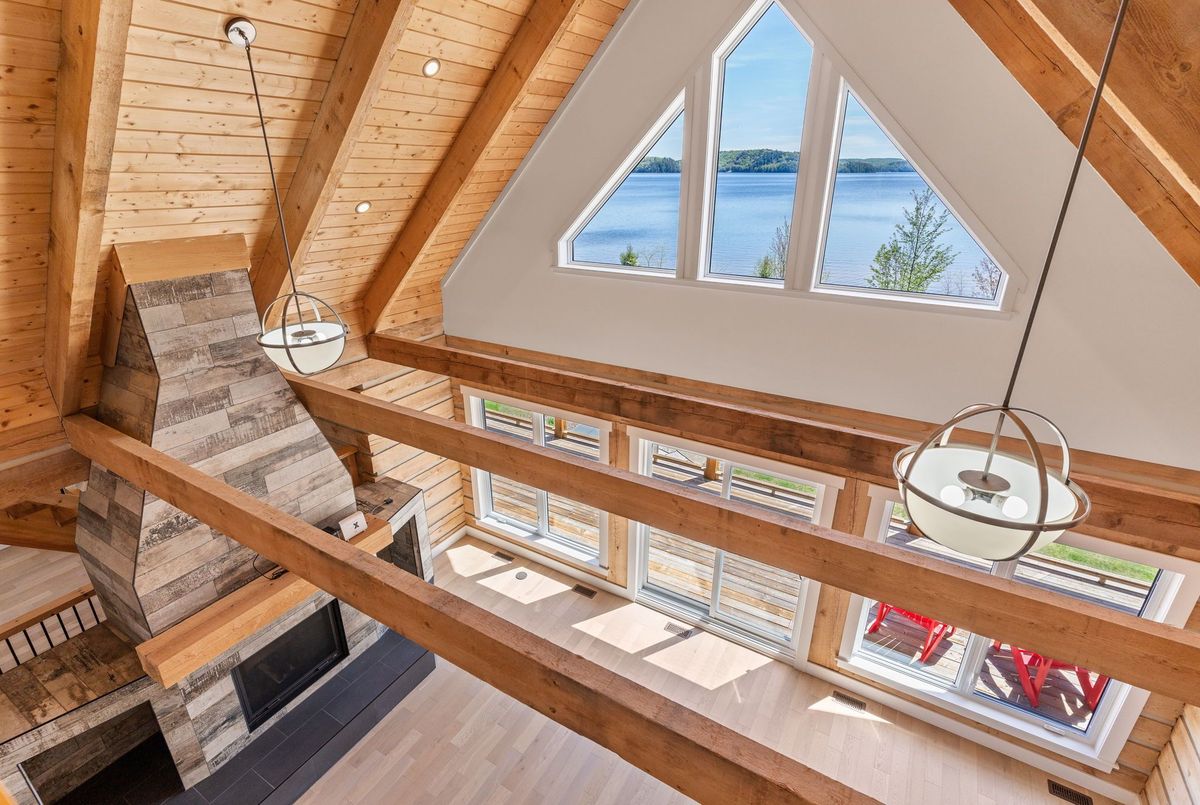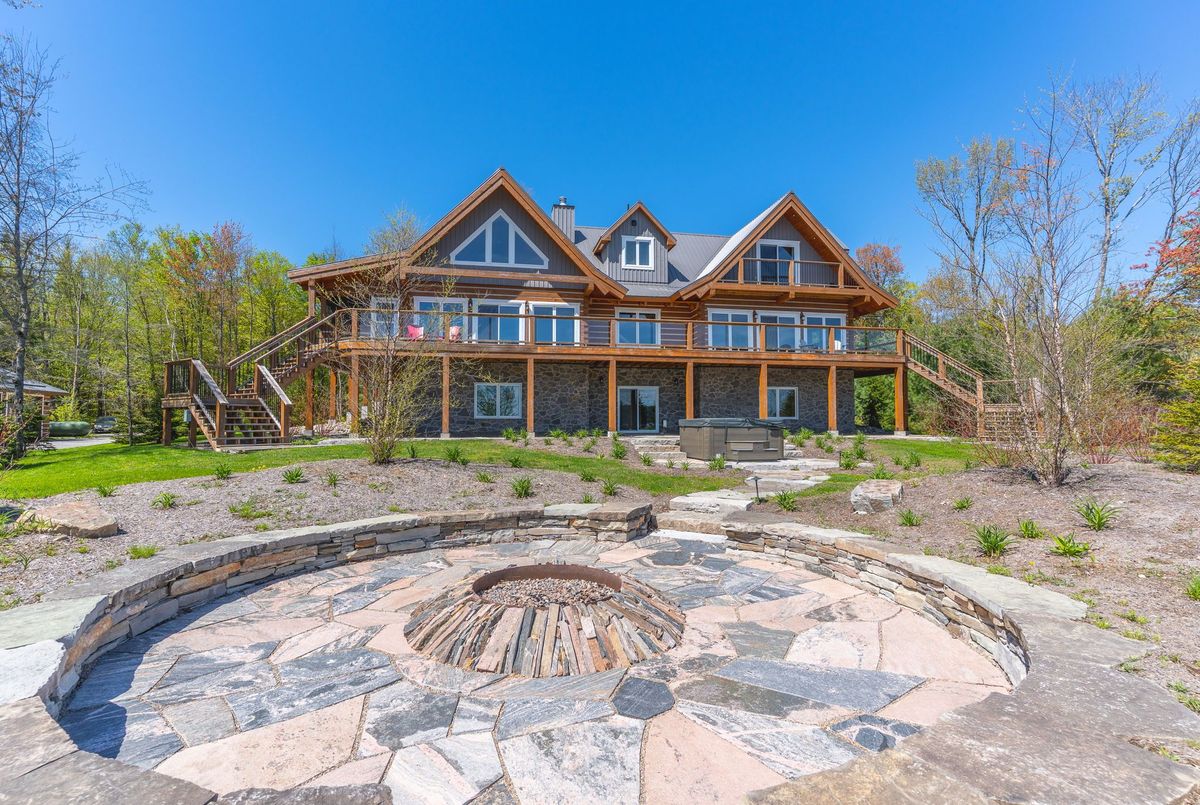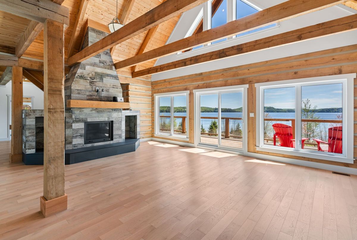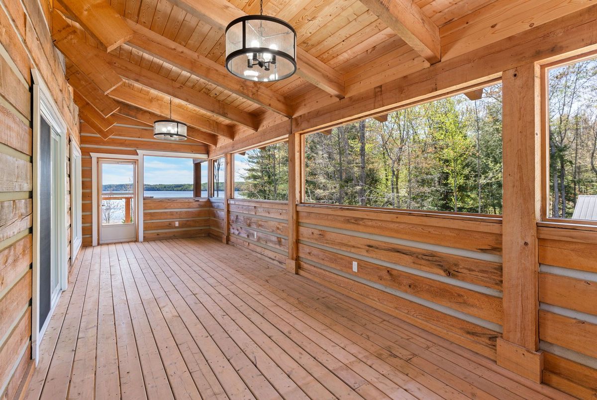 Discover the epitome of lakefront luxury in this magnificent 3-bedroom, 5-bathroom log home situated on Redstone Lake's pristine shoreline. This exceptional 6-year-new gated property boasts spectacular panoramic lake views, 209 feet of gorgeous sand beach, and coveted southern exposure for all-day sunshine on a stunning professionally landscaped level lot. The extensively landscaped grounds showcase mature evergreen and deciduous trees, thoughtfully arranged shrubs and plantings, with elegant flagstone walkways and a beautifully lit path guiding you from cottage to lake. Additional features include a large sunken firepit with built-in lighting and a premium Beachcomber 730 Hybrid 4 Hot Tub. The bright interior showcases stunning lake vistas through oversized windows that flood each room with natural light, while a unique guillotine wood-burning fireplace serves as the centerpiece of the open-concept main floor. Enjoy spa-like bathrooms including heated floors after a full day enjoying the outdoors. A spacious wraparound deck with glass panel railings extends your living space outdoors, perfect for entertaining while overlooking the tranquil waters. Upstairs, generously sized bedrooms and a beautiful loft each feature private walk-out decks with serene lake views. The fully finished basement provides additional versatile living space, while an impressive detached 3-bay garage offers exceptional storage for multiple vehicles, watercraft, and all your recreational equipment. Unlike many lakefront properties, this meticulously maintained home offers easy year-round accessibility, allowing you to enjoy both summer water activities and winter adventures. Whether as a permanent residence or luxurious vacation retreat, this premier Redstone Lake property delivers the ultimate lakefront lifestyle where rustic charm meets modern luxury in perfect harmony.