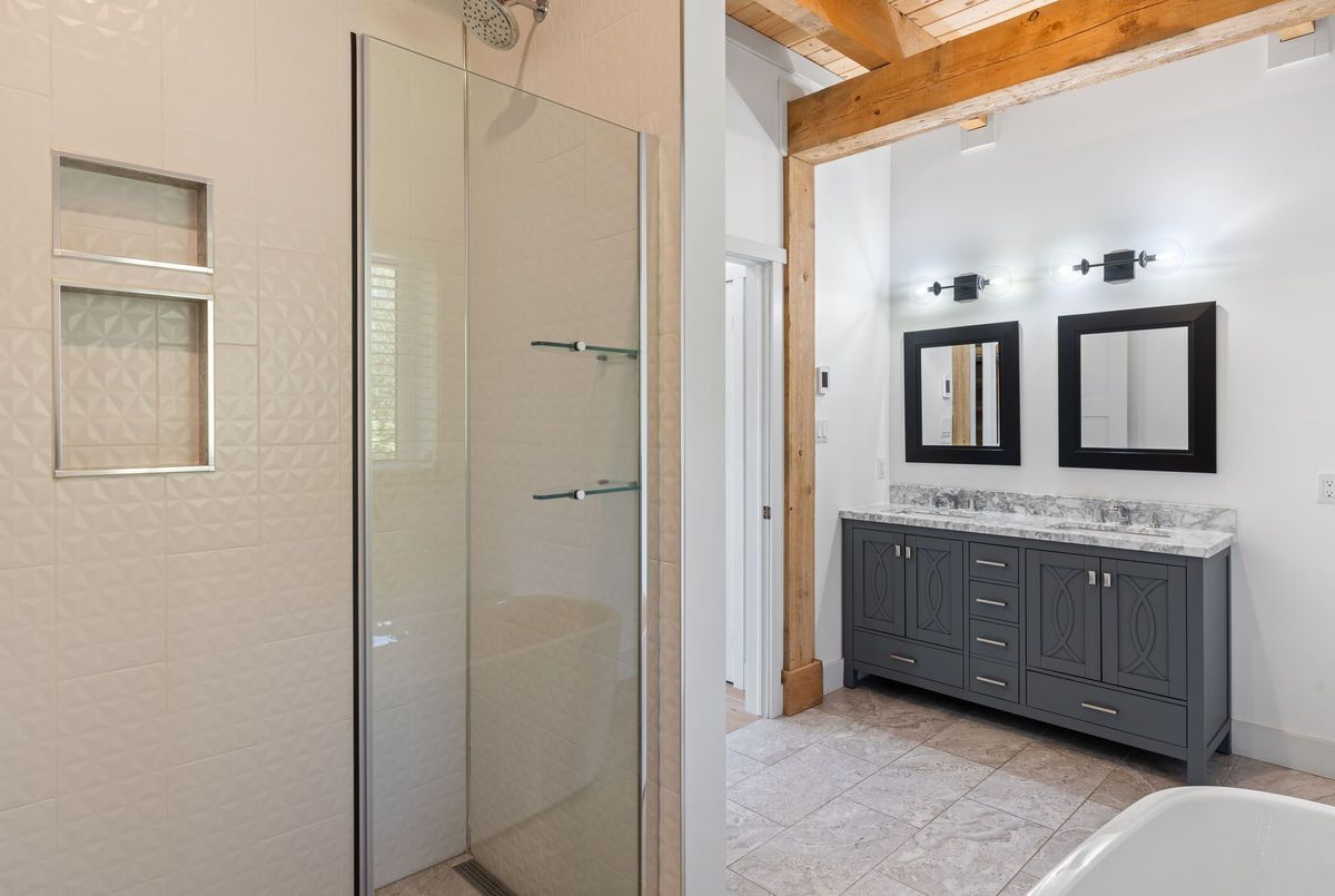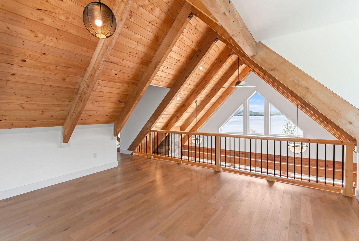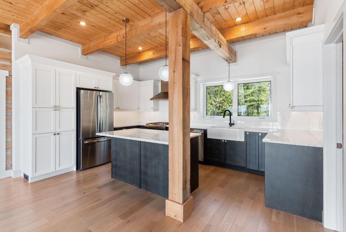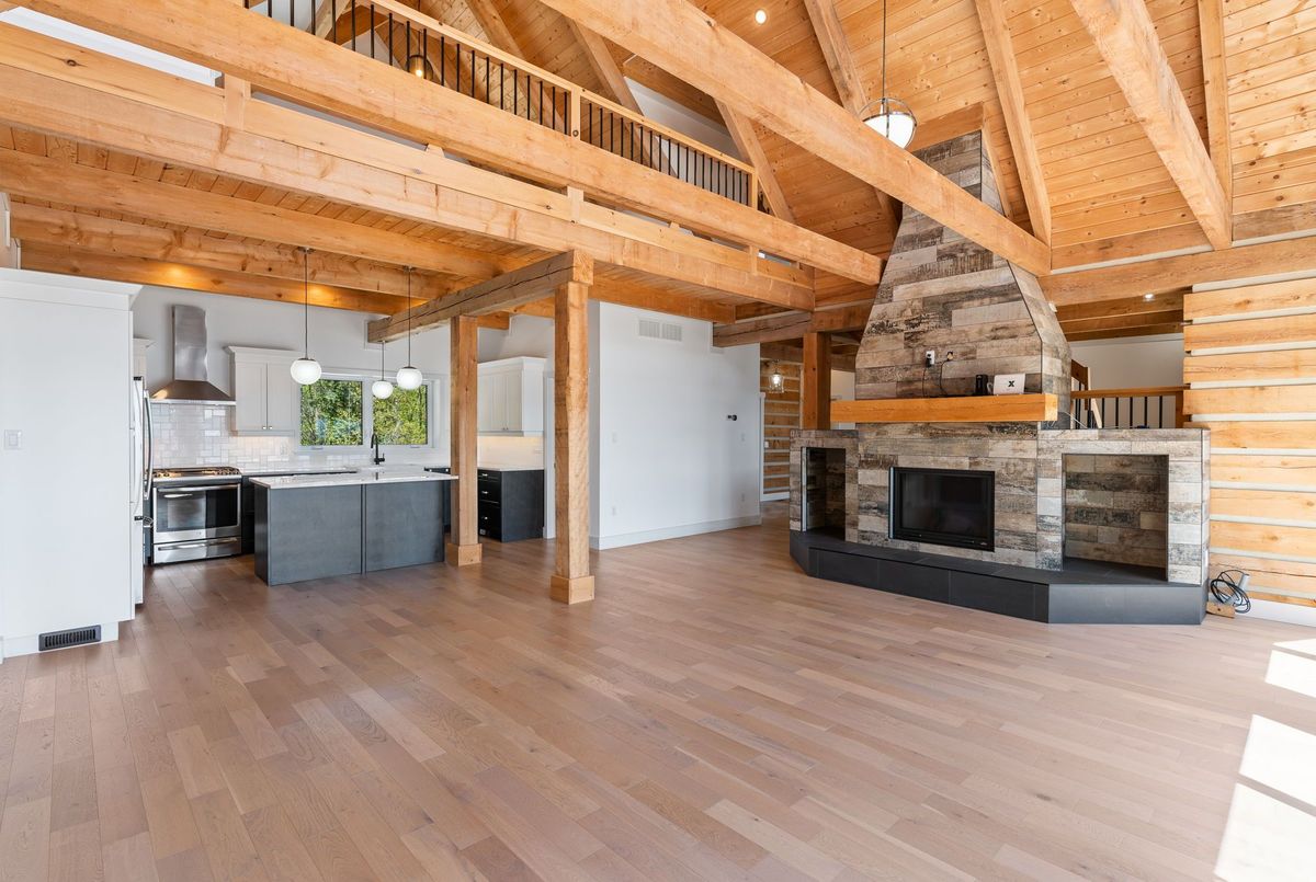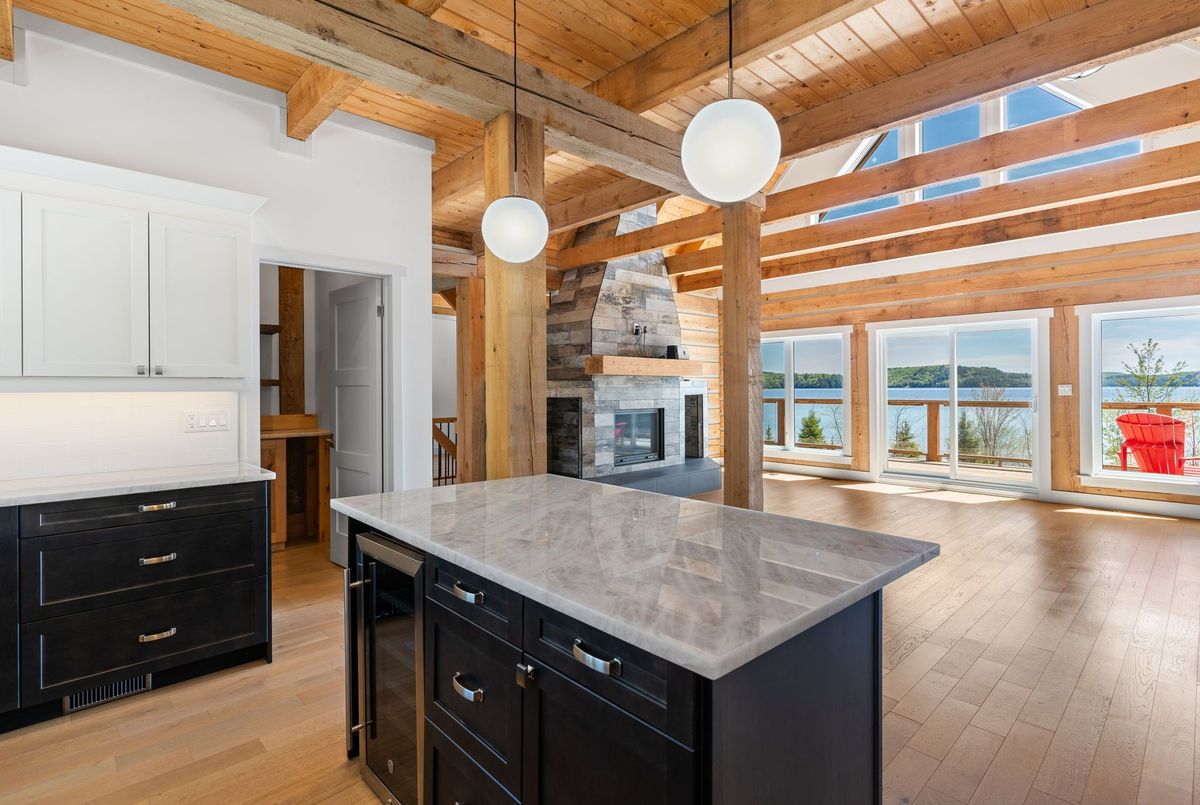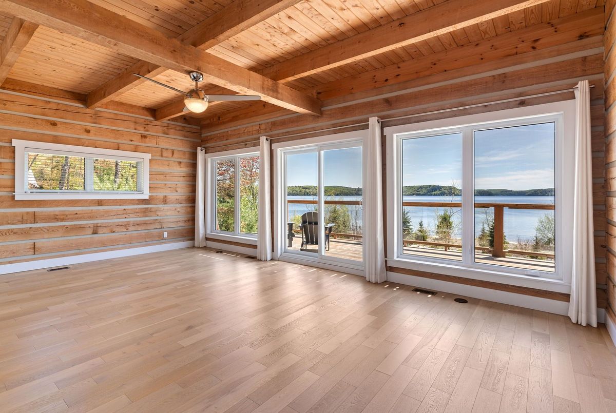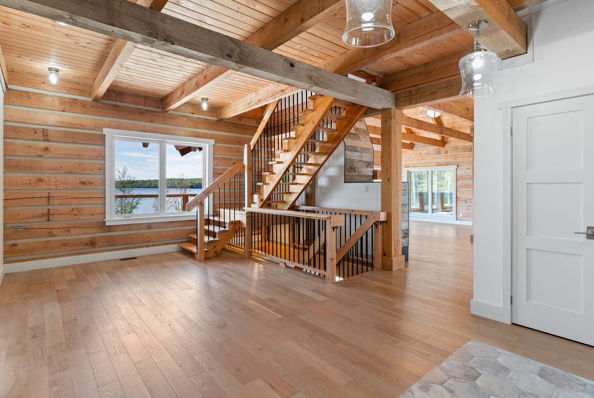 Discover the epitome of lakefront luxury in this magnificent 3-bedroom, 5-bathroom log home situated on Redstone Lake's pristine shoreline. This exceptional 6-year-new gated property boasts spectacular panoramic lake views, 209 feet of gorgeous sand beach, and coveted southern exposure for all-day sunshine on a stunning professionally landscaped level lot. The extensively landscaped grounds showcase mature evergreen and deciduous trees, thoughtfully arranged shrubs and plantings, with elegant flagstone walkways and a beautifully lit path guiding you from cottage to lake. Additional features include a large sunken firepit with built-in lighting and a premium Beachcomber 730 Hybrid 4 Hot Tub. The bright interior showcases stunning lake vistas through oversized windows that flood each room with natural light, while a unique guillotine wood-burning fireplace serves as the centerpiece of the open-concept main floor. Enjoy spa-like bathrooms including heated floors after a full day enjoying the outdoors. A spacious wraparound deck with glass panel railings extends your living space outdoors, perfect for entertaining while overlooking the tranquil waters. Upstairs, generously sized bedrooms and a beautiful loft each feature private walk-out decks with serene lake views. The fully finished basement provides additional versatile living space, while an impressive detached 3-bay garage offers exceptional storage for multiple vehicles, watercraft, and all your recreational equipment. Unlike many lakefront properties, this meticulously maintained home offers easy year-round accessibility, allowing you to enjoy both summer water activities and winter adventures. Whether as a permanent residence or luxurious vacation retreat, this premier Redstone Lake property delivers the ultimate lakefront lifestyle where rustic charm meets modern luxury in perfect harmony.
