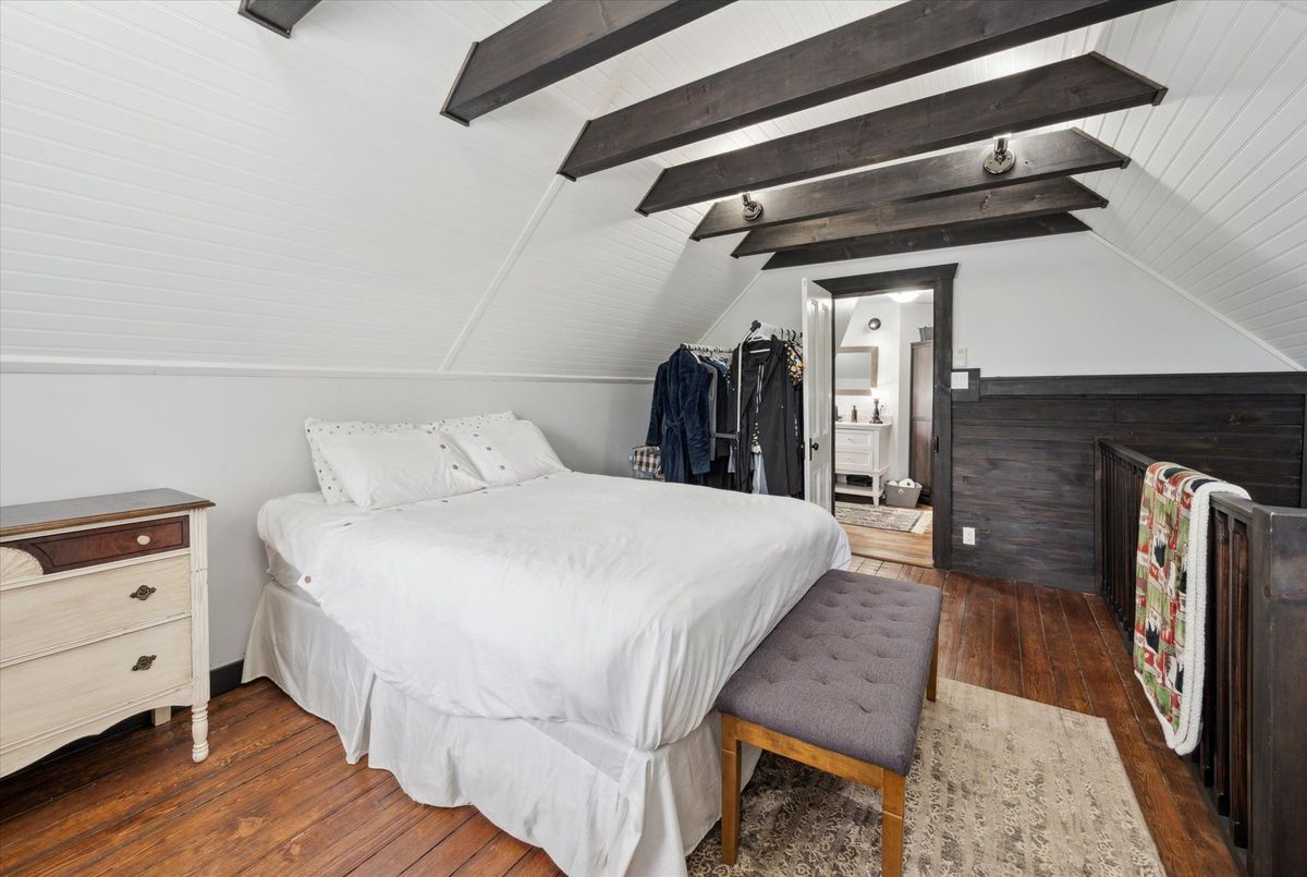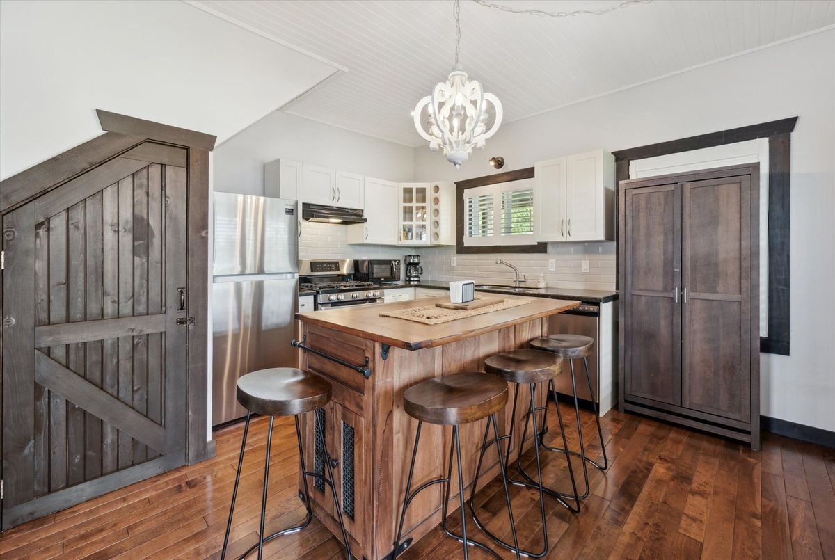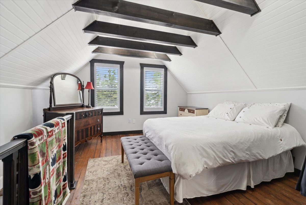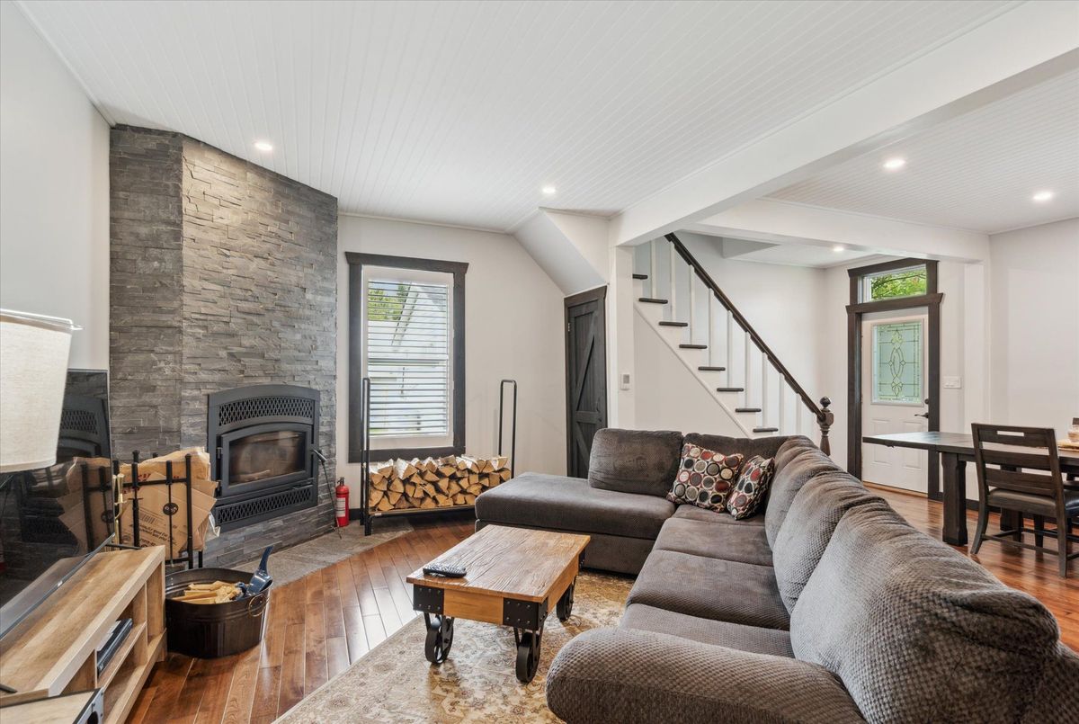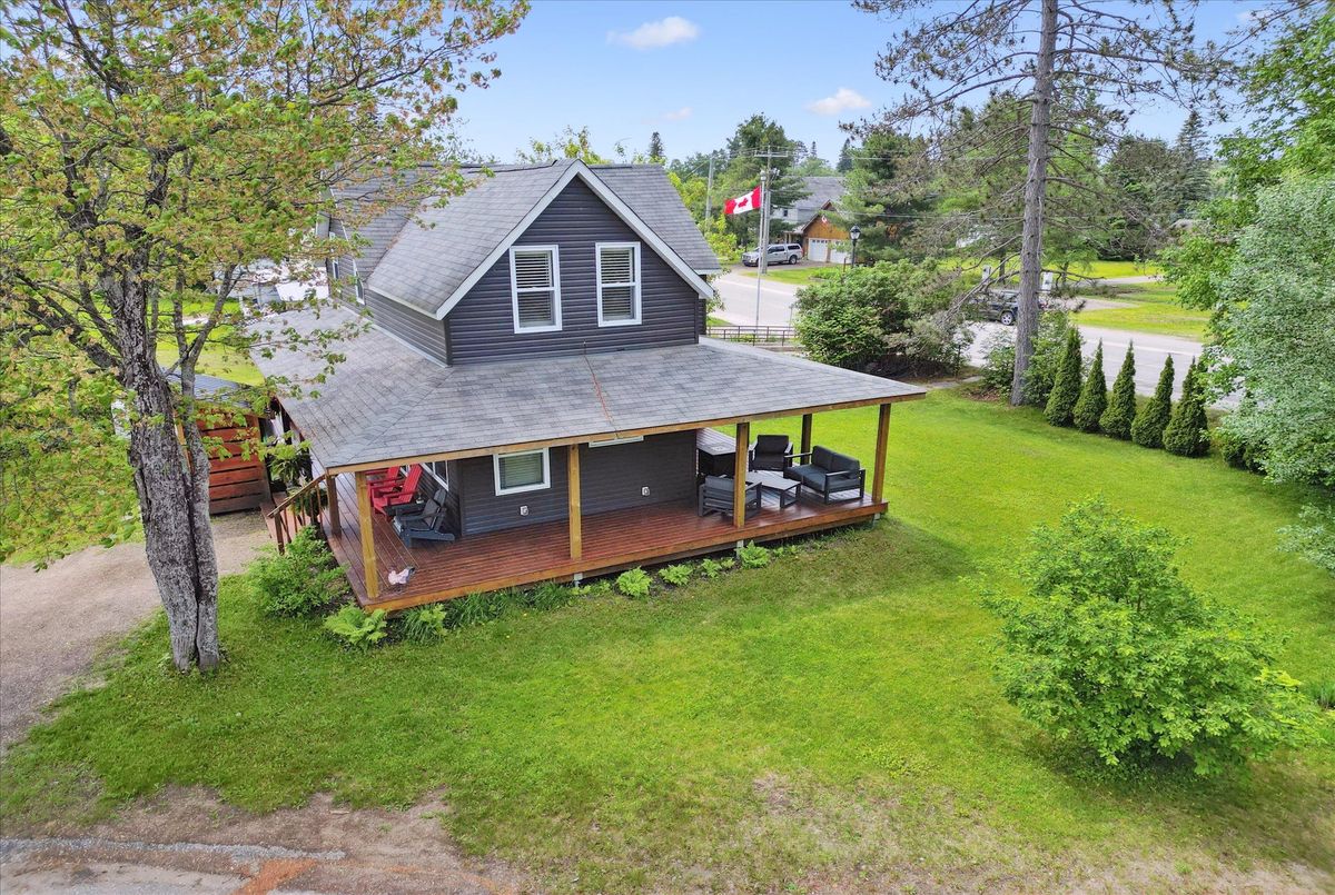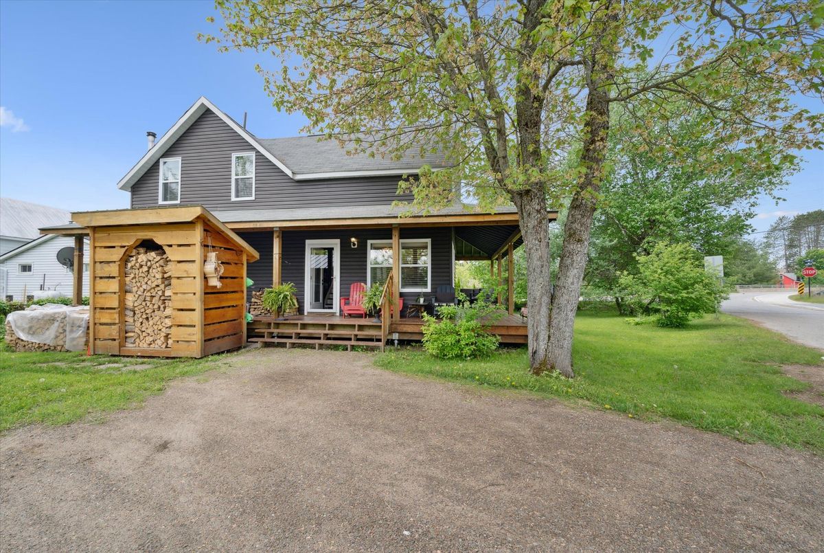 This beautifully restored early-1900s cottage in Kearney offers over 1,100 square feet of living space, three bedrooms, one bath, and high ceilings. Extensive updates include a high-efficiency boiler, radiant in-floor heating, Energy Star-rated windows, new insulation, and LED lighting for optimal comfort and efficiency. The 2018 renovations also featured new roof shingles, siding, wrap-around veranda, updated electrical and plumbing, and a fully modernized kitchen with granite countertops and stainless steel appliances. Enjoy your morning coffee on the veranda while overlooking Hassard Lake across the street. Though not waterfront, the property offers direct lake access with 7 miles of boating and a peaceful public beach perfect for canoeing, kayaking, and swimming in the Magnetawan River system. Located just north of Muskoka, this home is part of a warm, welcoming community with local dining within walking distance and Huntsville just 30 minutes away. Kearney's vibrant spirit shines through in its famous dog sled races, winter carnival, and summer regatta. For outdoor enthusiasts, Algonquin Provincial Park is within easy reach, offering hiking, biking, fishing, and winter sports. Snowmobile and ATV trails start right close by, and countless secluded fishing lakes are minutes away. End your day around the backyard fire pit, surrounded by nature and tranquility.