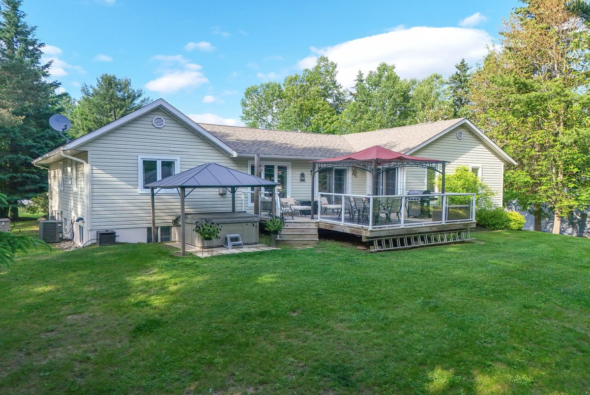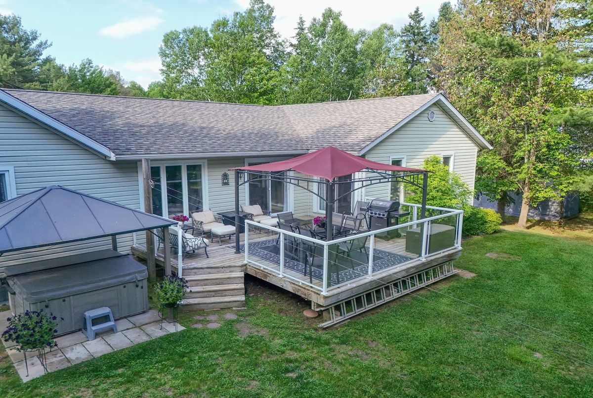Nestled in the highly sought-after Riverview Estates neighbourhood, this meticulously maintained 5 bedroom, 3 bathroom bungalow offers the perfect blend of comfort, space, and natural beauty. Located just minutes from downtown Huntsville and set along the picturesque Muskoka River, this home offers year-round enjoyment with access to a public dock and sandy beach, perfect for summer days by the water or launching your kayak. Inside, you'll find over 3,400 square feet of thoughtfully designed living space, with 1,700 sq ft on the main floor and a fully finished lower level. The bright, open-concept layout features large windows that flood the home with natural light. The modern kitchen, updated in 2020, boasts granite countertops, stainless steel appliances, and flows seamlessly into the dining and living areas ideal for entertaining family and friends. Step out onto the expansive private deck, where you're surrounded by trees and nature, perfect for BBQs, summer gatherings, and cozy evenings around the fire. A covered hot tub adds a touch of luxury for year-round relaxation. The spacious main-floor primary suite is tucked away in its own wing and features his-and-hers closets and a private ensuite. Three additional bedrooms and a full bath are located on the opposite side of the home, with one currently set up as a home office ideal for remote work. The main-floor laundry and convenient access to the double garage add to the functionality. Downstairs, the fully finished basement offers a large recreation room, games area, 5th bedroom, abundant storage space and an area for a future bathroom. For the young family you are located just steps from Riverside Public School. This home truly has it all - space, privacy, location, and lifestyle. Whether you're upsizing, investing, or looking for your forever home, this is a rare opportunity to enjoy everything Muskoka has to offer.