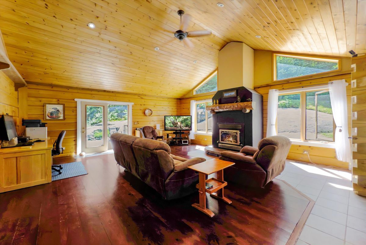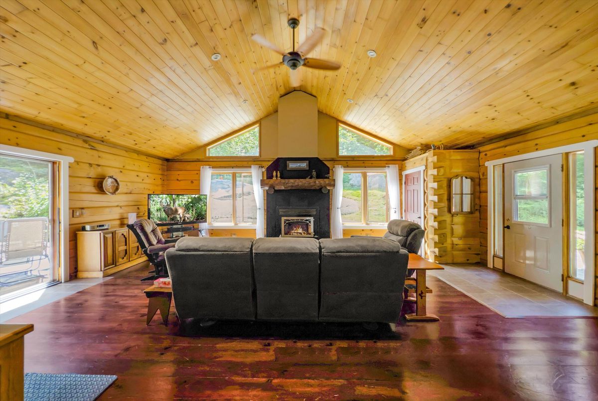Surrounded by granite outcroppings, towering trees, and the serene beauty of nature, this meticulously maintained property offers the ultimate Muskoka escape. From the moment you arrive, you'll feel the care and quality that defines this stunning, move-in ready home.Inside, a spacious and airy living area welcomes you with soaring vaulted ceilings and a striking grand fireplace. Tasteful updates blend seamlessly with rustic charm including a custom addition by renowned builders, True North Log Homes. The home features three generous bedrooms, a beautifully renovated bathroom, and two WETT-certified fireplaces that add both warmth and character.Outside, unwind or entertain in a park-like backyard designed for relaxed outdoor living. Whether you are watching the birds while sipping your morning coffee or wandering the perennial gardens throughout the property, you will appreciate the peace and quiet that this property offers. An oversized single garage provides ample space for vehicles, tools, toys and more.Whether you're seeking a year-round residence or a seasonal getaway, this property delivers the perfect blend of comfort, craftsmanship, and classic Muskoka style.